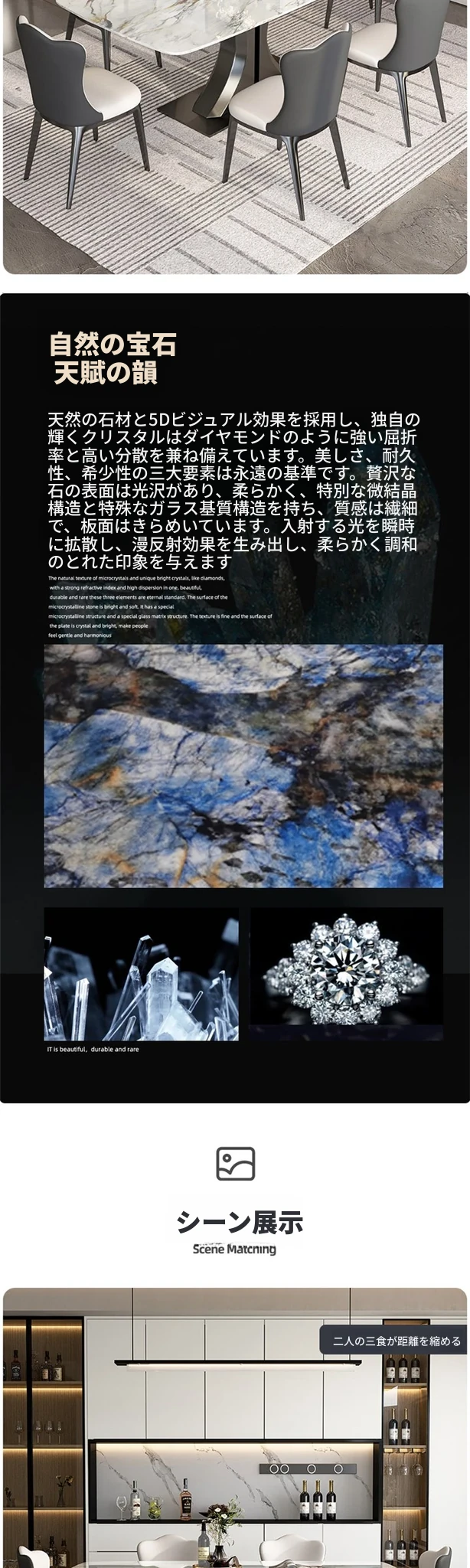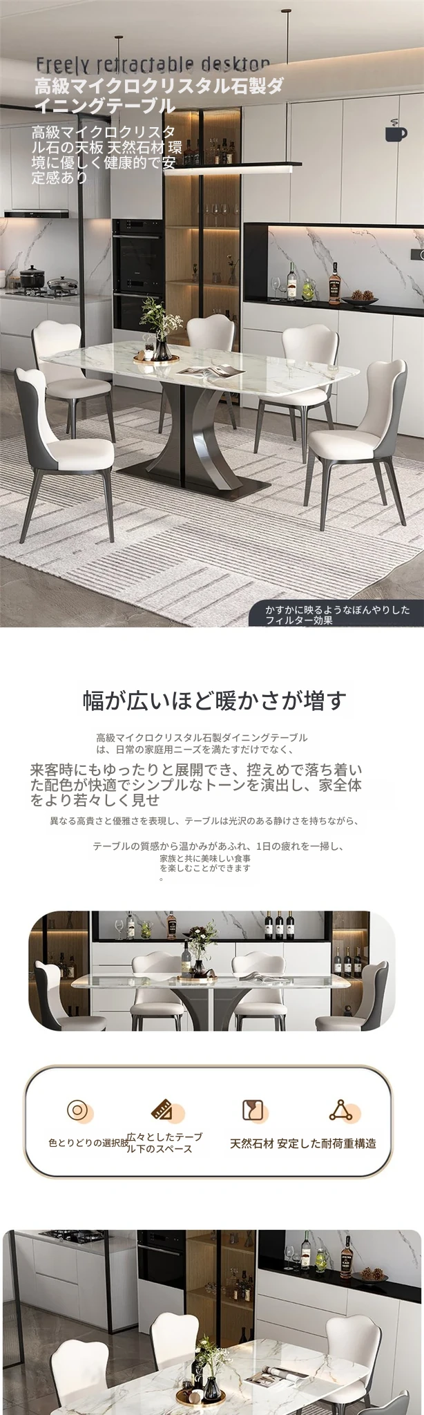 2024年新作!高級感溢れる微晶石ダイニングテーブルセット - モダンでシンプルなデザイン、贅沢な大理石と超晶石の組み合わせ、家族や友人との特別なひとときを演出します。