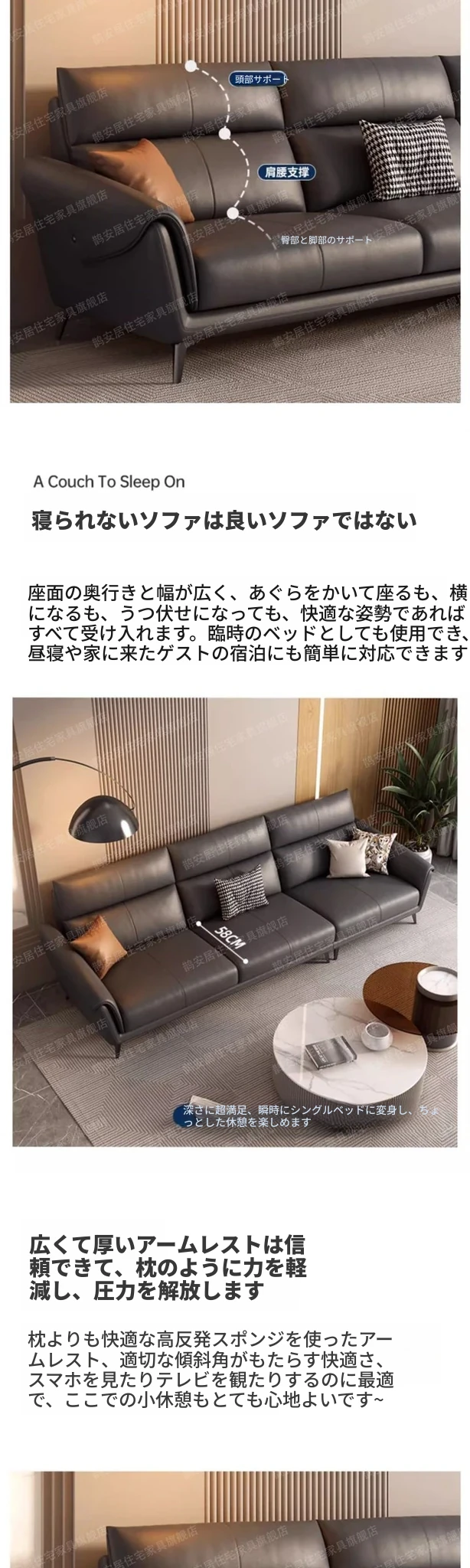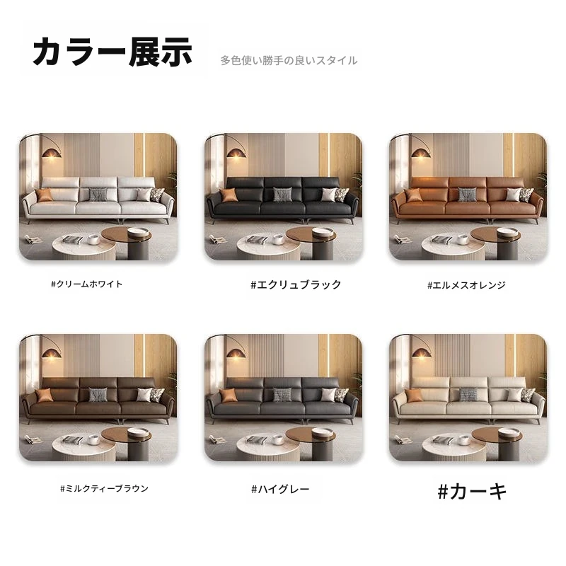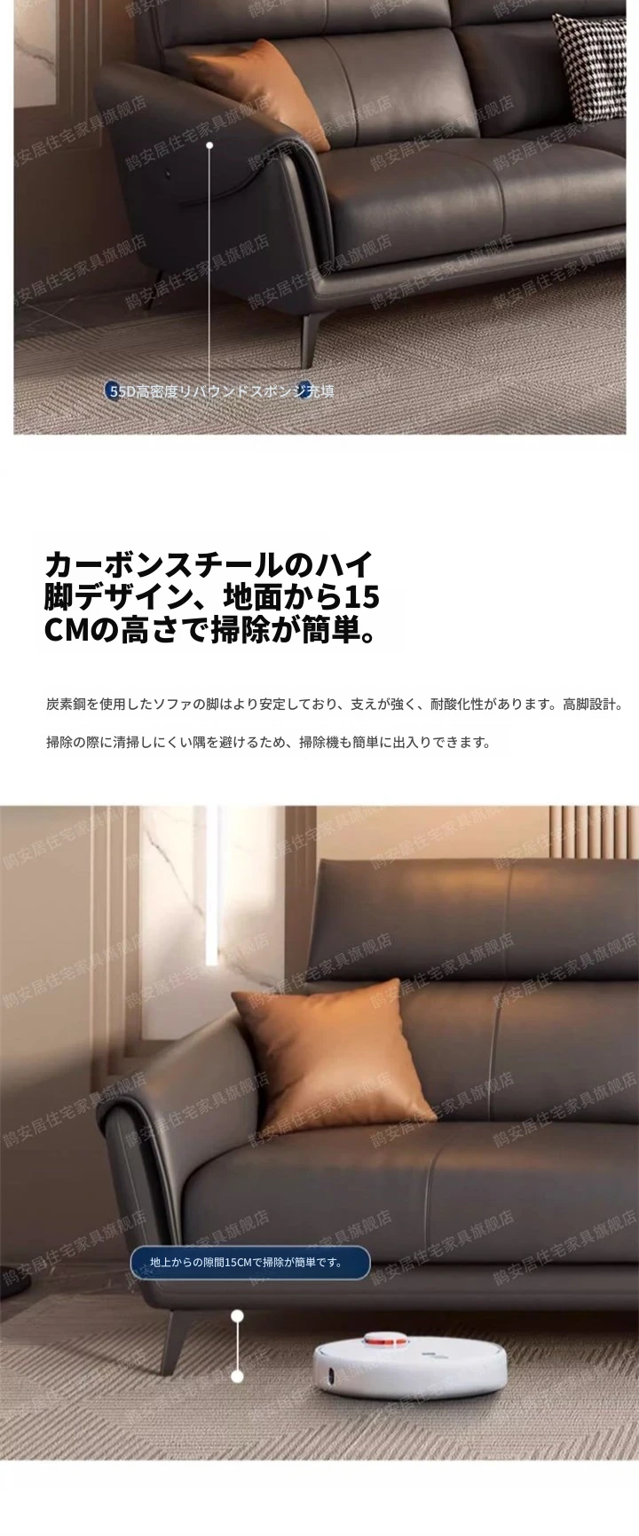 シンプルモダンな本革ソファ - 軽やかでラグジュアリーな小型リビング向け、最新のトップグレードX牛革&アイアンフレーム、快適な多人数用シート!おしゃれな空間を演出します。