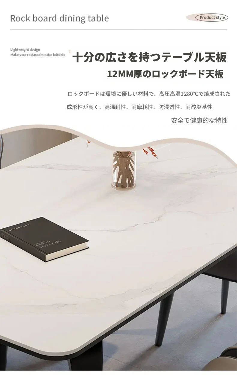モダンミニマリスト長テーブル|家庭用高級イタリアンストーン製長方形ダイニングテーブル|シンプルで洗練されたデザインの食卓