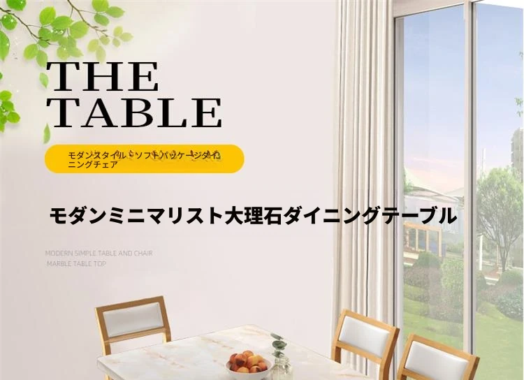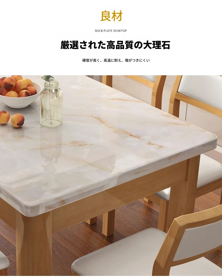 洗練された高級感!モダンミニマリストデザインの岩板と無垢材を使用した小型長方形ダイニングテーブル。小さなお部屋にぴったりな大理石調のスタイリッシュな食卓で、快適な食事空間を演出します。