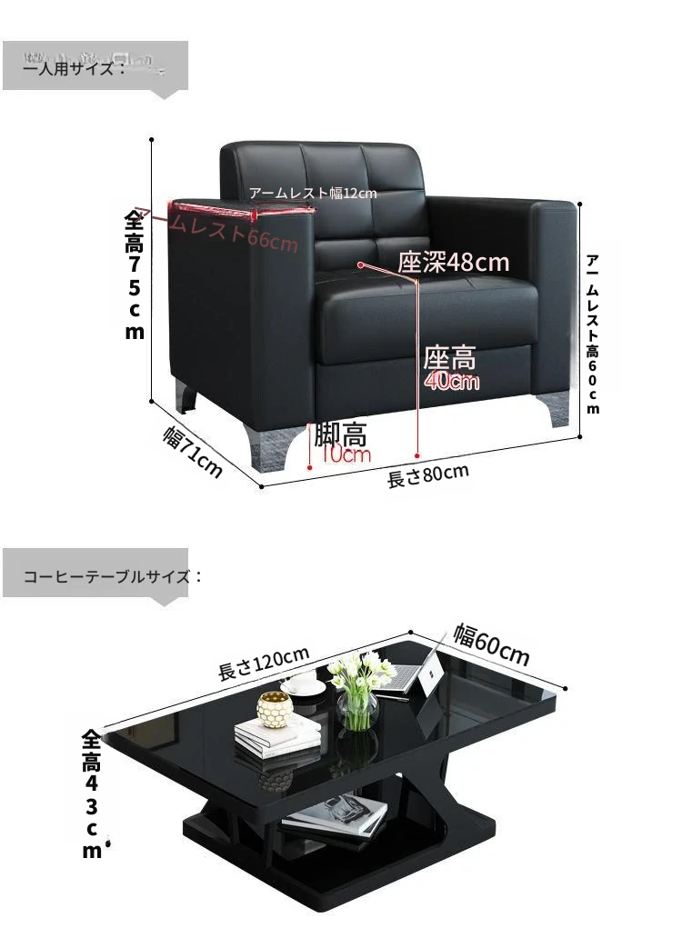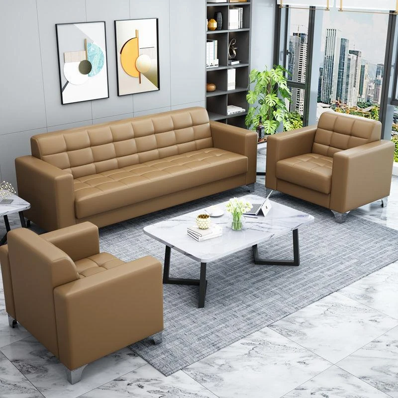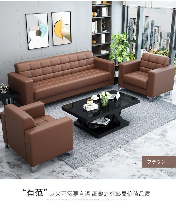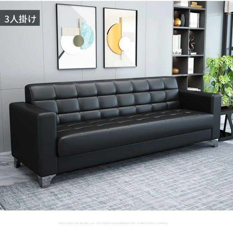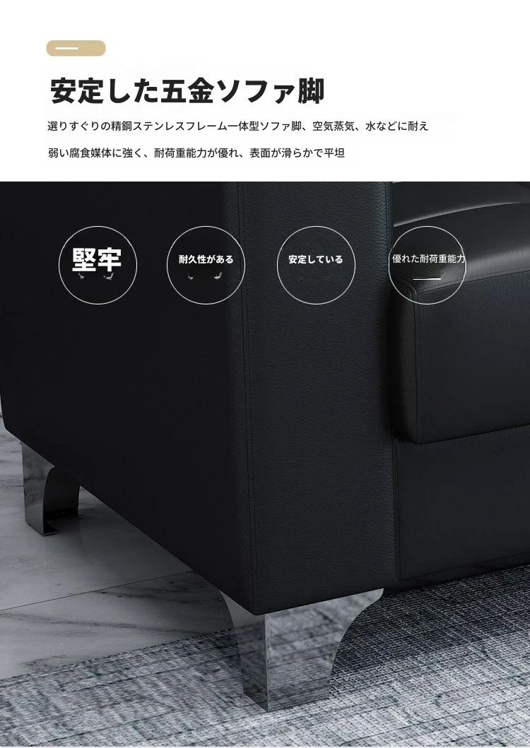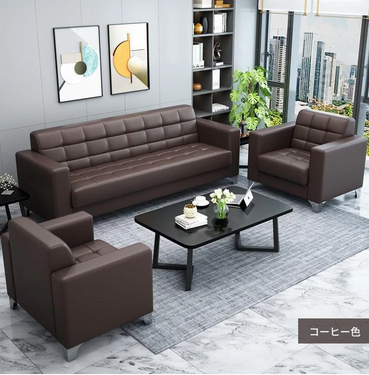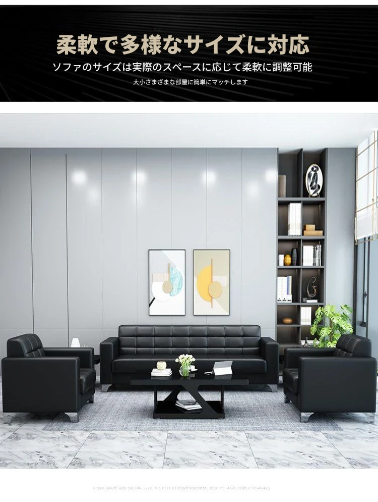 モダンシンプルなオフィス用ソファとテーブルのセット|ビジネス会議や接客に最適な3人掛けPUレザーソファ|スタイリッシュで快適な空間を演出!