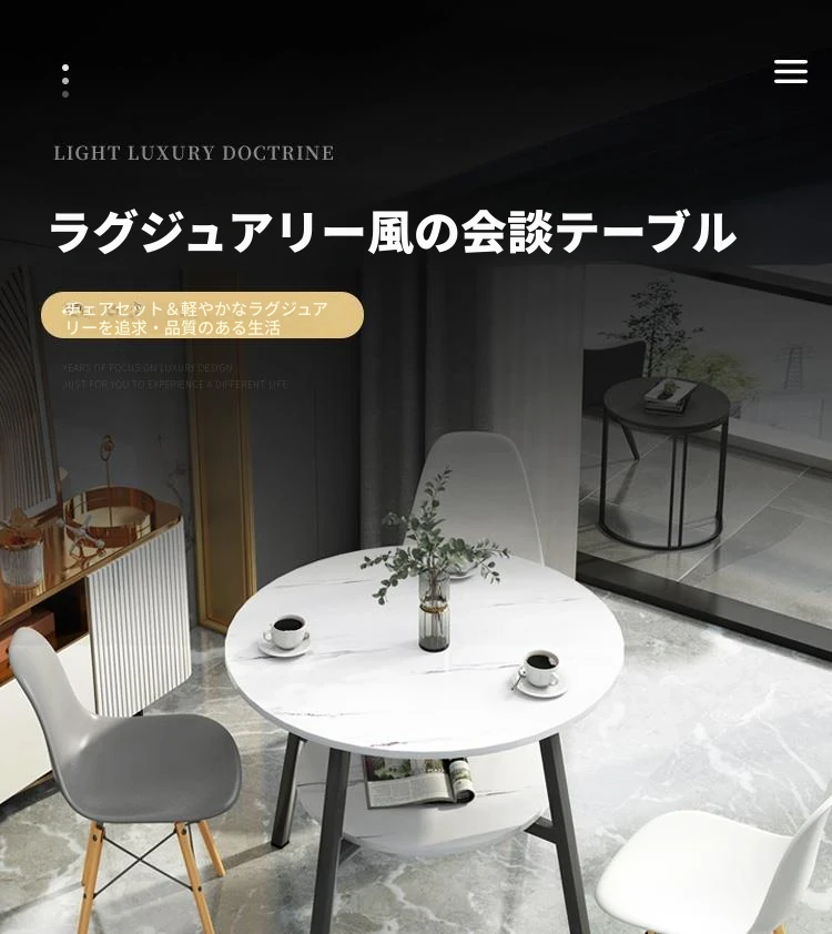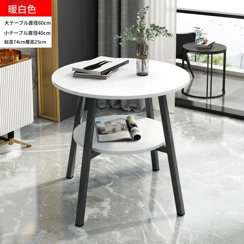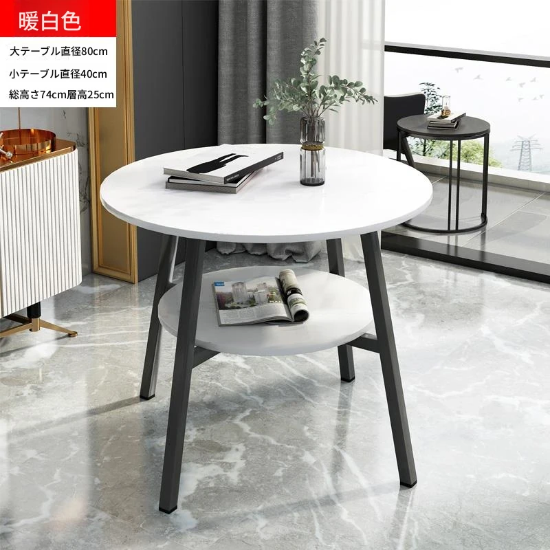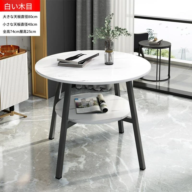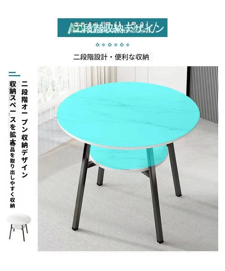 シンプルでスタイリッシュなビジネス用丸テーブル - 不動産営業所やバルコニーに最適!収納機能付きの小型ダイニングテーブルで、商談や会議にもぴったり。お客様を迎えるための理想的な家具です。