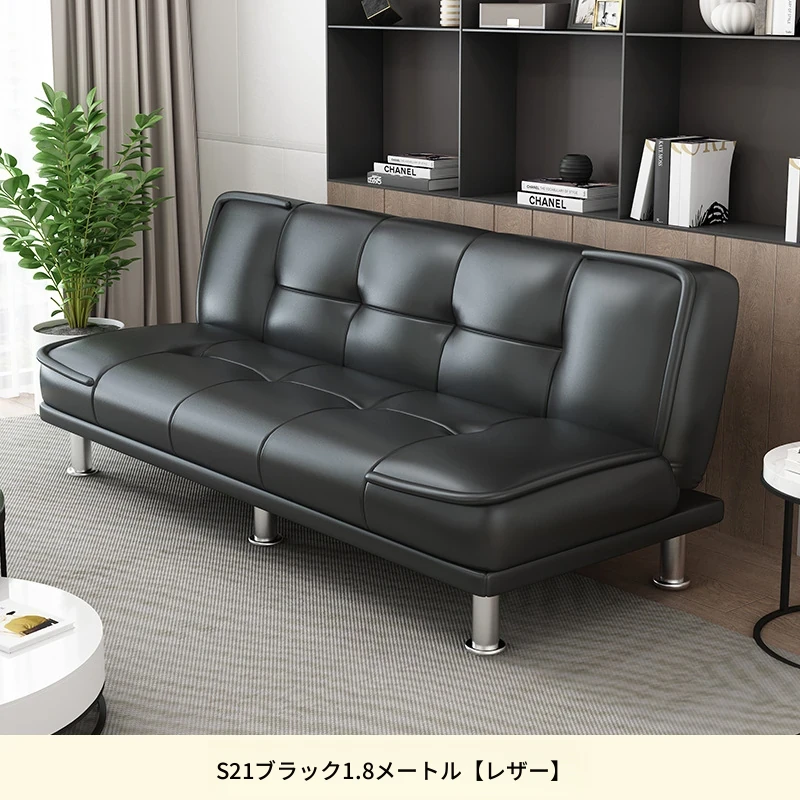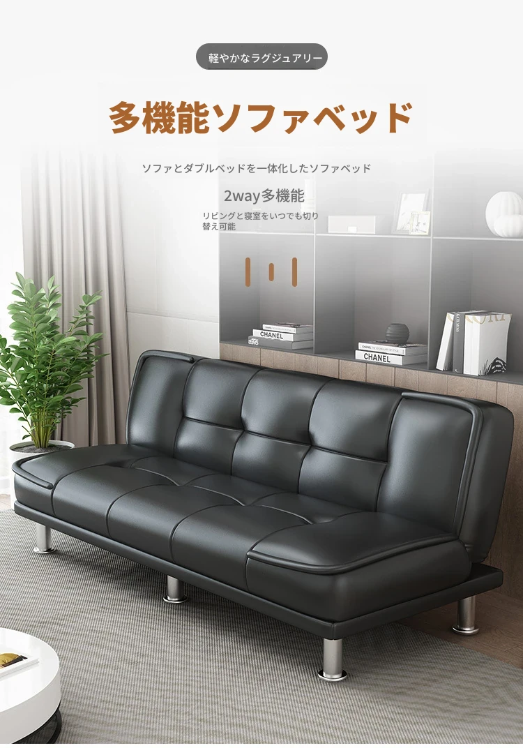 北欧風のシンプルモダンソファベッド - ビジネス接待にも最適な多機能折りたたみ式レザーソファ、3人掛けでおしゃれな空間を演出!