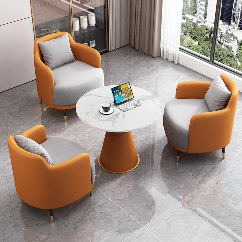 外オレンジ皮内灰フランネル布2+1 60直径の岩板テーブル