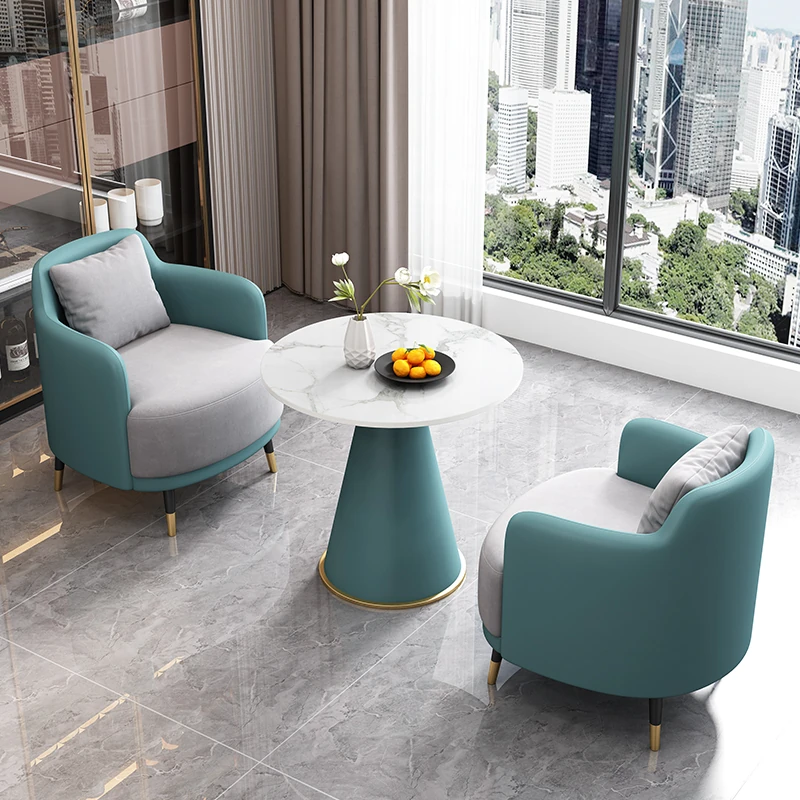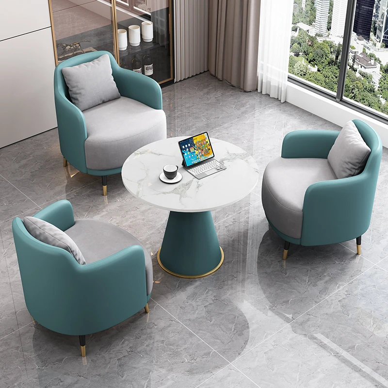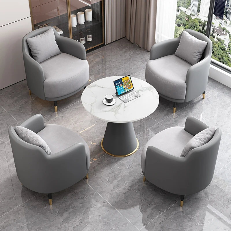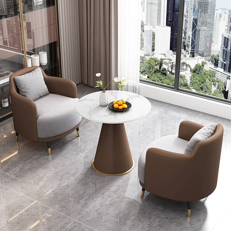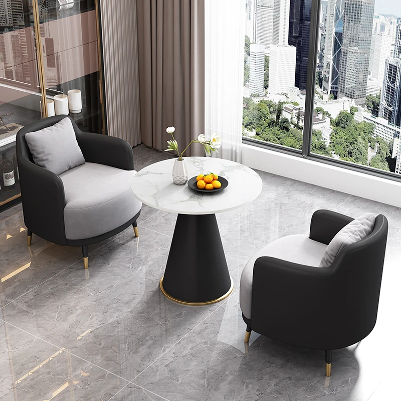 外浅灰皮内浅灰フランネル布2+1 60直径の岩板テーブル