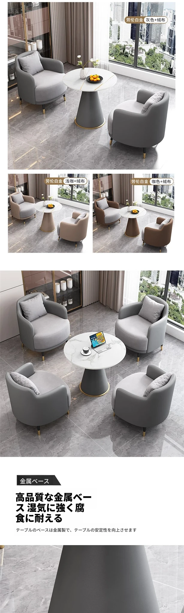 外コーヒー皮内浅灰フランネル布2+1 60直径の岩板テーブル