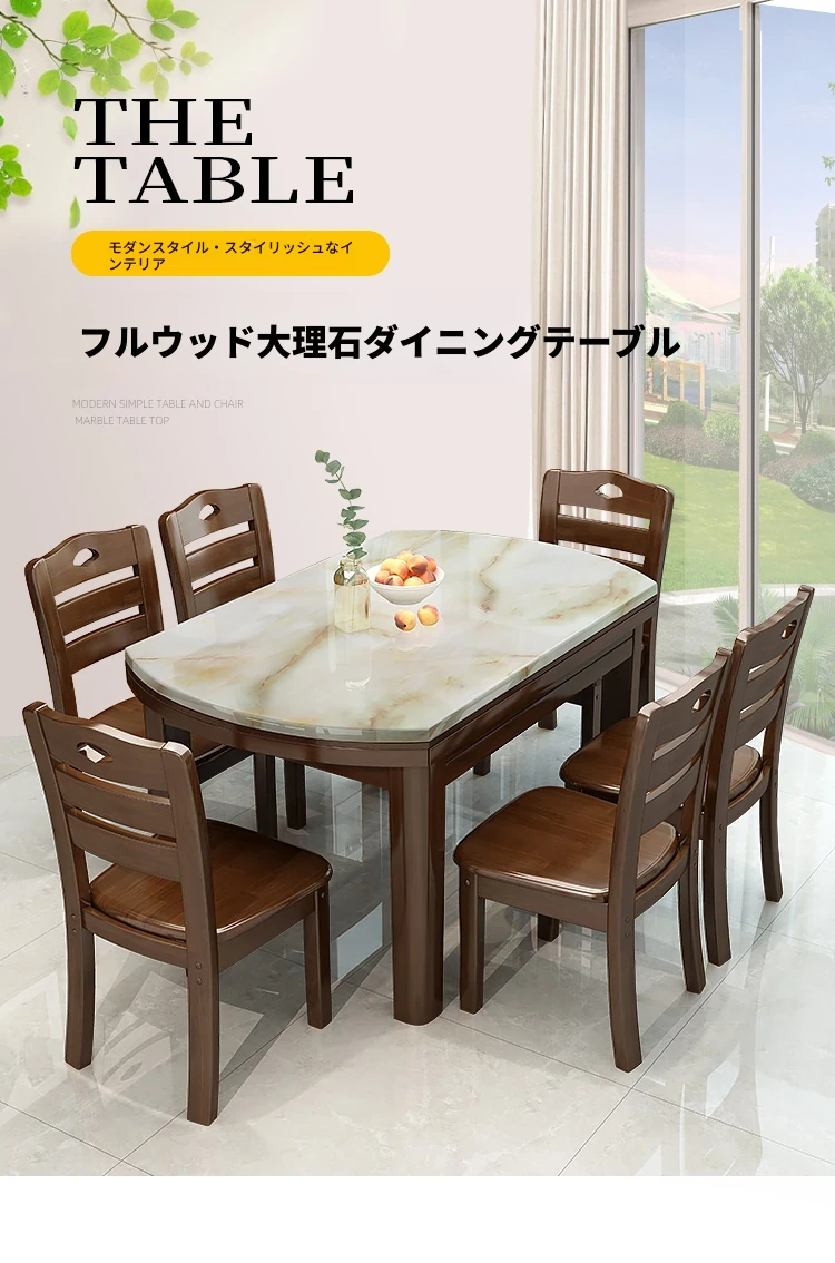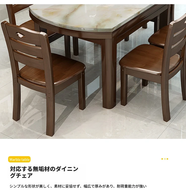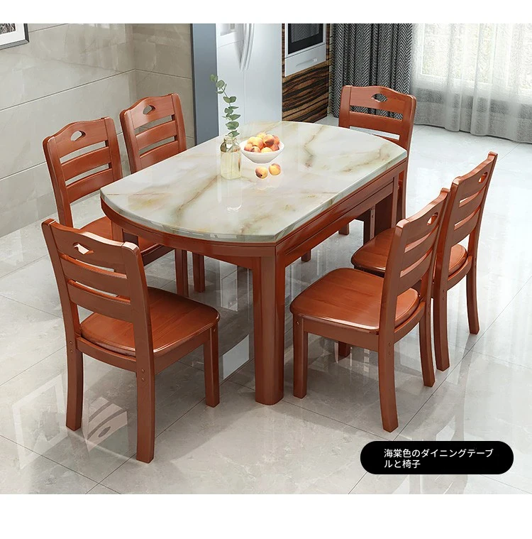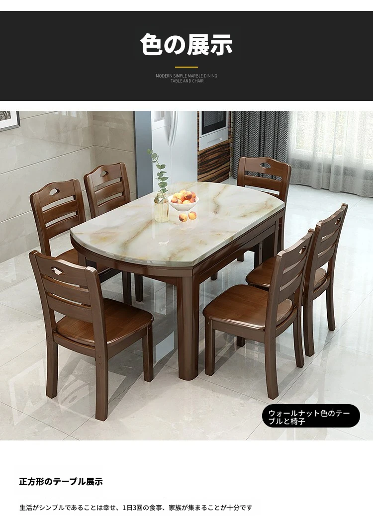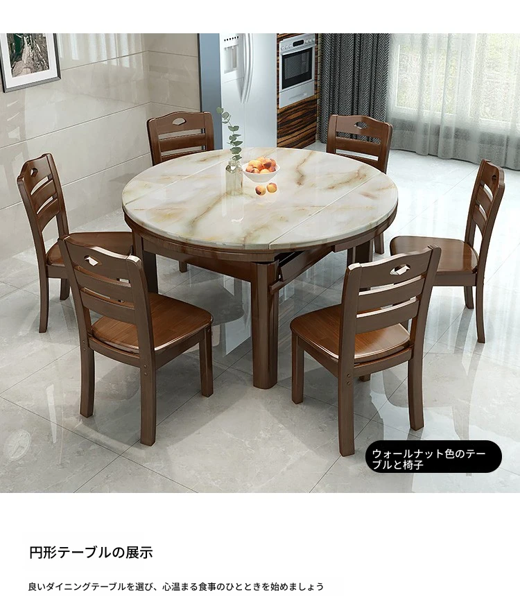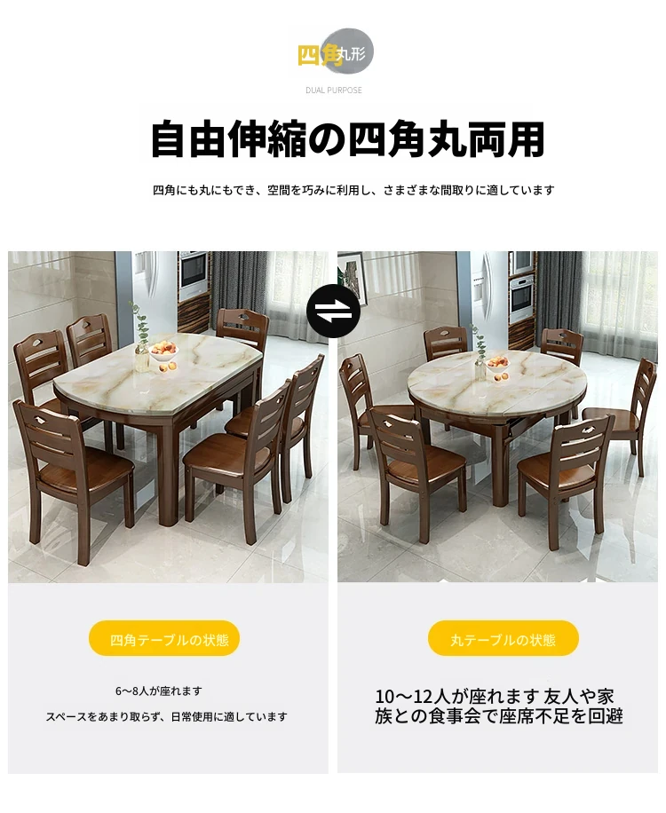 現代的シンプルなデザインの伸縮可能な実木製ダイニングテーブル - 長方形と円形の大理石仕上げ、ブラックカラーでスタイリッシュに!家族や友人との食事をより贅沢に演出します。