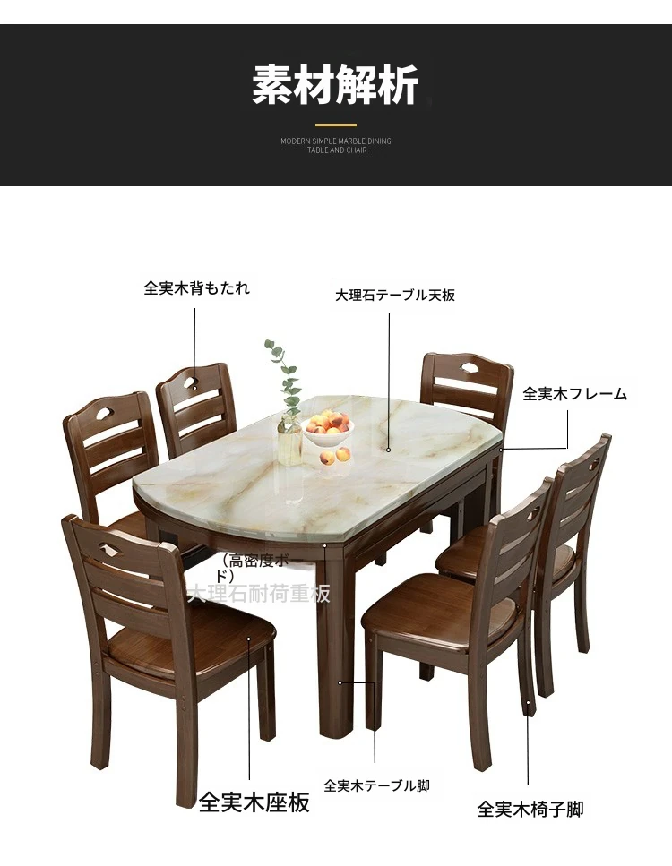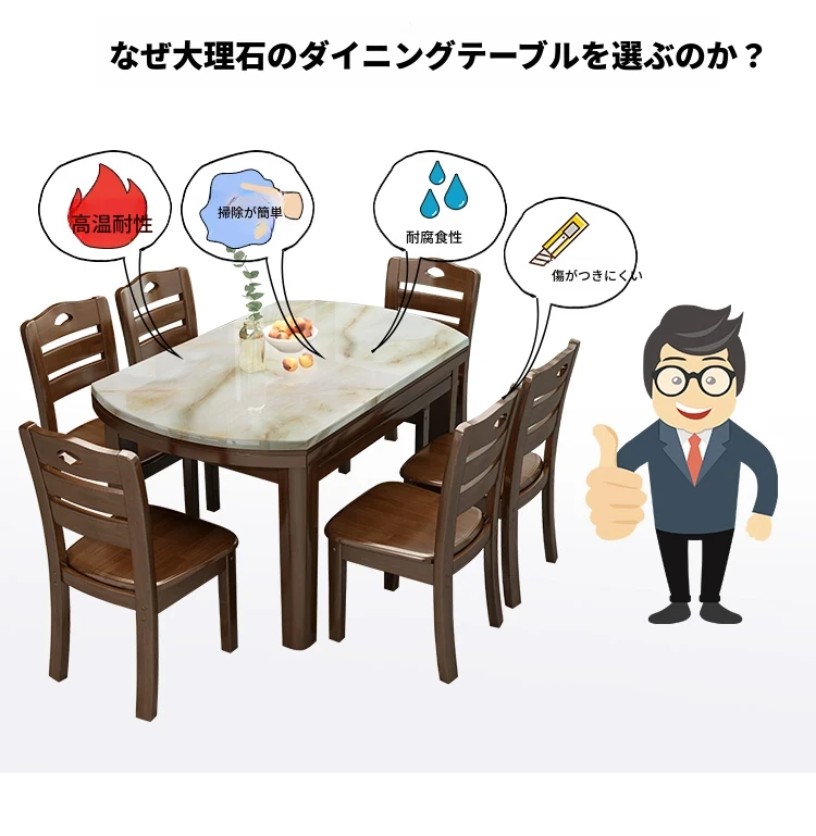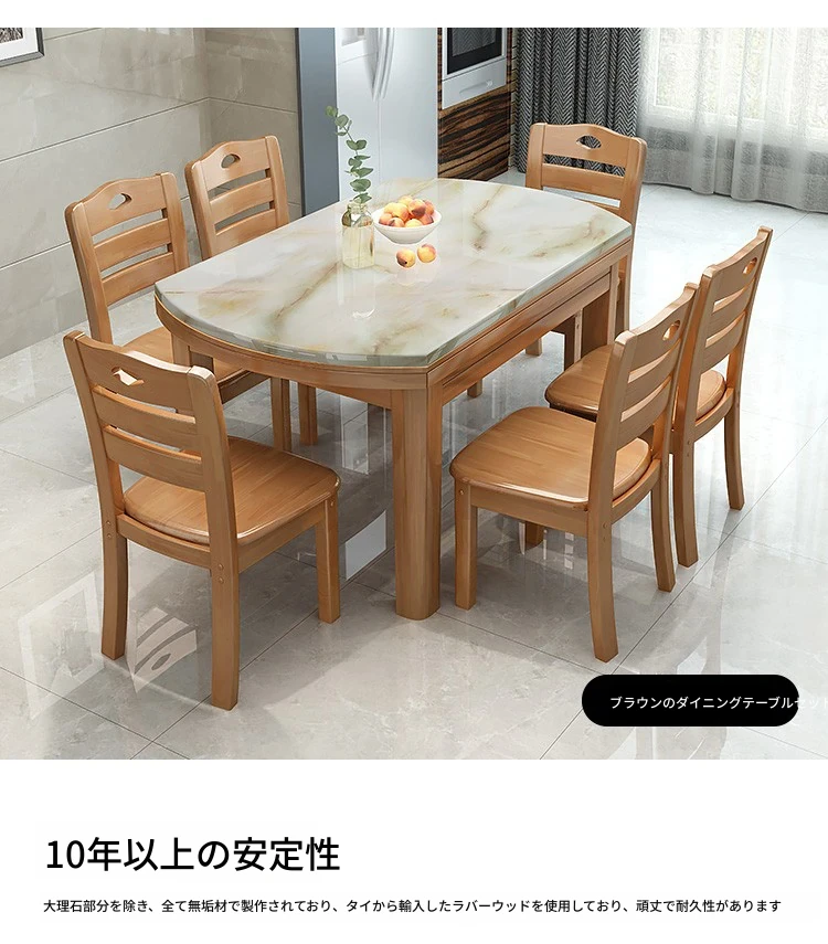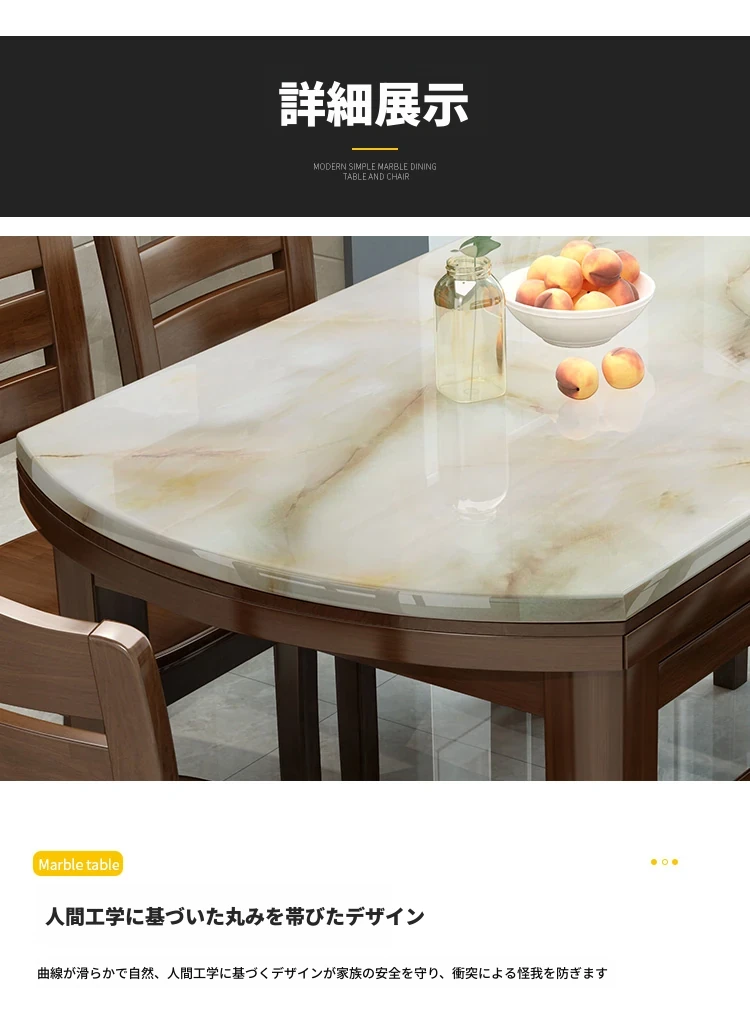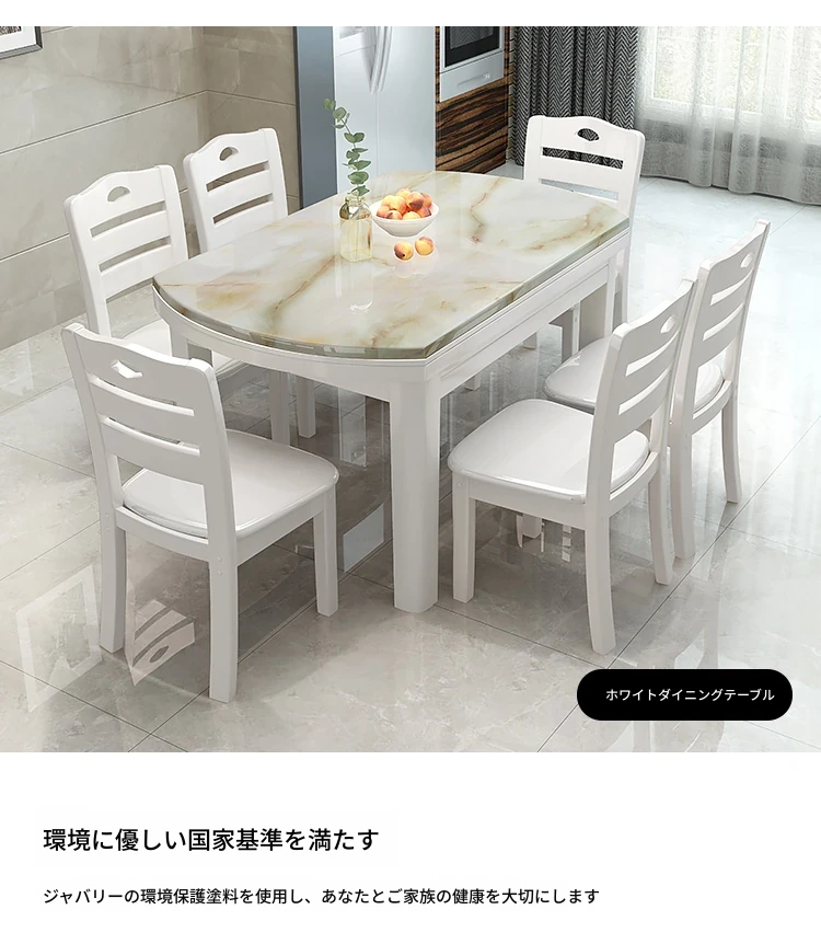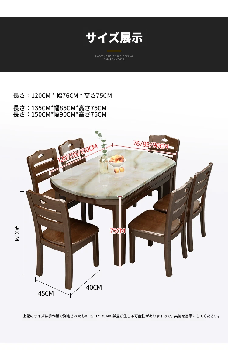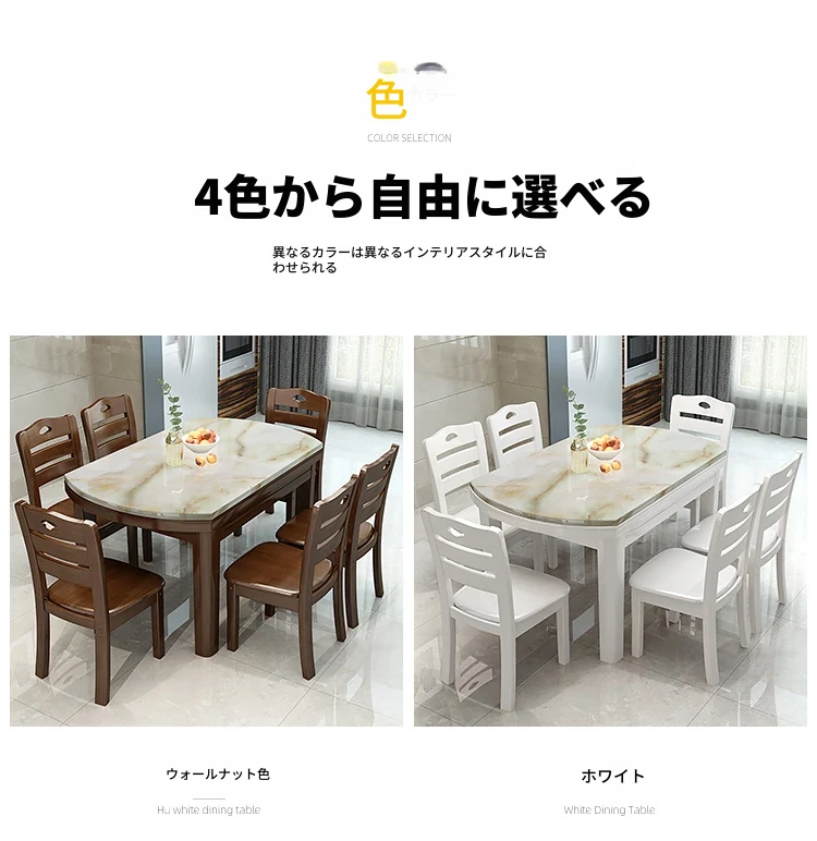 現代的シンプルなデザインの伸縮可能な実木製ダイニングテーブル - 長方形と円形の大理石仕上げ、ブラックカラーでスタイリッシュに!家族や友人との食事をより贅沢に演出します。
