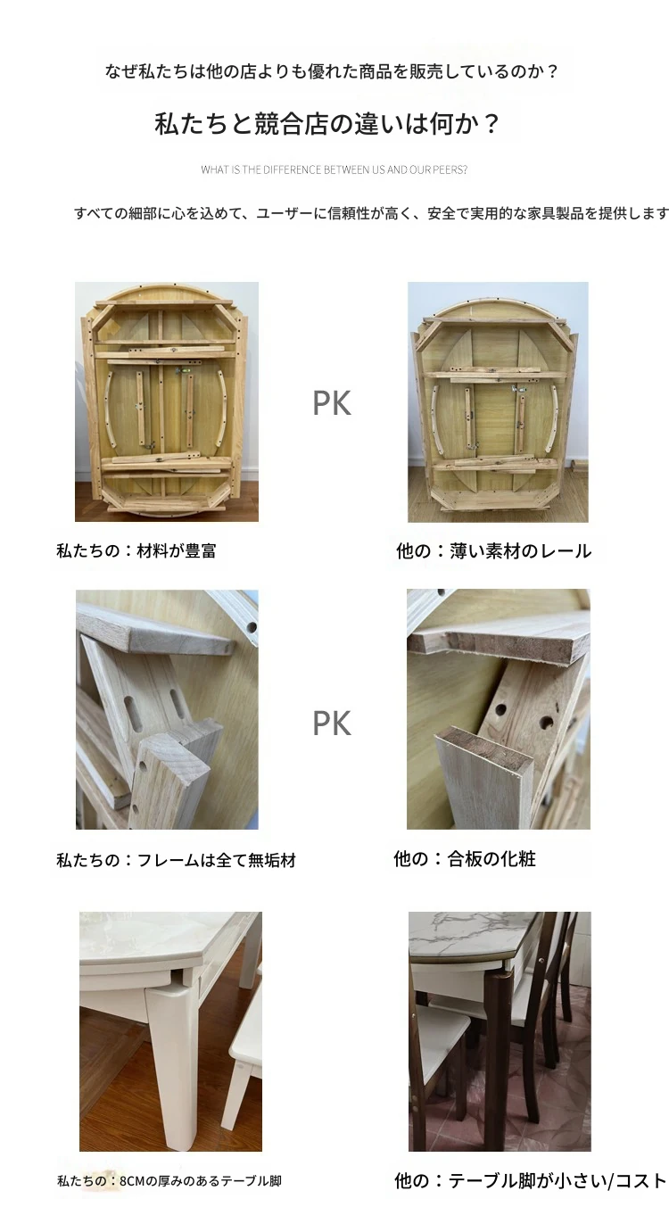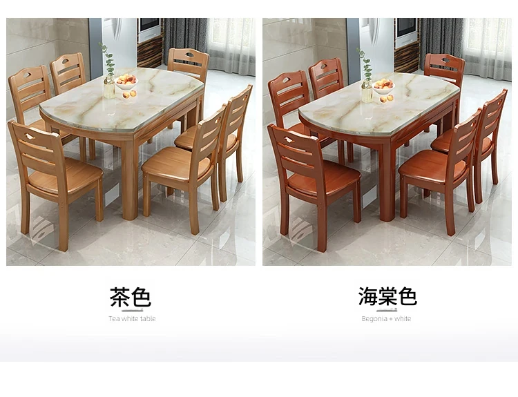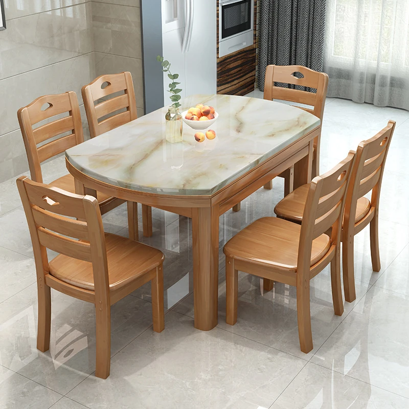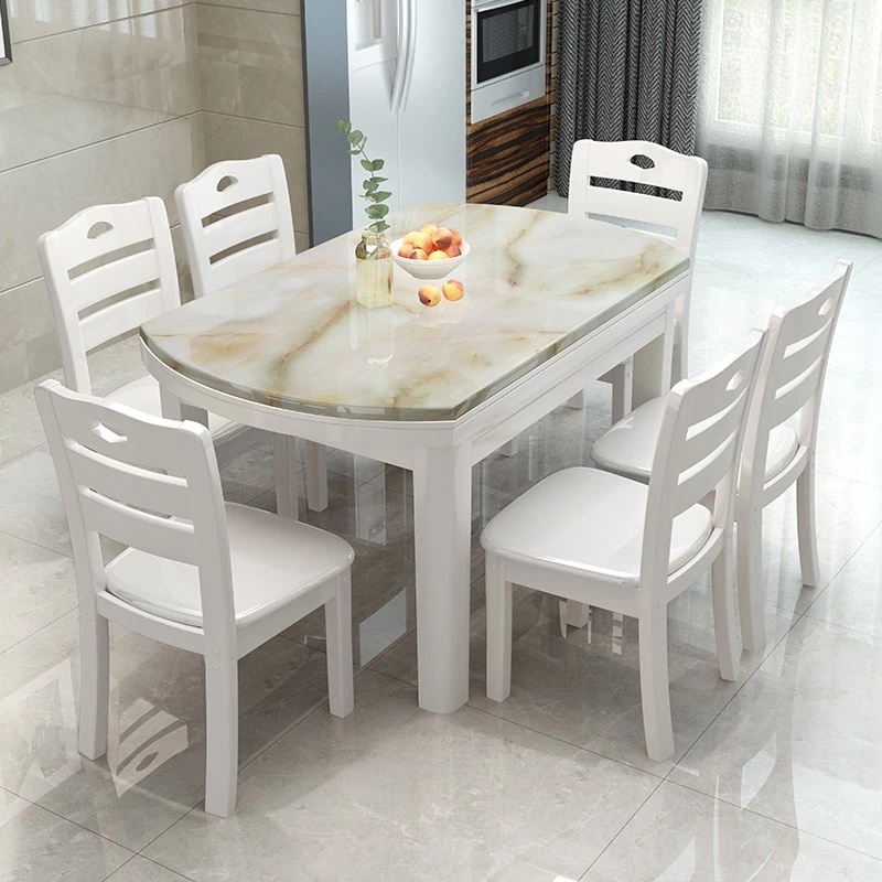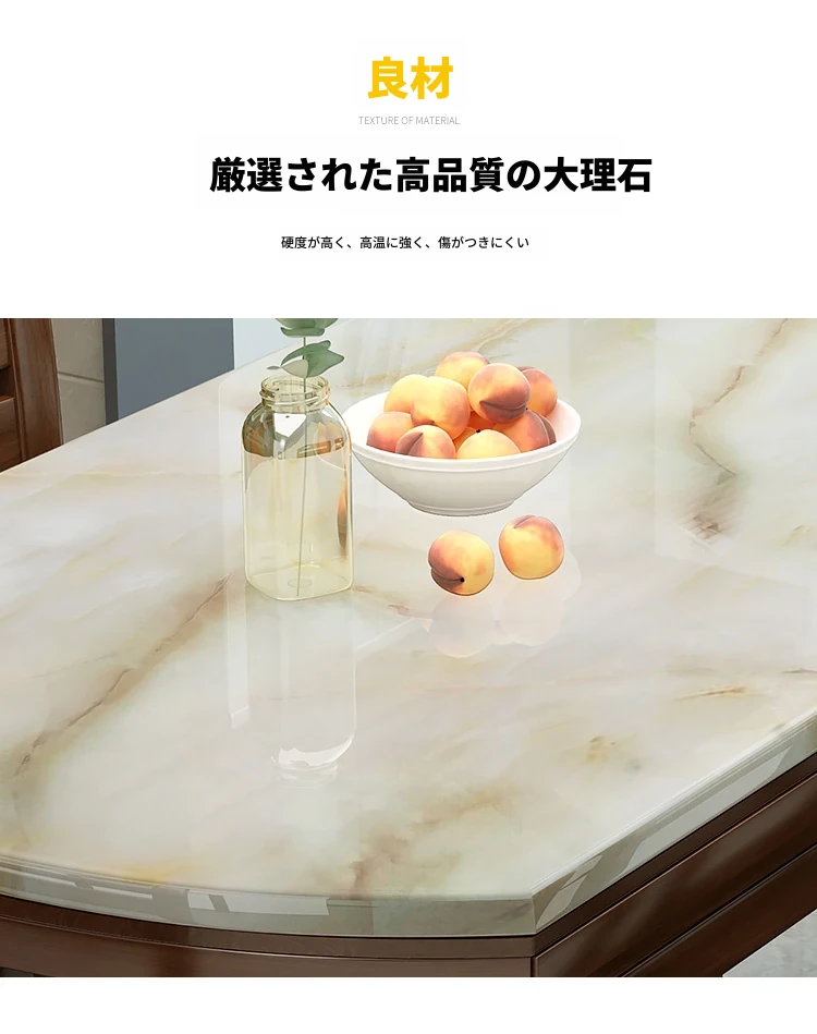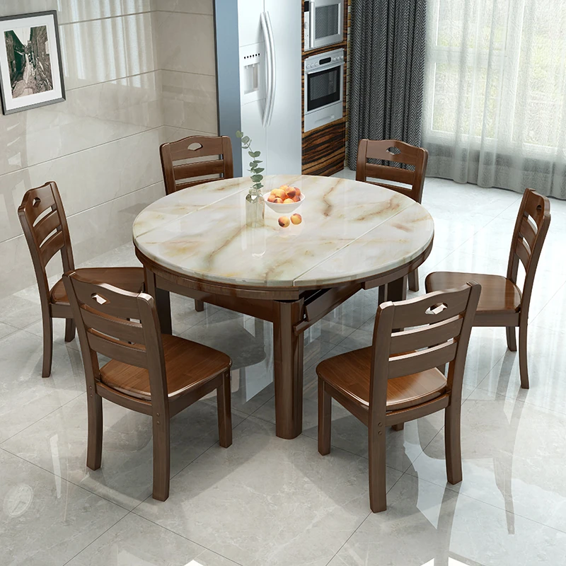 現代的シンプルなデザインの伸縮可能な実木製ダイニングテーブル - 長方形と円形の大理石仕上げ、ブラックカラーでスタイリッシュに!家族や友人との食事をより贅沢に演出します。