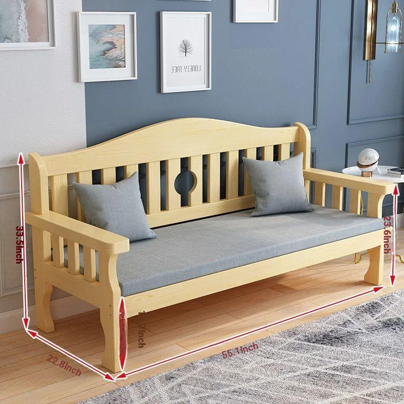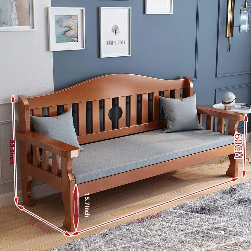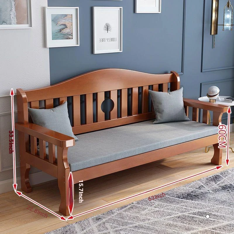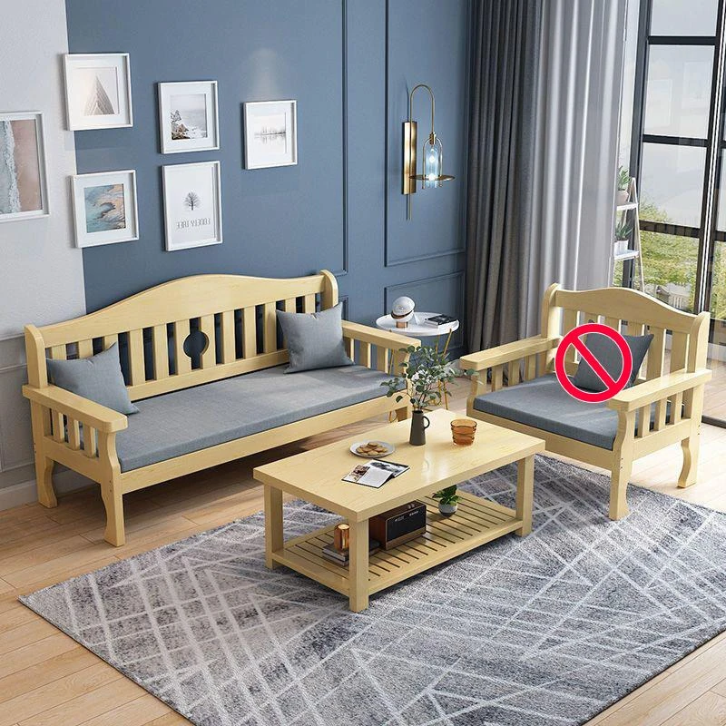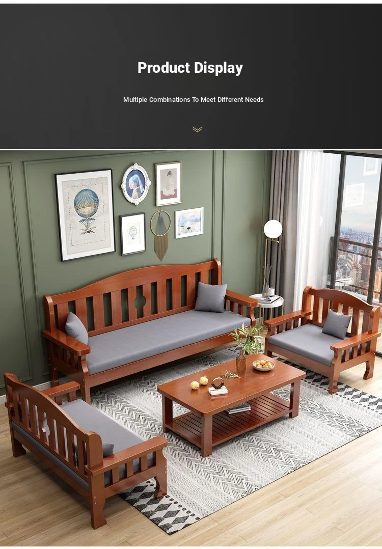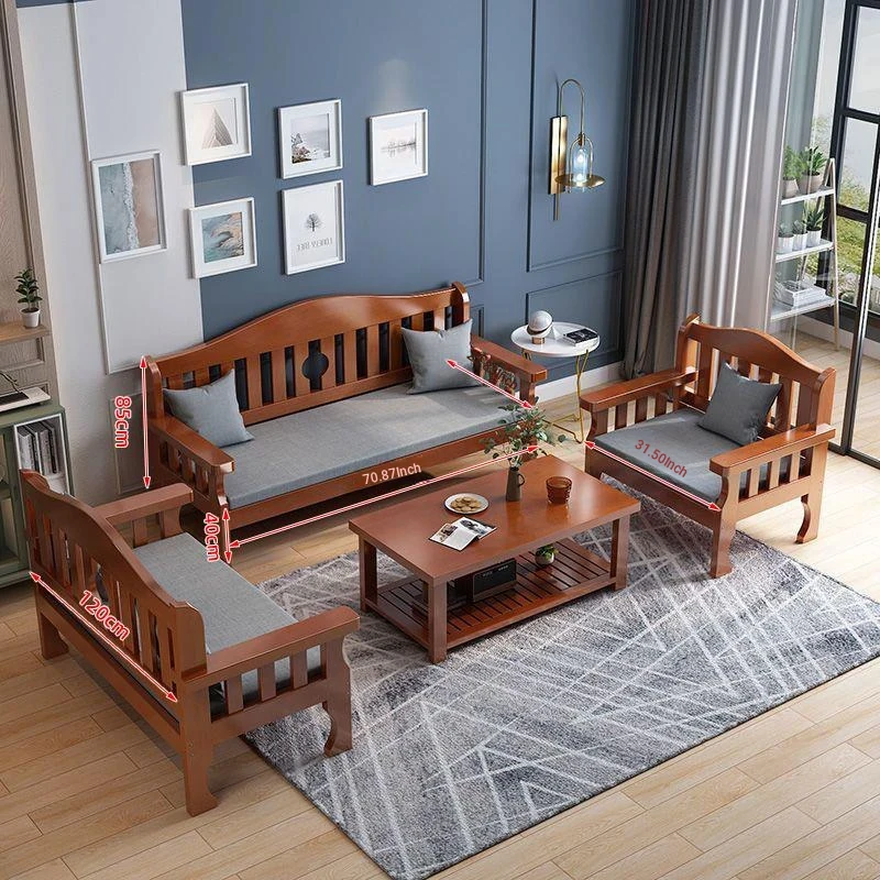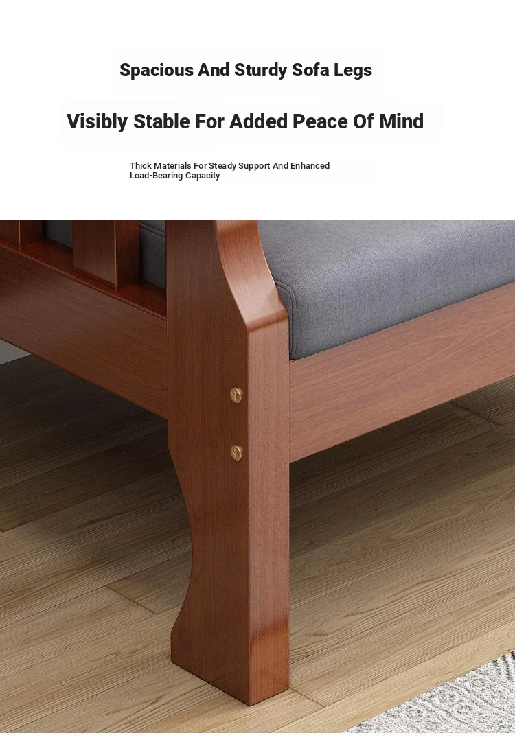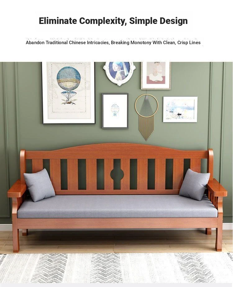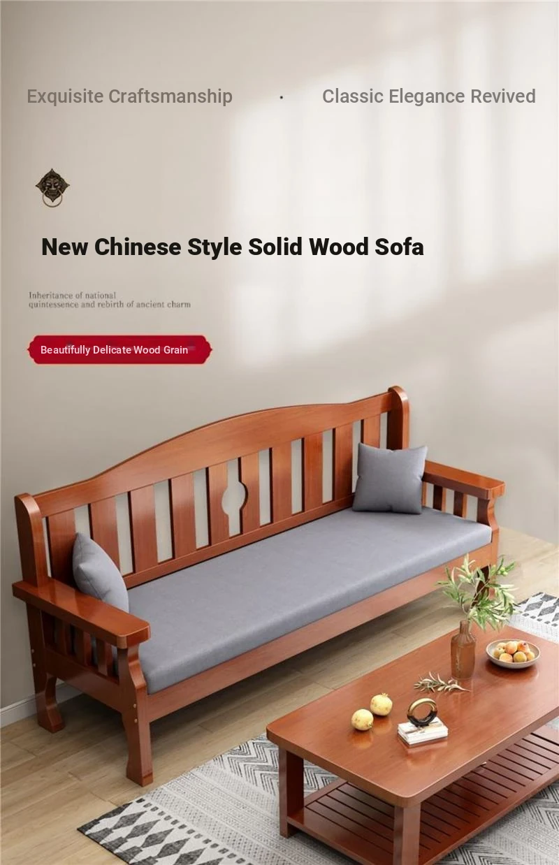 Modern Minimalist Solid Wood Sofa for Small Living Rooms - Three-Seater Combination in New Chinese Style with Backrest, Affordable and Space-Saving Design
