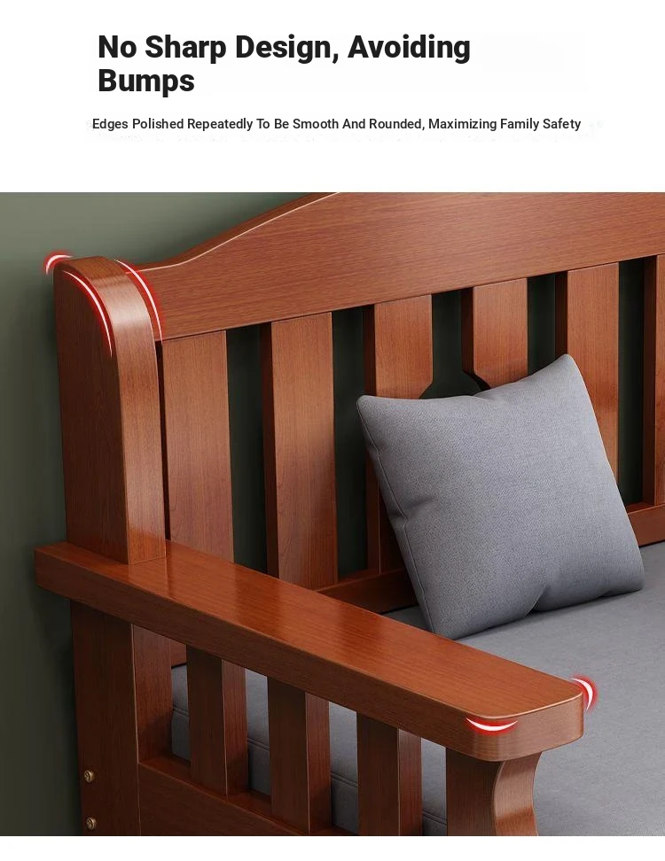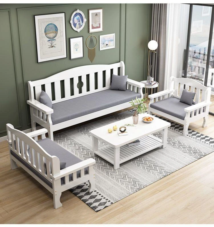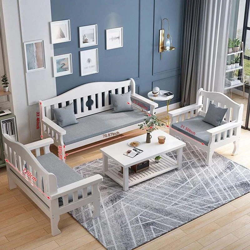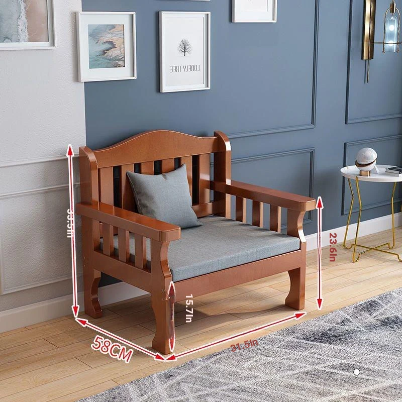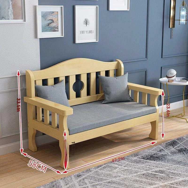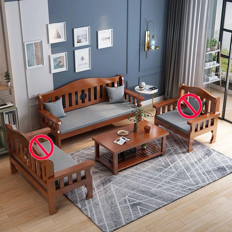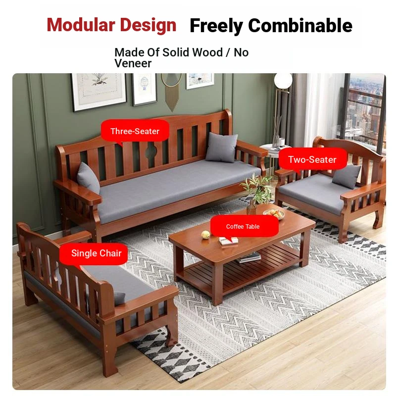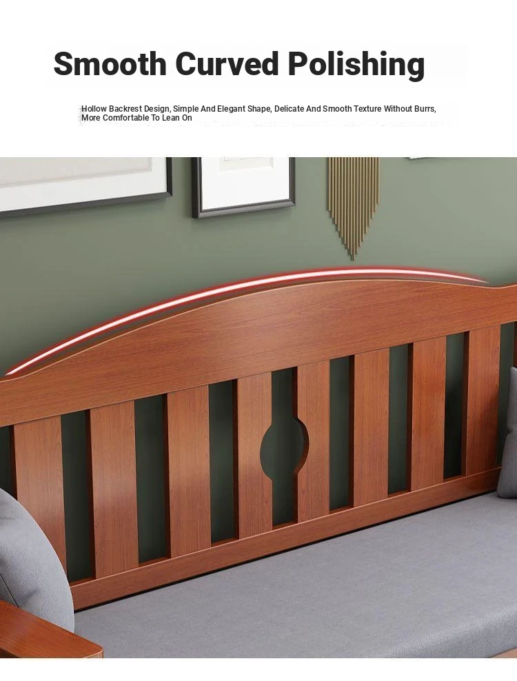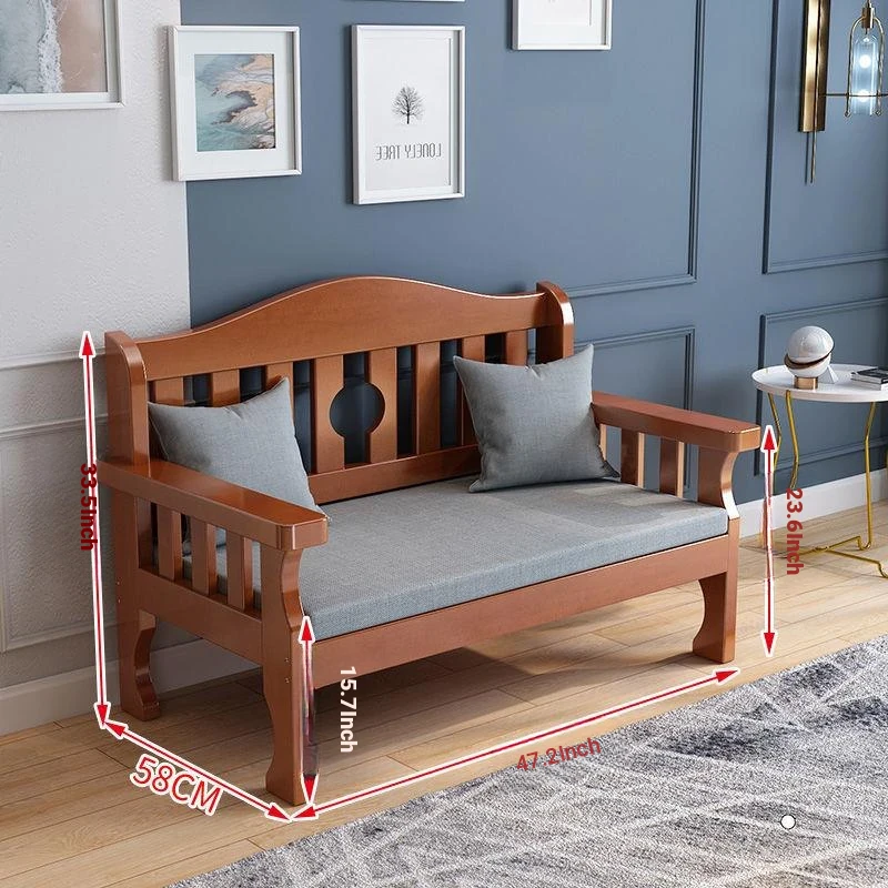 Modern Minimalist Solid Wood Sofa for Small Living Rooms - Three-Seater Combination in New Chinese Style with Backrest, Affordable and Space-Saving Design