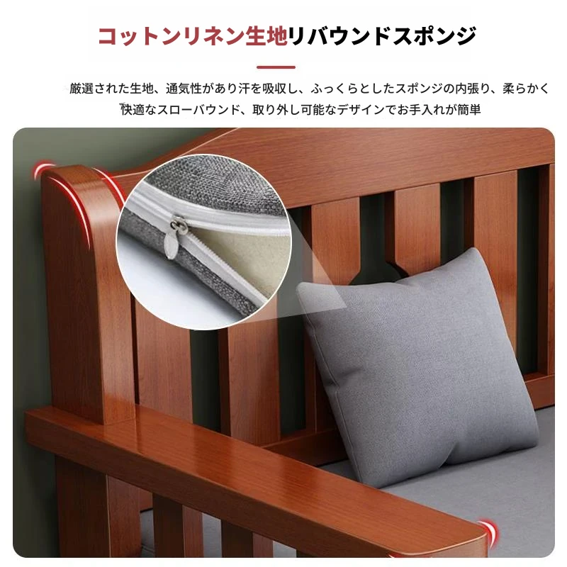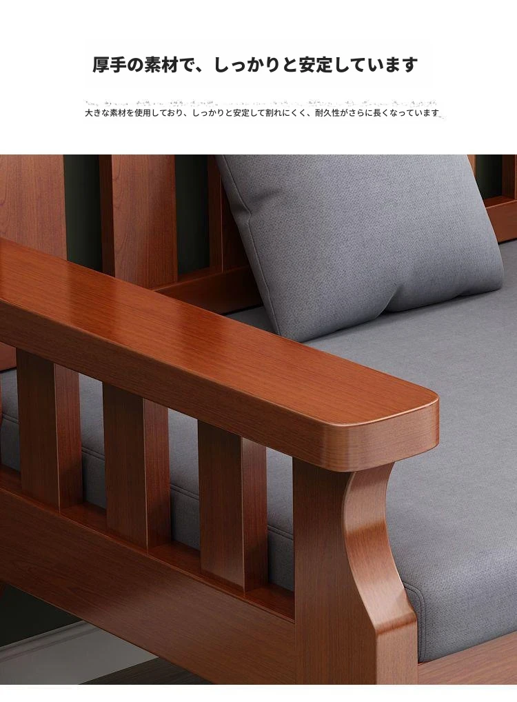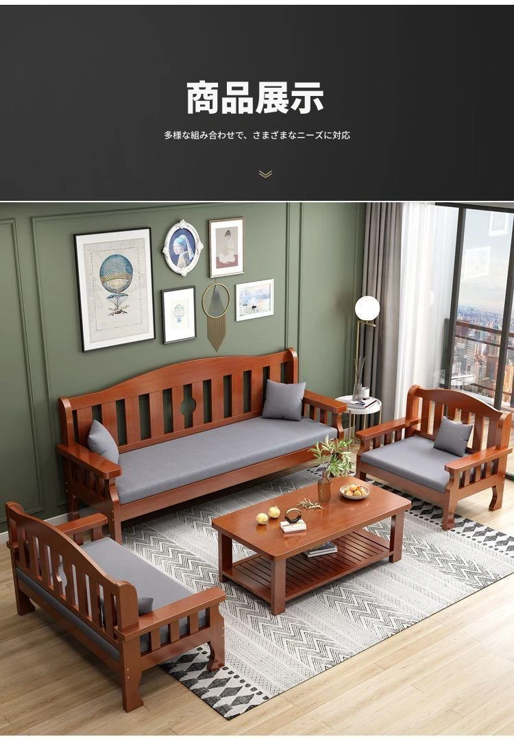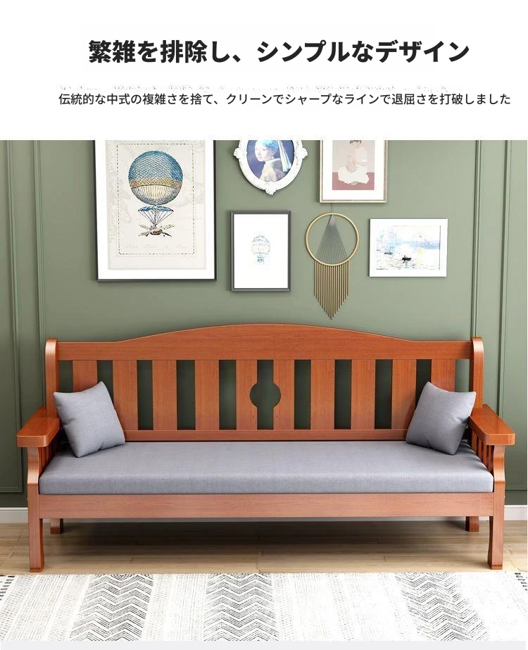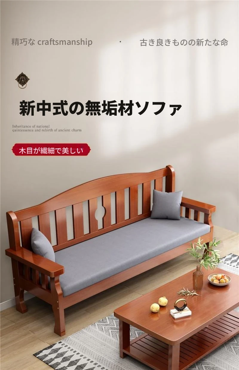 新中式デザインの実木ソファ!小型リビングにぴったりなシンプルな3人掛けコンビネーション。経済的でありながら、快適な背もたれのロングベンチスタイルで、あなたの家をおしゃれに演出します。