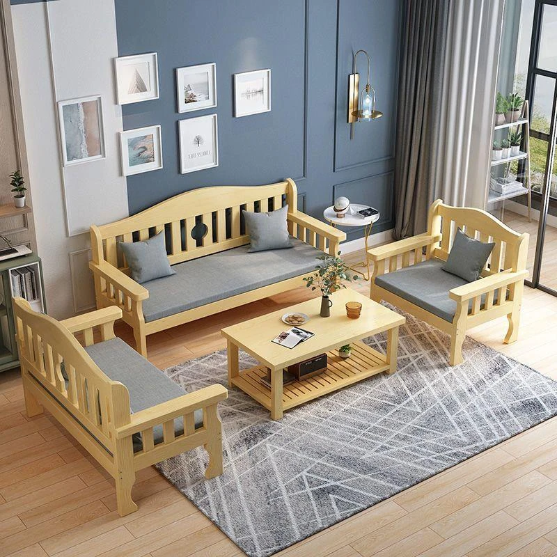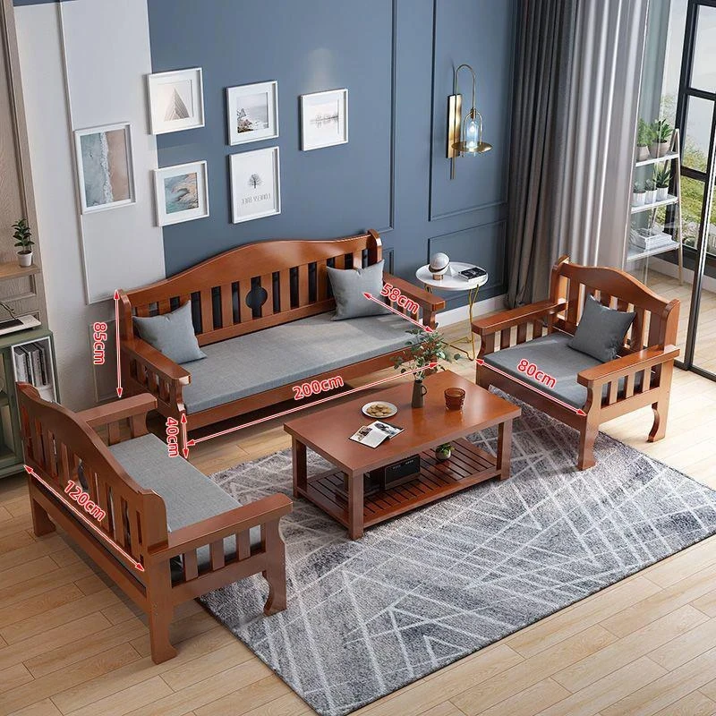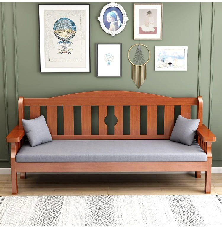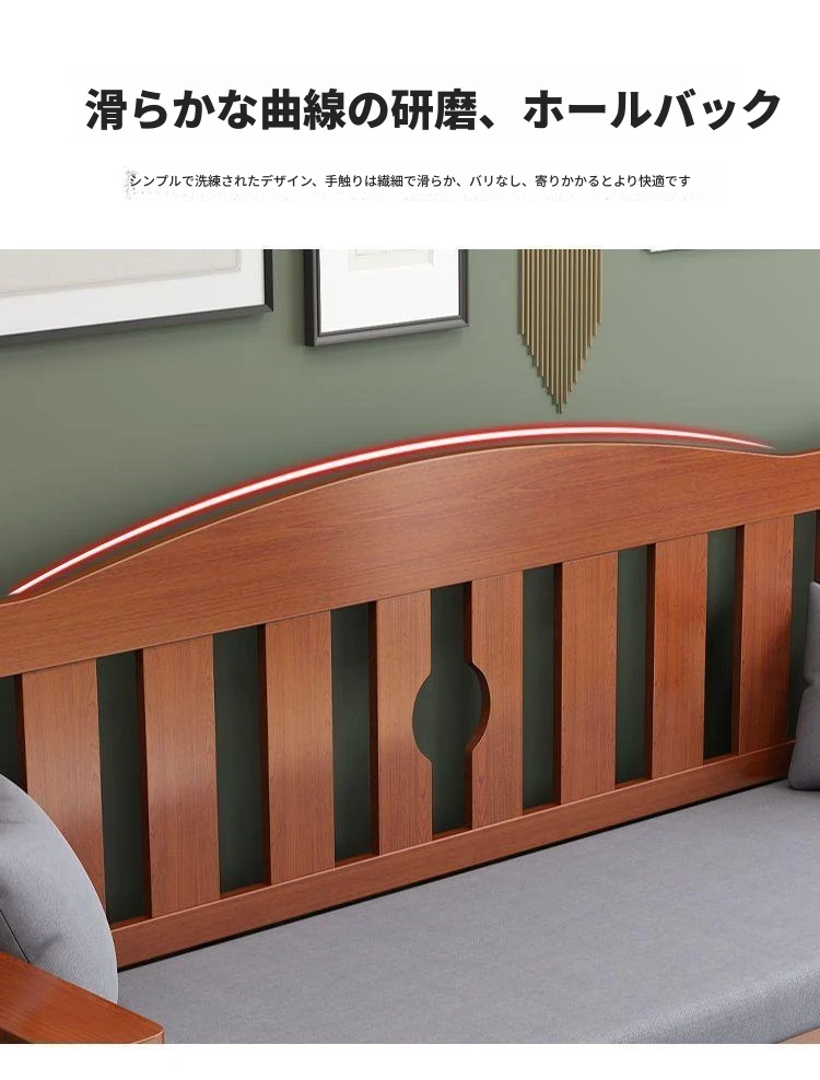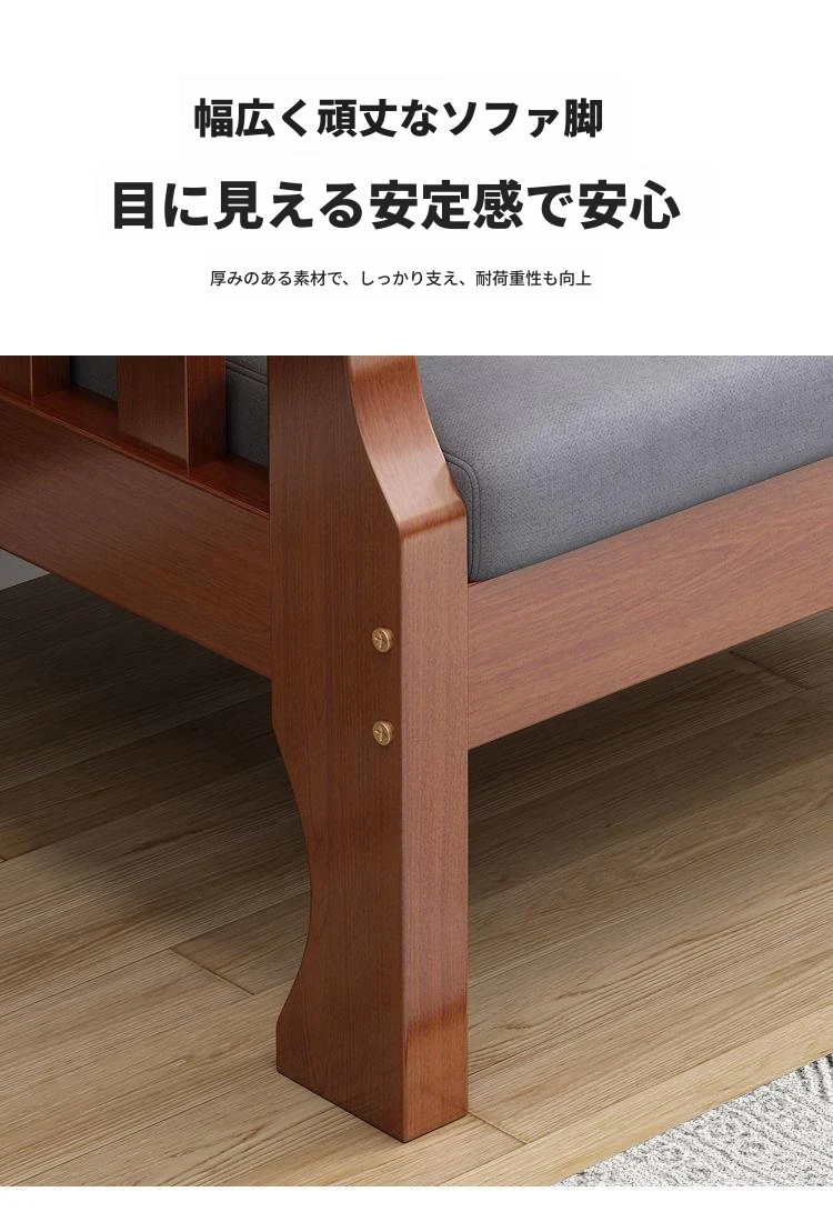 新中式デザインの実木ソファ!小型リビングにぴったりなシンプルな3人掛けコンビネーション。経済的でありながら、快適な背もたれのロングベンチスタイルで、あなたの家をおしゃれに演出します。