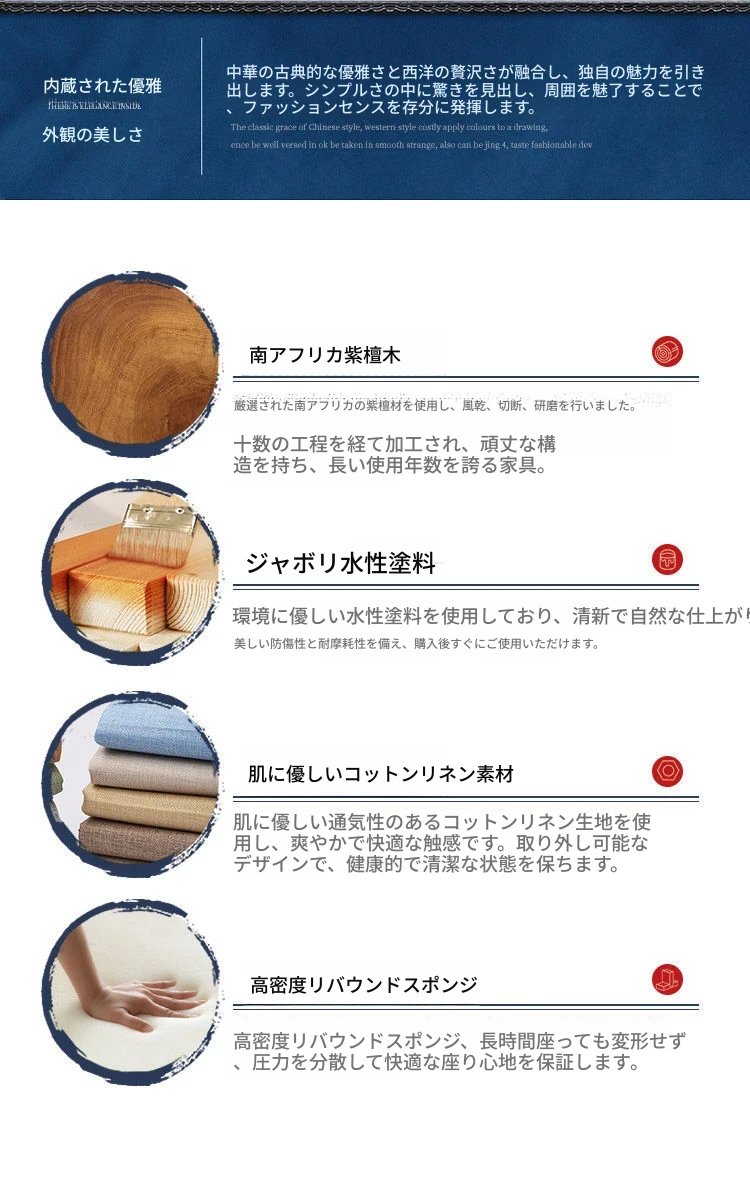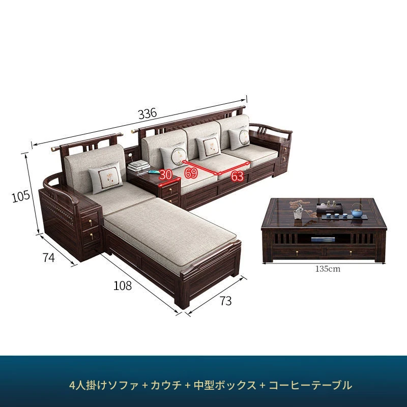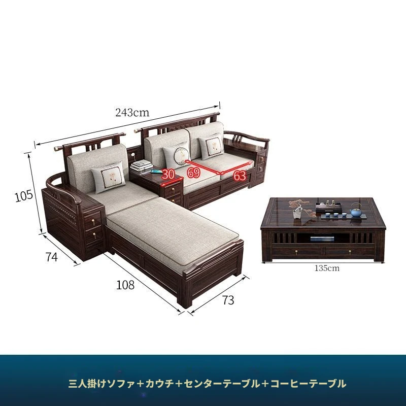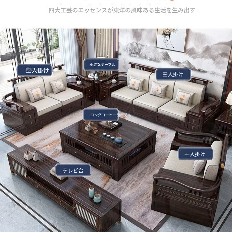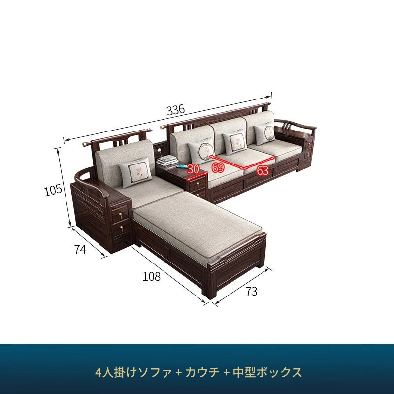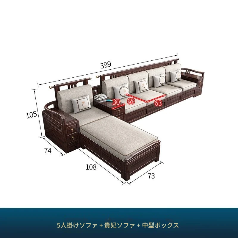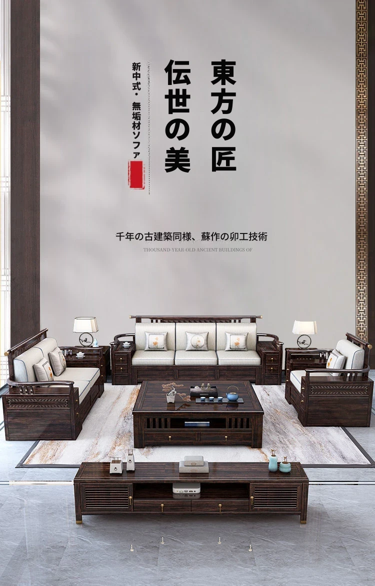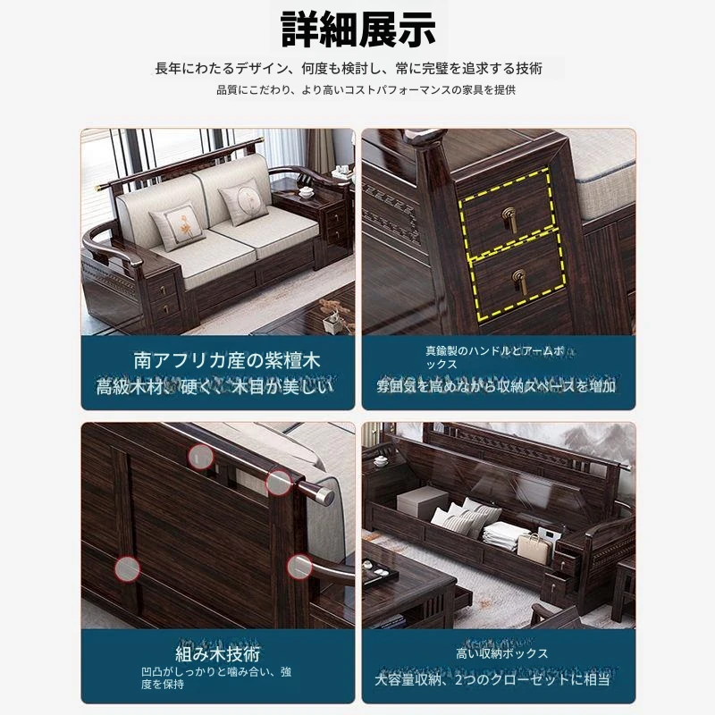 紫金檀木製の新中式スタイルのモダンなシンプルソファ - 冬夏兼用、収納付き、大小さまざまなリビングルームに最適な家具!快適さと美しさを兼ね備えたあなたの理想の空間を演出します。