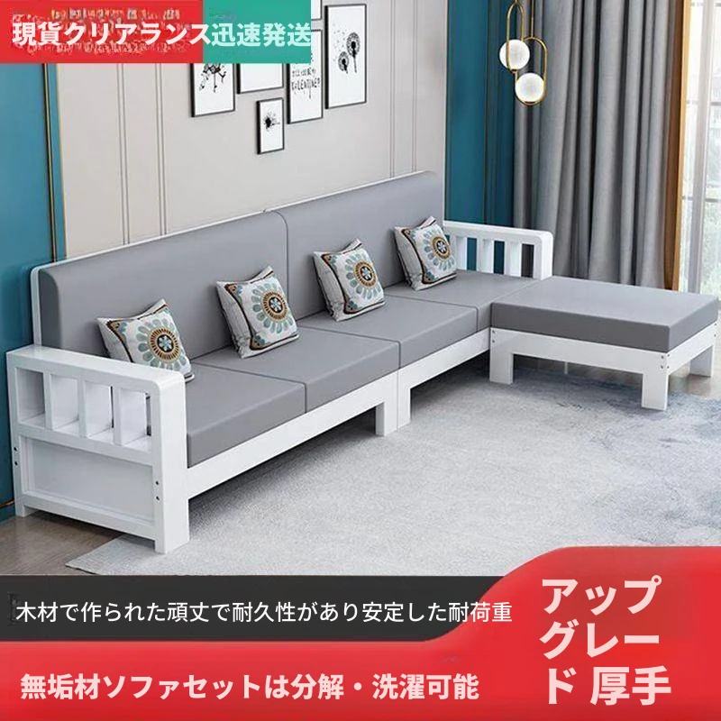 モダンな中式デザイン!実木製ソファセット - 小型リビングに最適なシンプルで経済的な3人掛けソファ。居心地の良い空間を演出し、あなたの家をスタイリッシュに彩ります!
