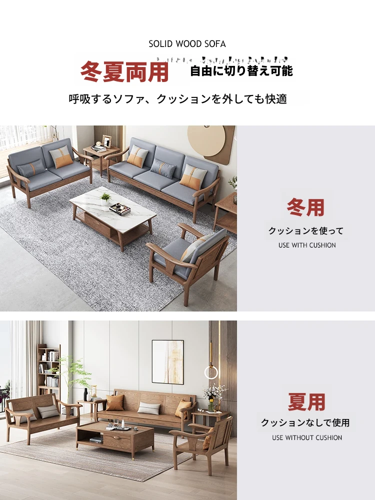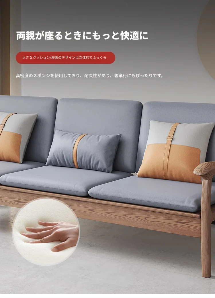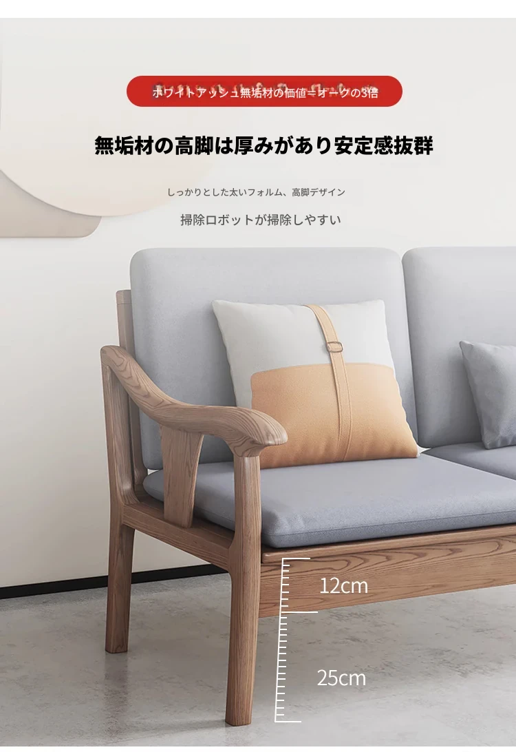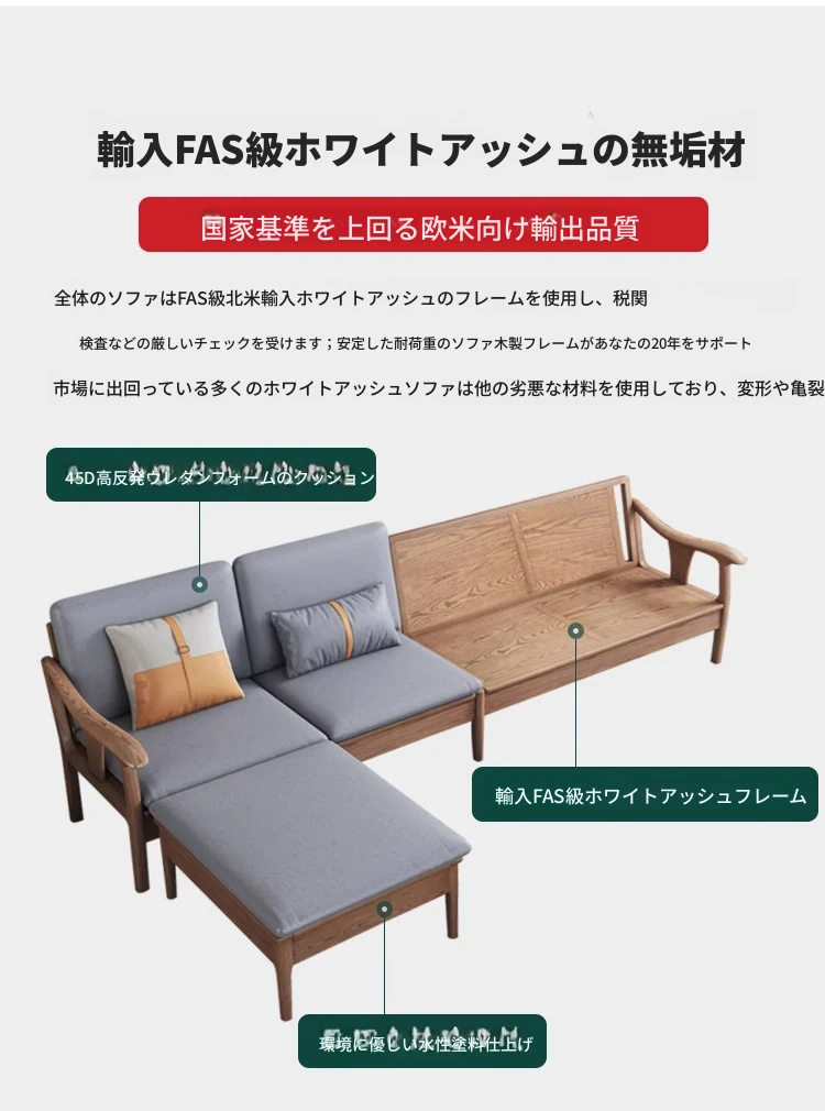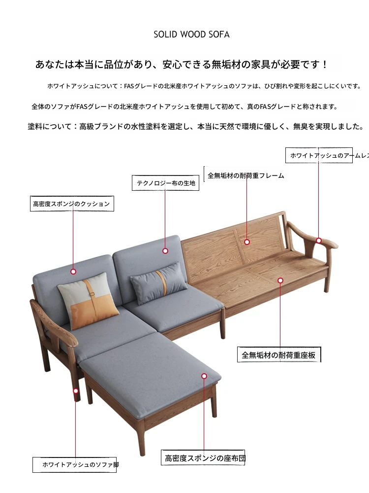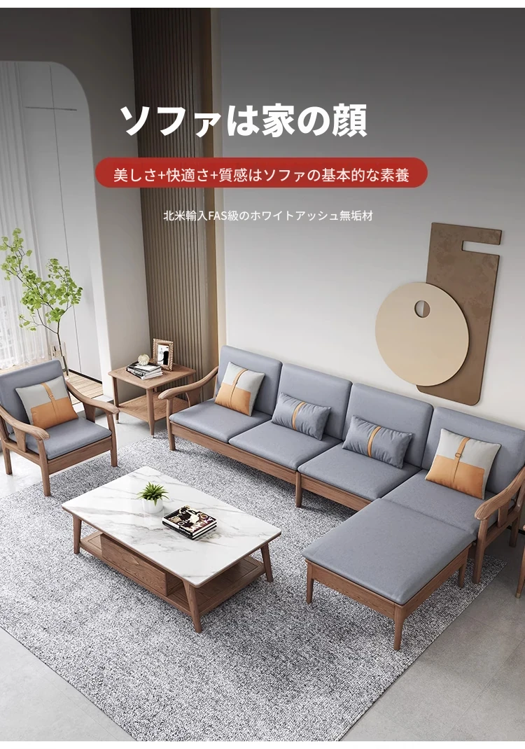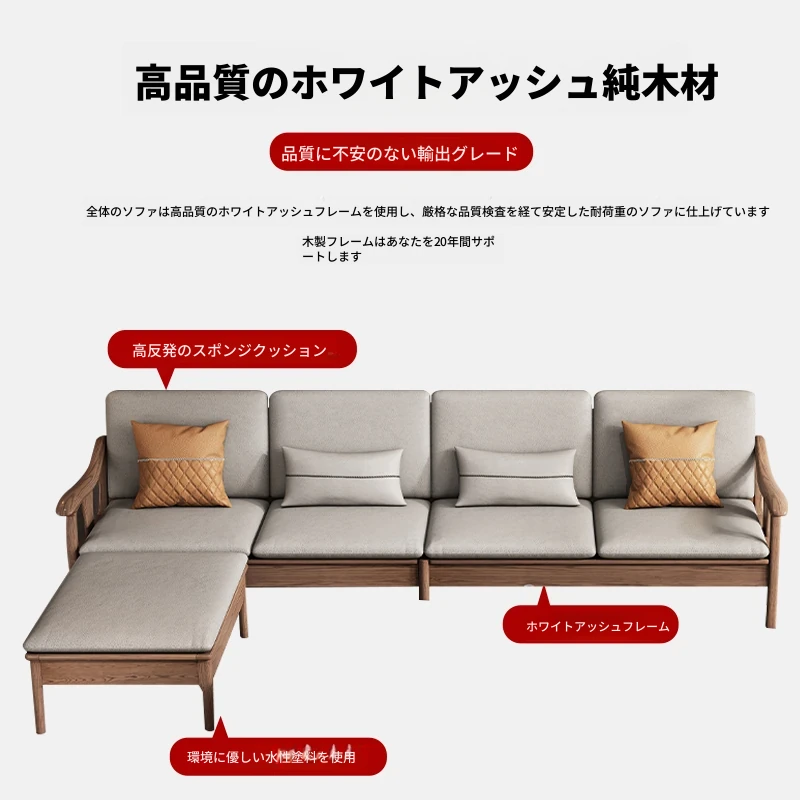 現代的シンプルなホワイトアッシュ無垢材ソファー – 北欧風の小型リビングに最適!布製コンビネーション、冬も夏も快適に使える家具。おしゃれで機能的な空間を演出します!