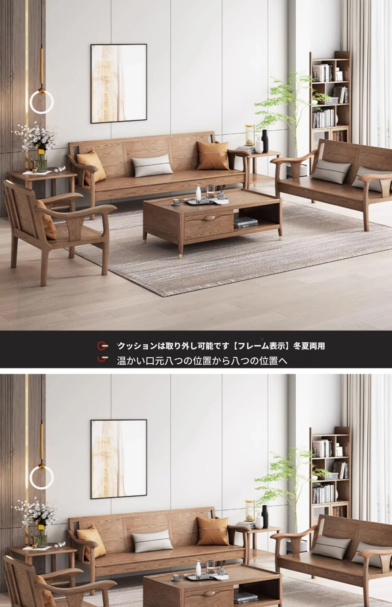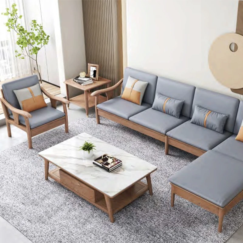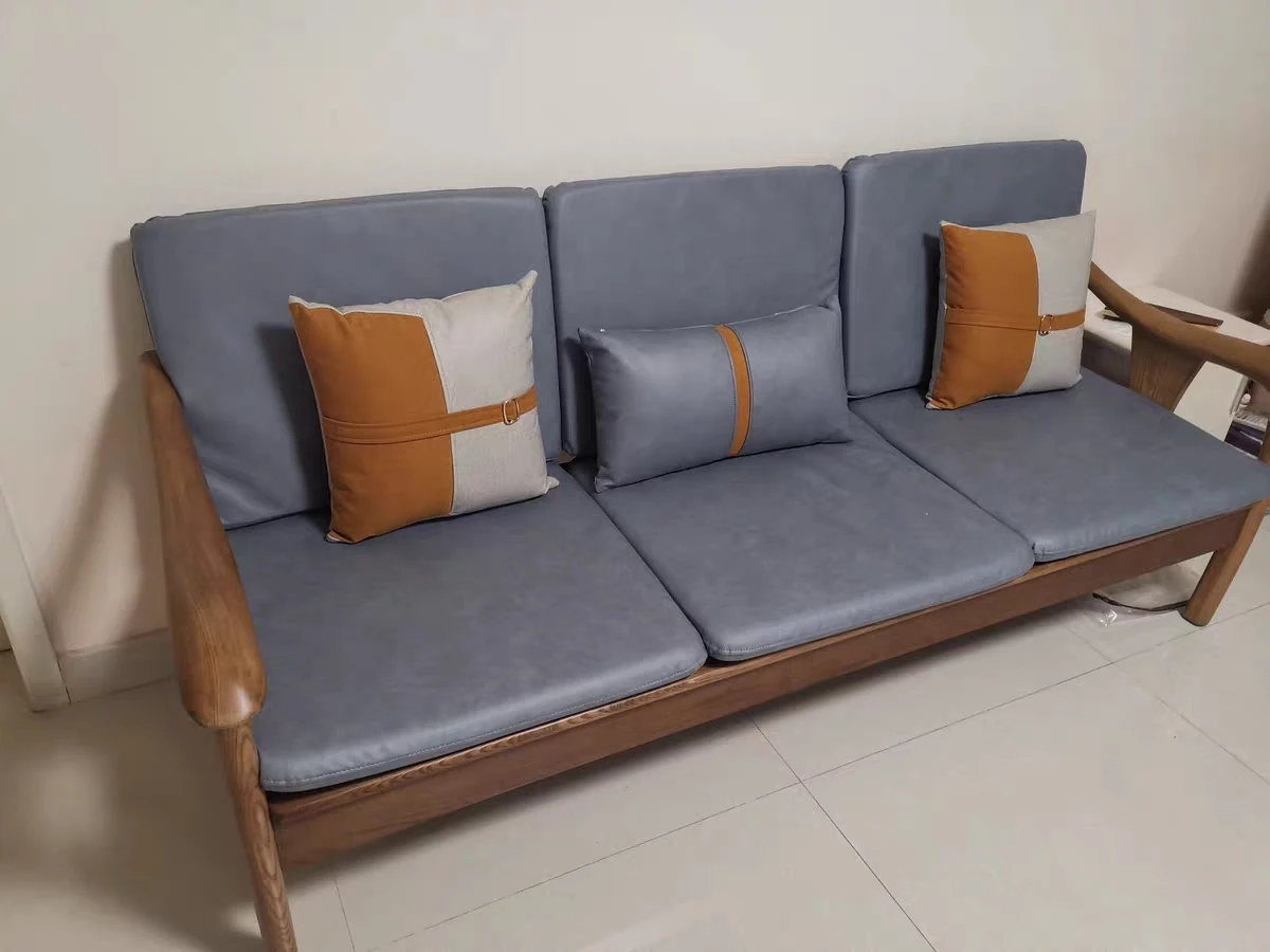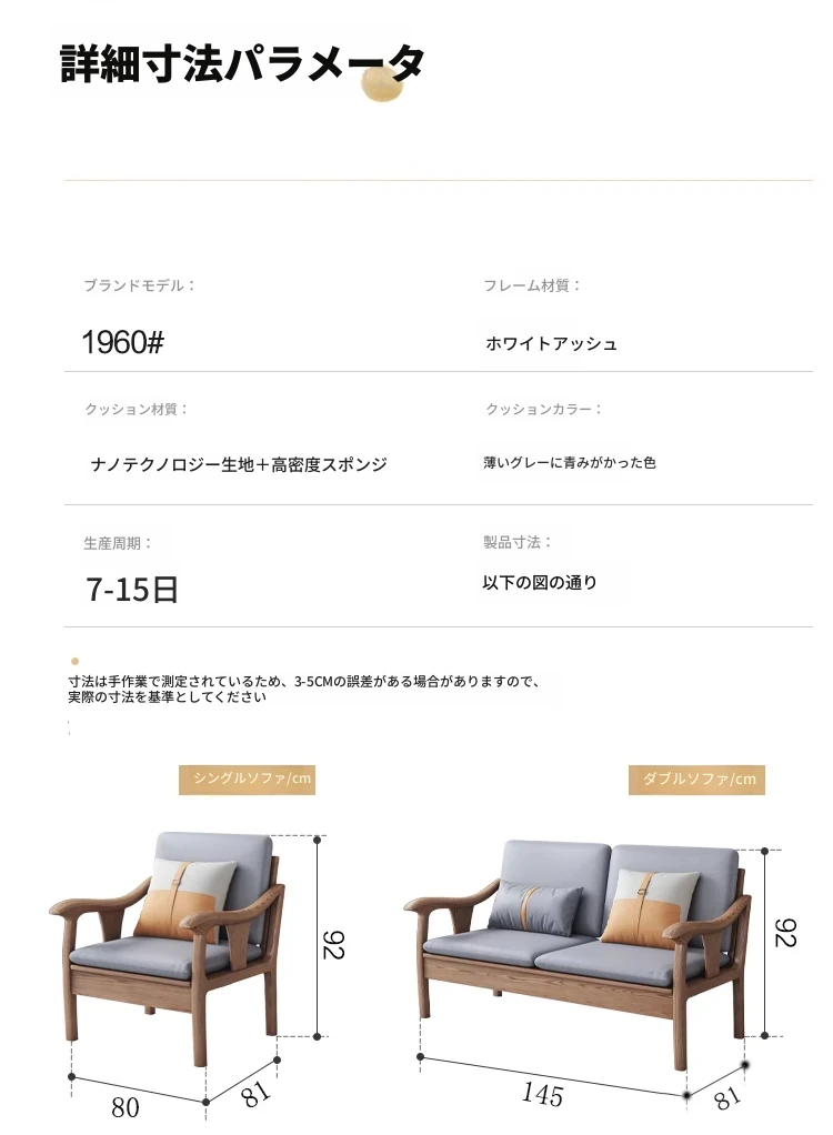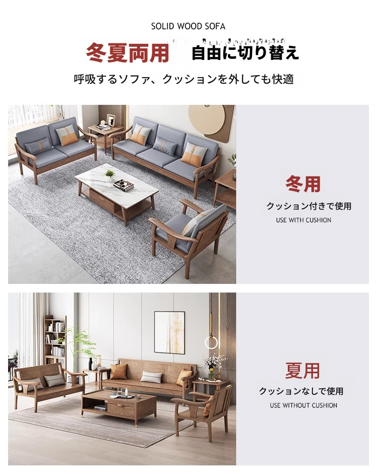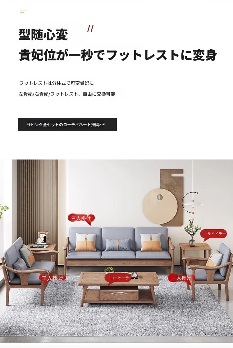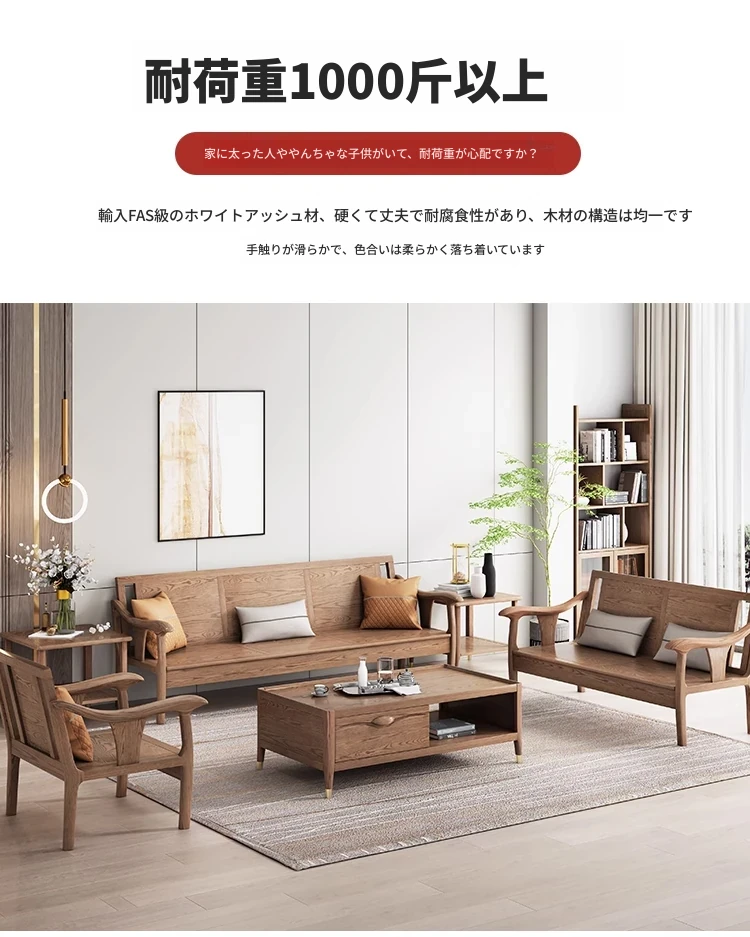 現代的シンプルなホワイトアッシュ無垢材ソファー – 北欧風の小型リビングに最適!布製コンビネーション、冬も夏も快適に使える家具。おしゃれで機能的な空間を演出します!