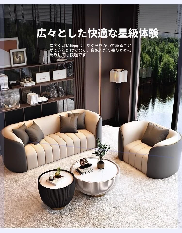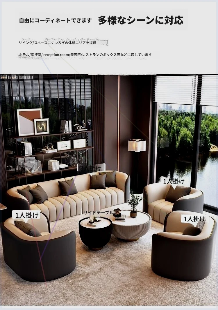 ホテルロビーにぴったり!直線デザインのスタイリッシュなピアノキーソファ。猫の爪にも強い耐久性のある素材で、リラックスした会話やビジネスミーティングをサポートします。快適さと洗練を兼ね備えたオフィスやリビングに最適な一品!