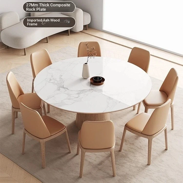 Modern Round Solid Wood Dining Table and Chair Set - Minimalist Design for Small Spaces, Nordic Style with Extendable Features and Rotating Marble Top