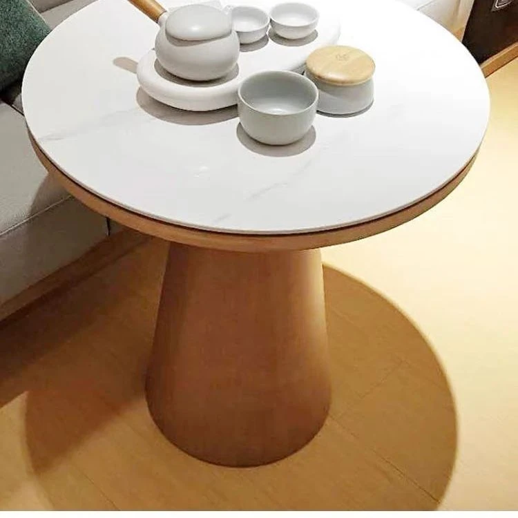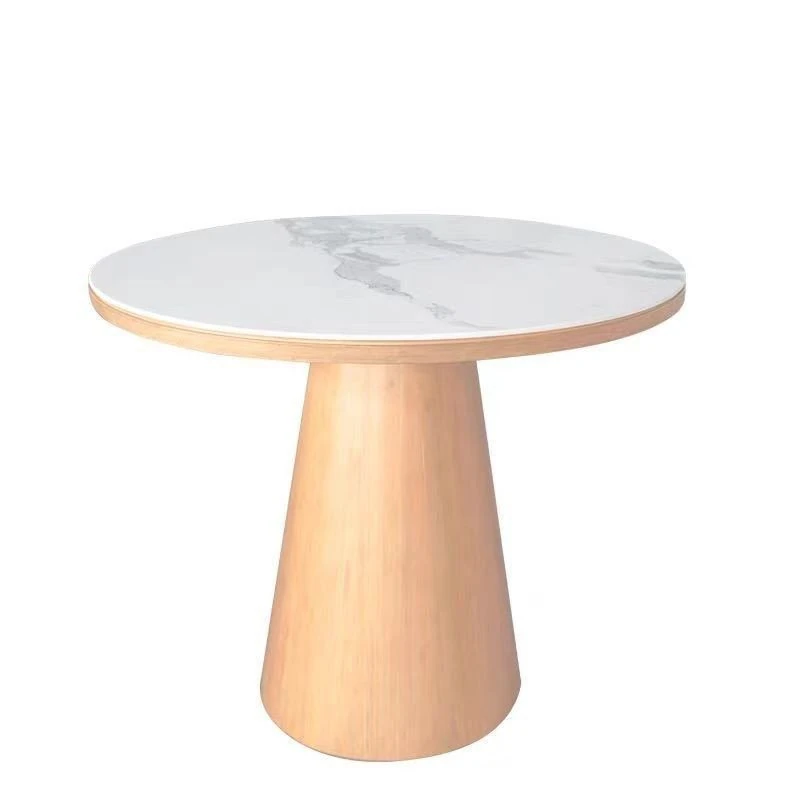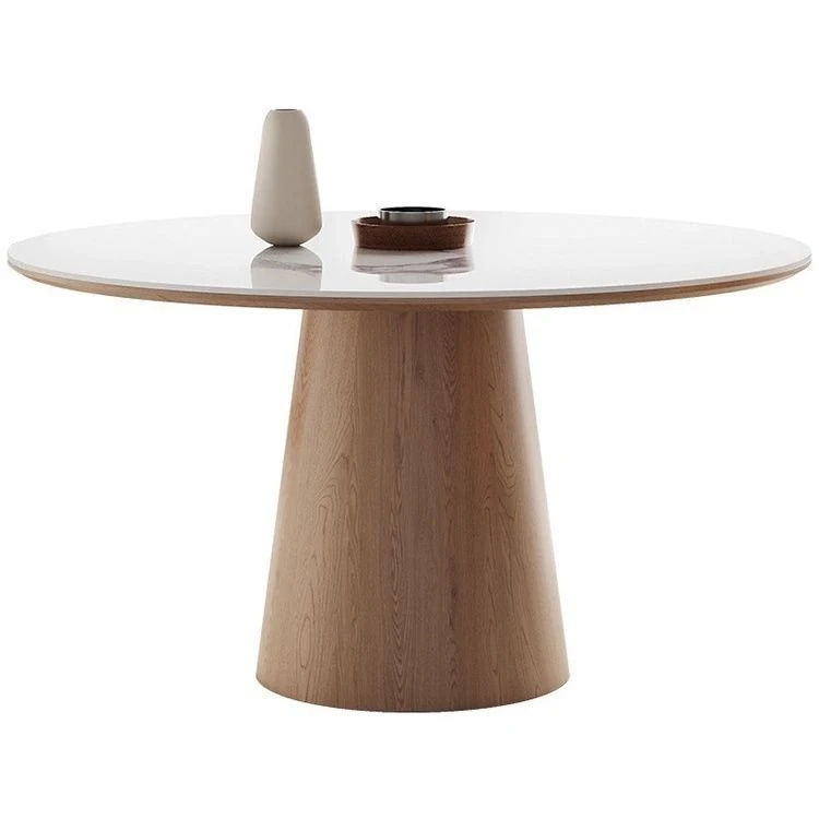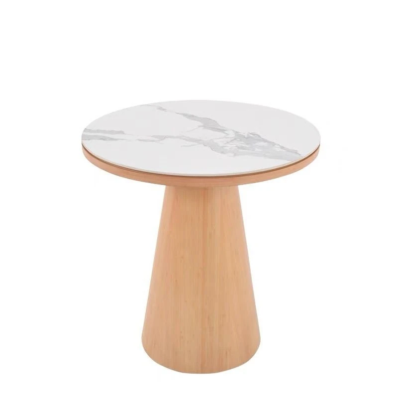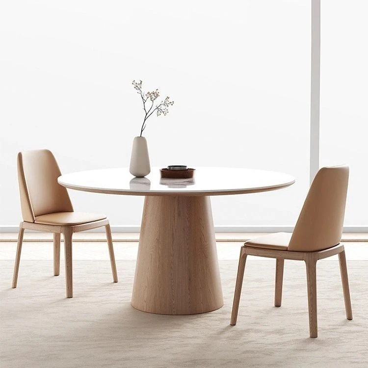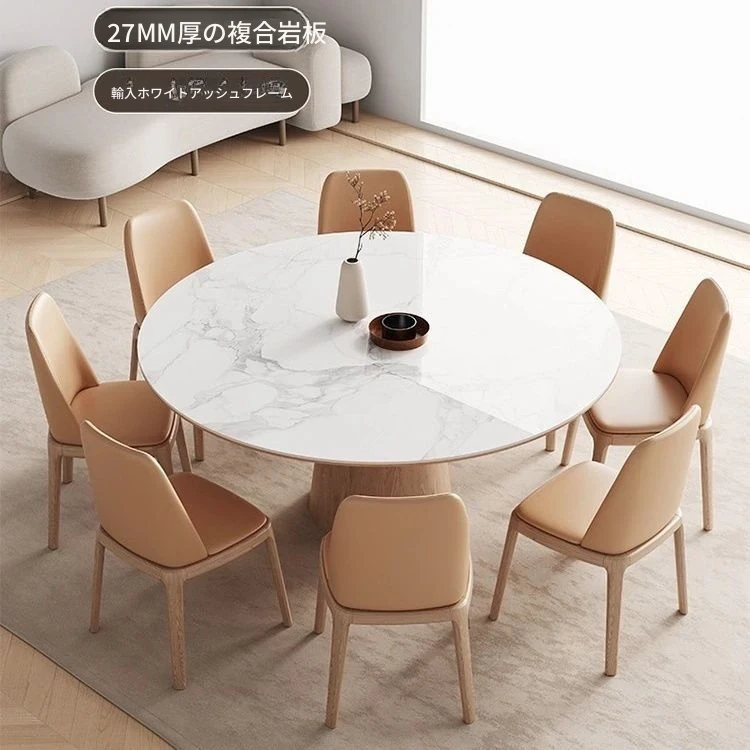 シンプルでスタイリッシュな無垢材ダイニングテーブルセット - 小さなスペースにぴったりな北欧デザインの円形テーブル。伸縮可能な機能で、家族や友人との楽しい食事を演出します!