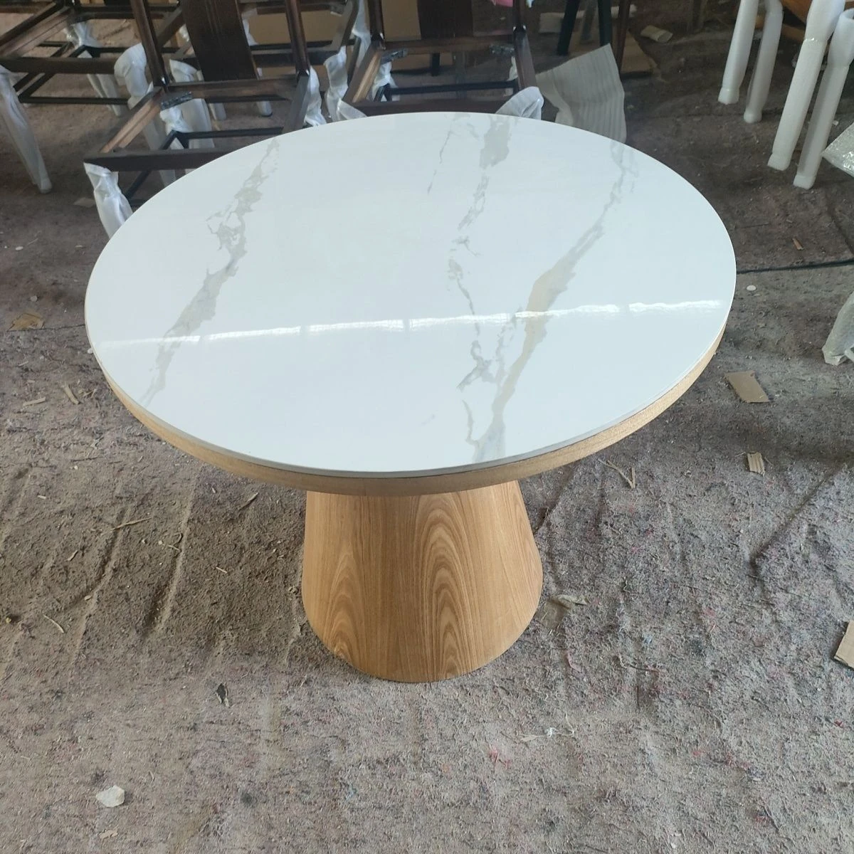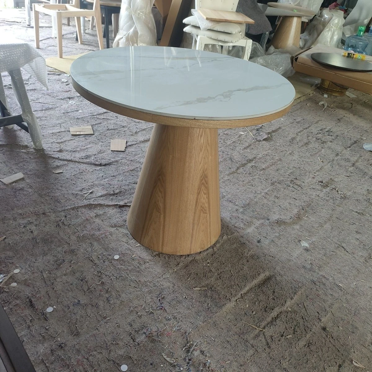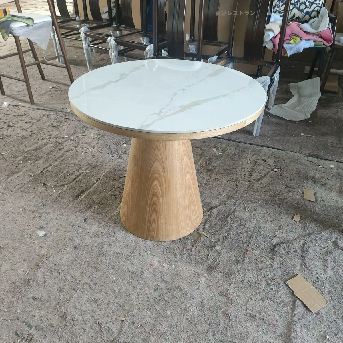 シンプルでスタイリッシュな無垢材ダイニングテーブルセット - 小さなスペースにぴったりな北欧デザインの円形テーブル。伸縮可能な機能で、家族や友人との楽しい食事を演出します!
