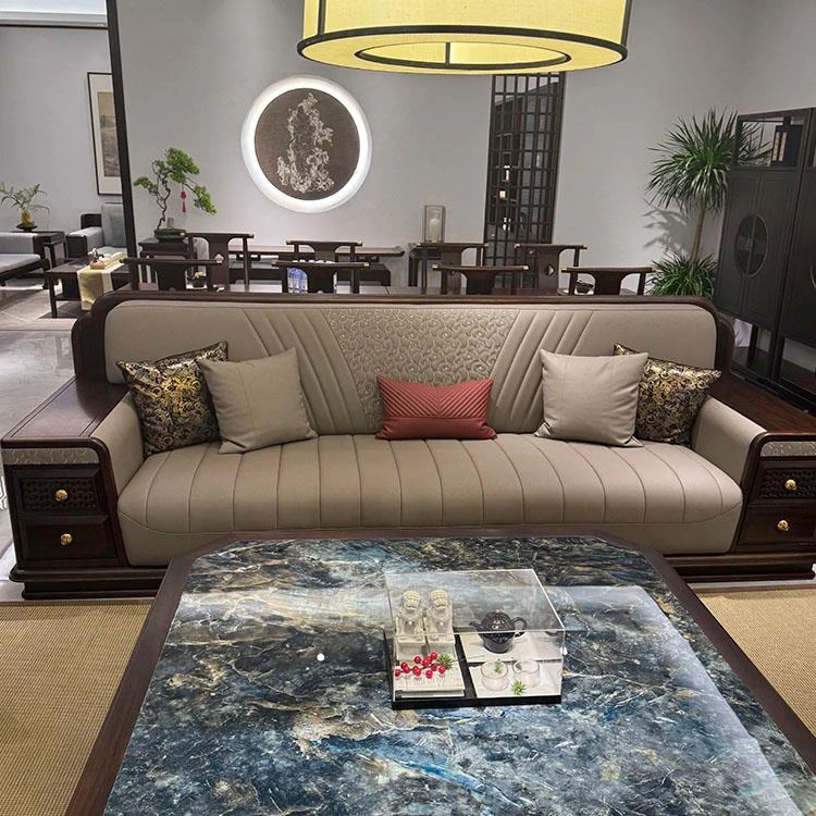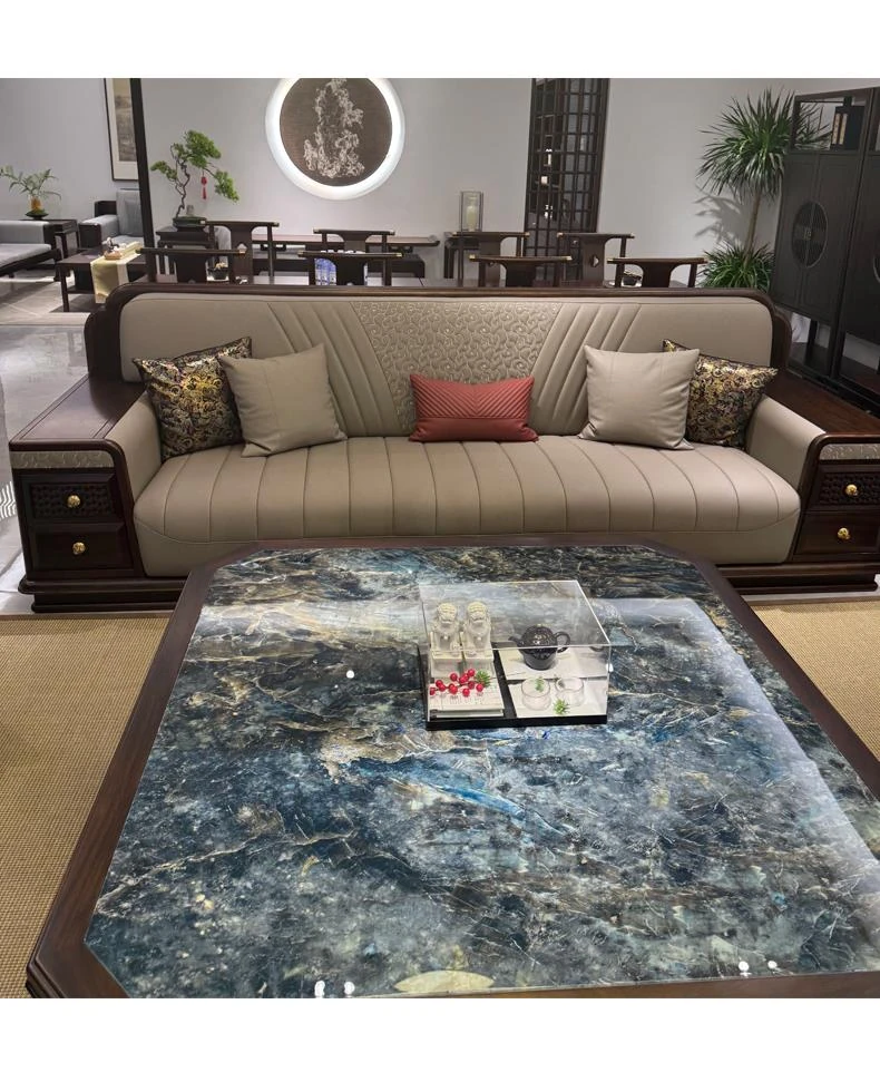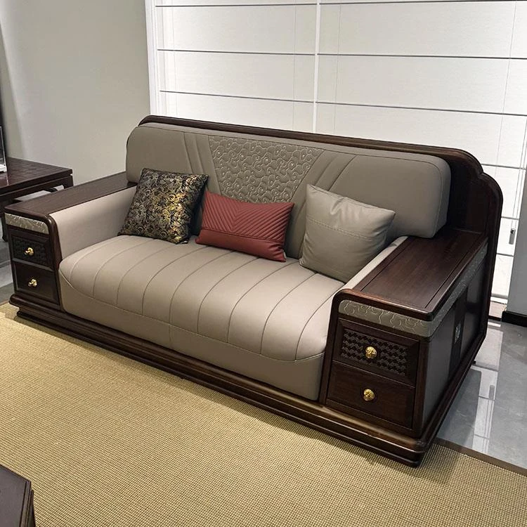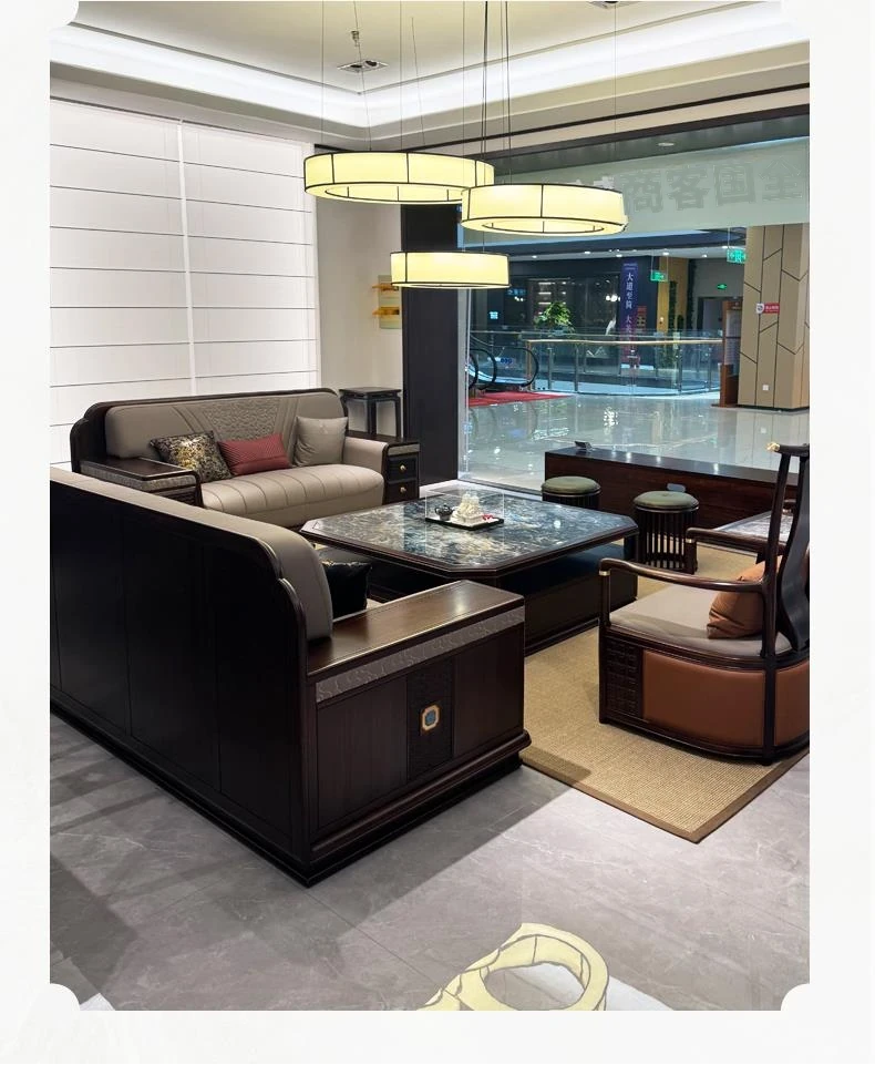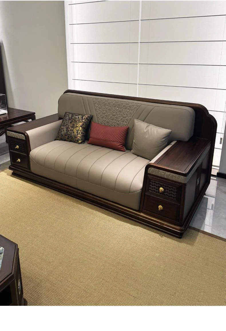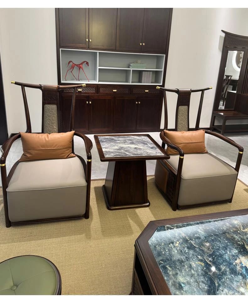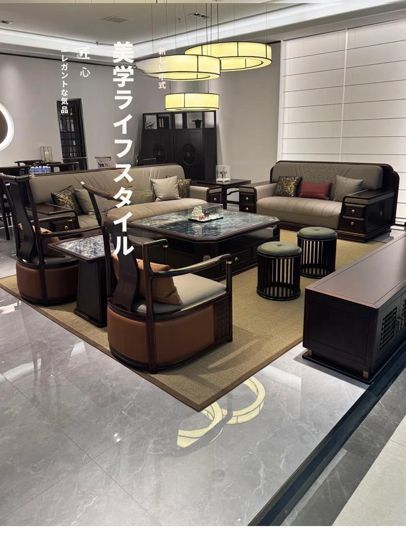 新中式ウーキン木材サイドテーブル - モダンな禅の魅力、シンプルな中国風デザイン。広々とした大邸宅に最適な高級本革製、別荘やホテルにもぴったりな家具。