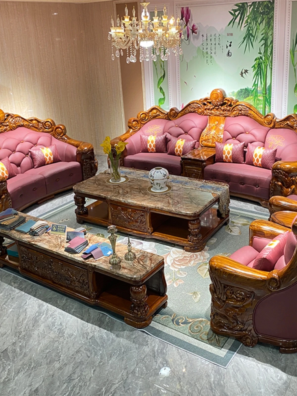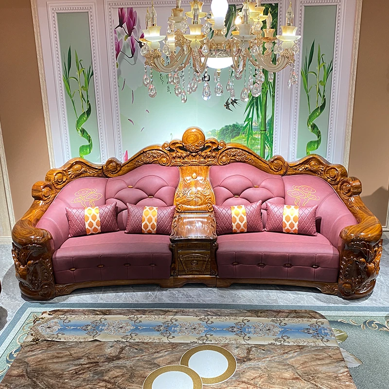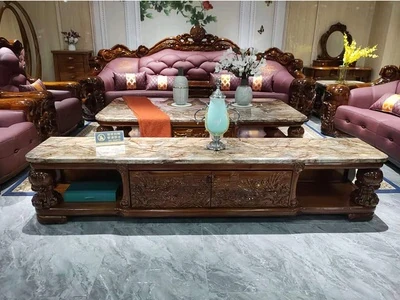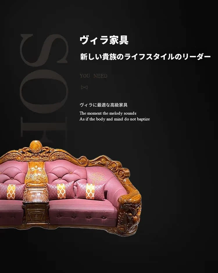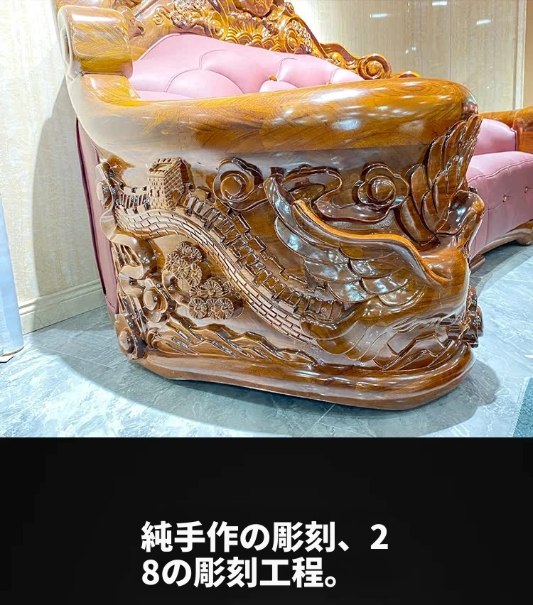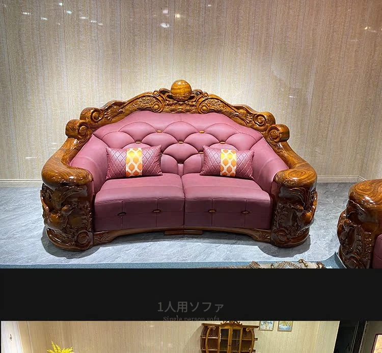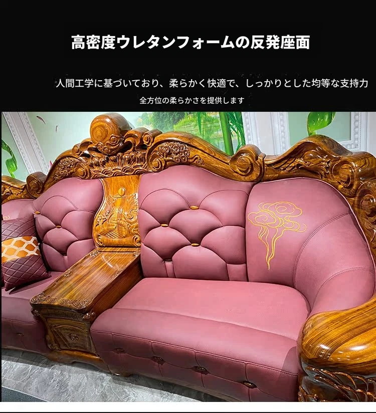 メイスライカデン 欧風ウッドブラックソファ 全実木彫刻 ヴィラスタイル 豪華ダイニングルームセット 1125 リビングルーム コレクション
