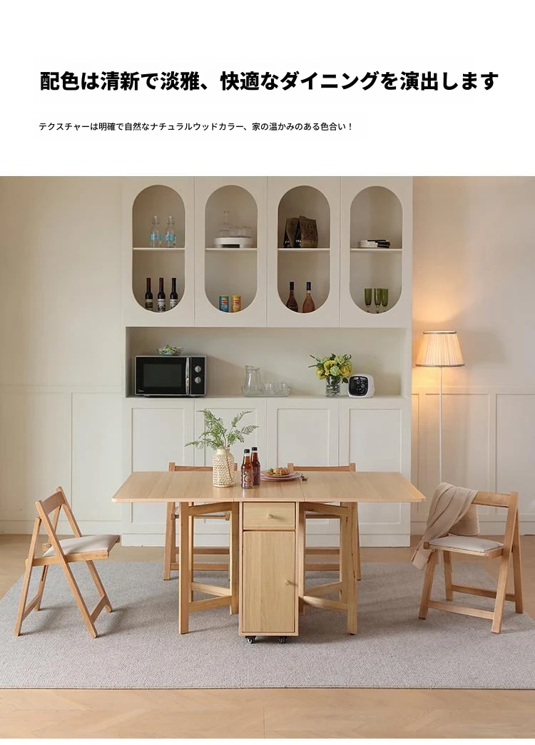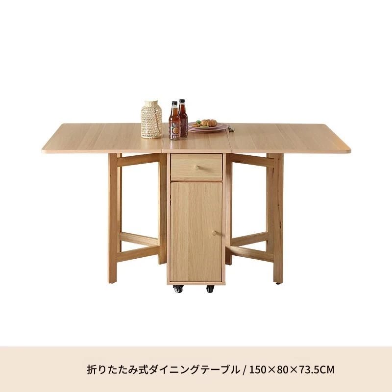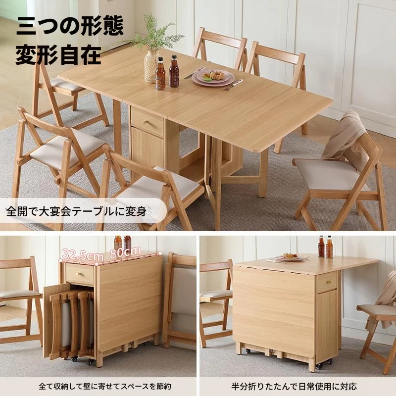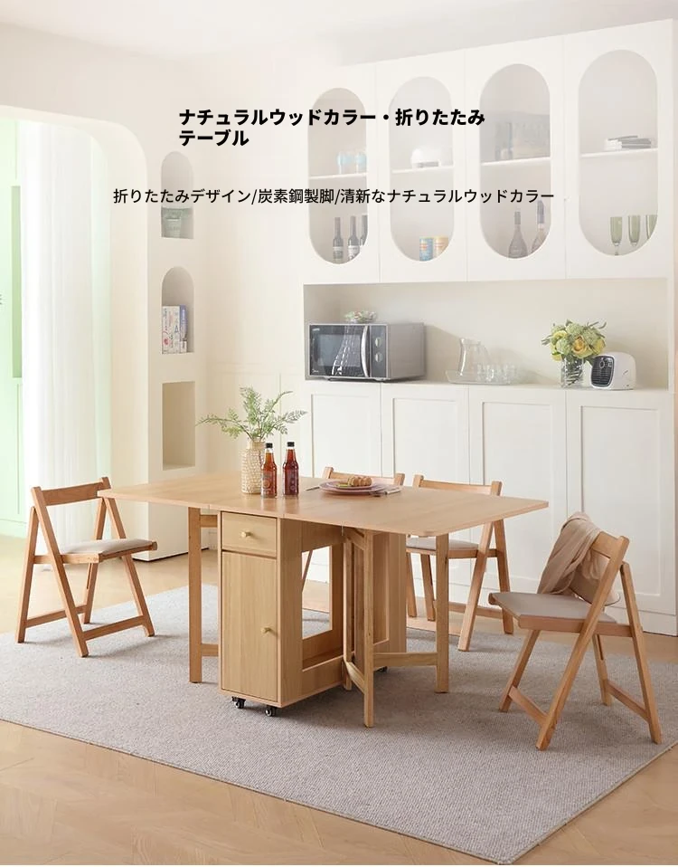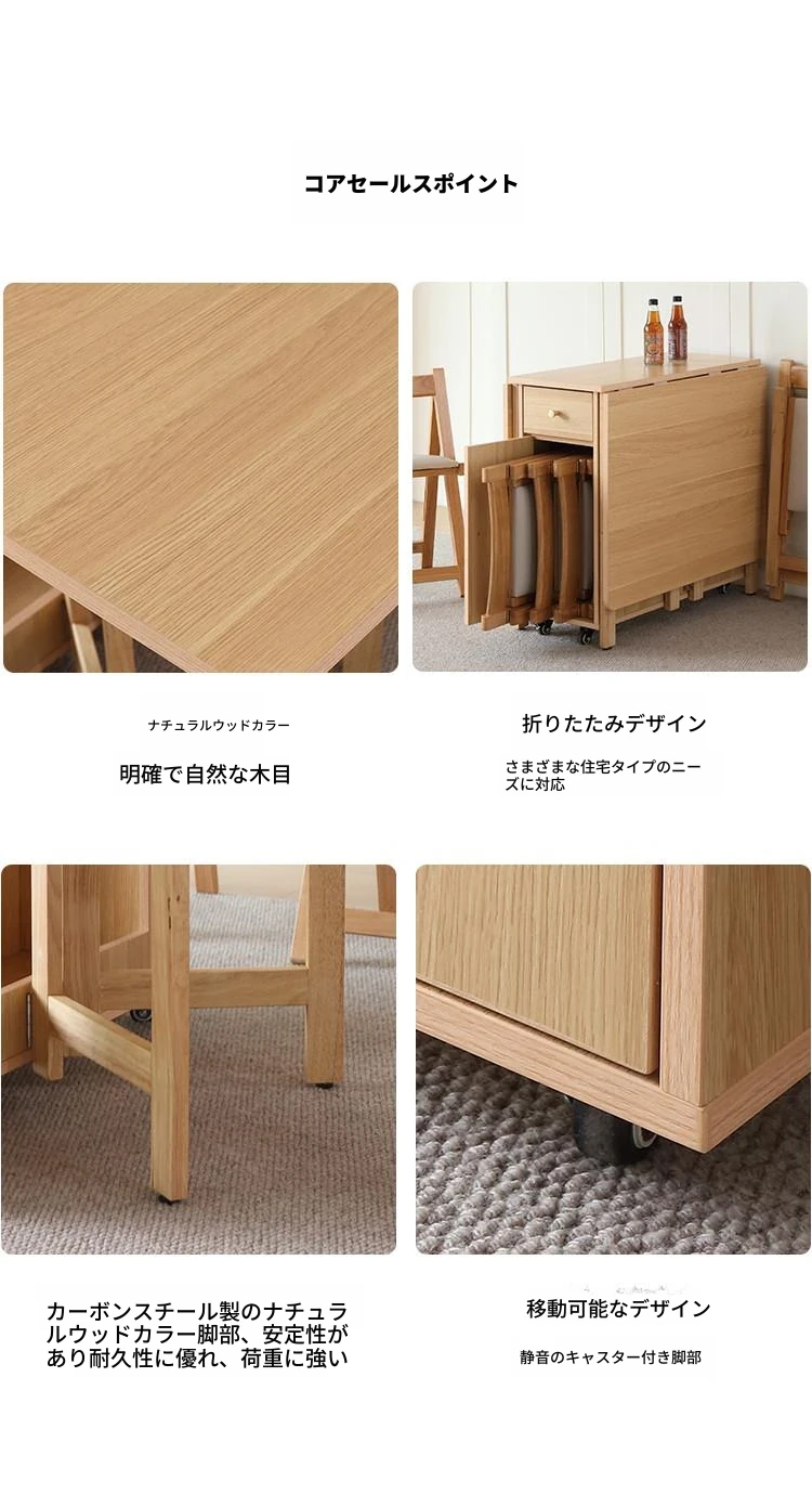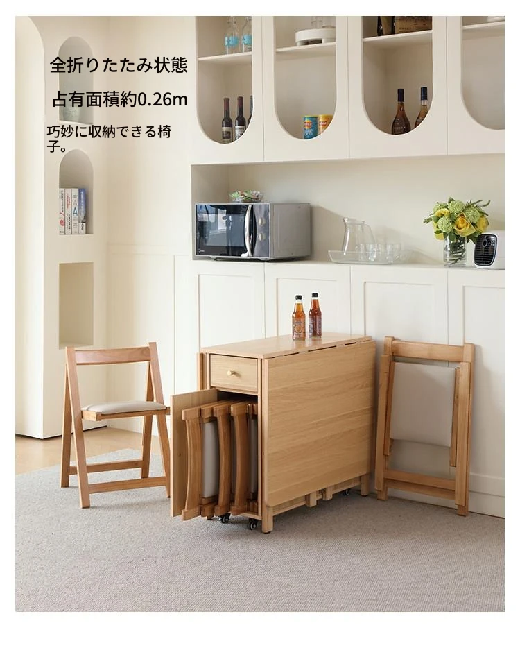無垢材の折りたたみダイニングテーブル - シンプルでモダンなデザイン、小スペースに最適!収納可能な二脚タイプで、移動もラクラク。原木色で温かみのある雰囲気を演出。おしゃれな食卓を手に入れよう!