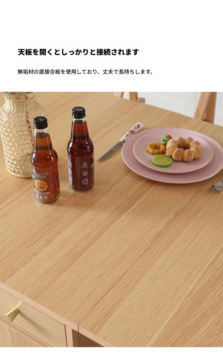 原木色ダイニングテーブル(両脚支え・組み立て不要)