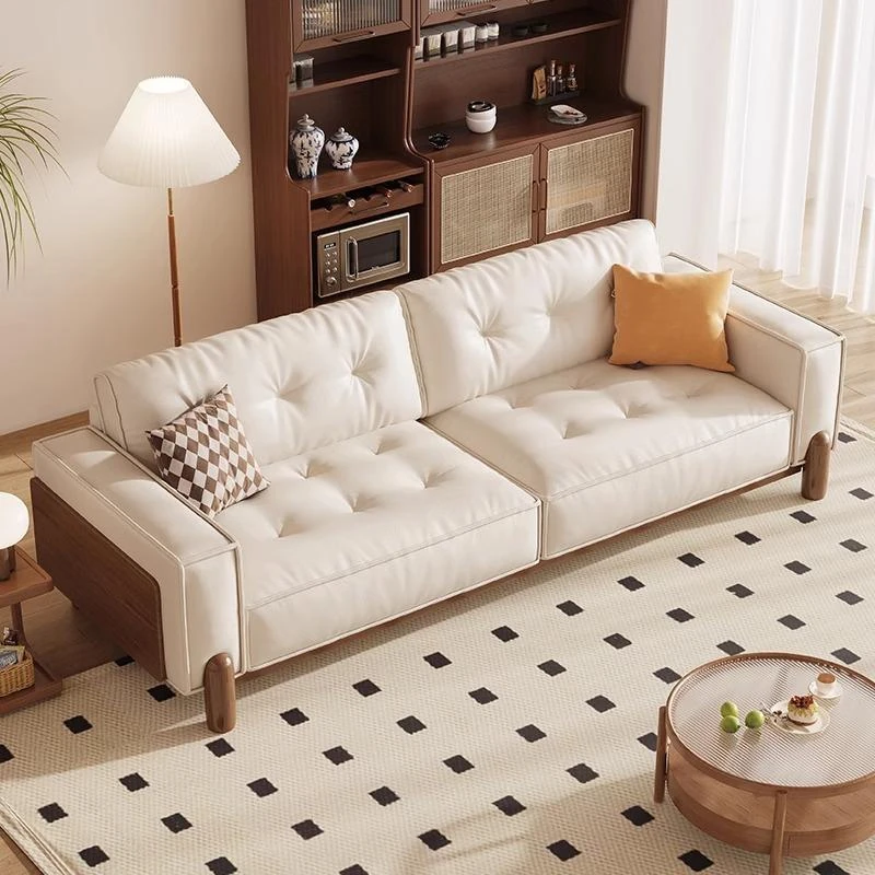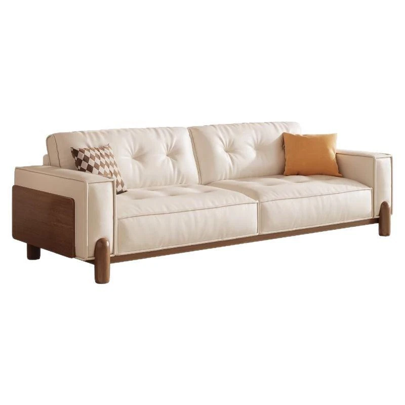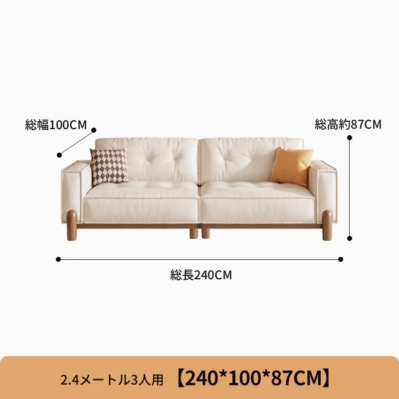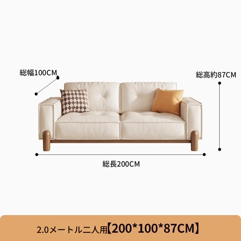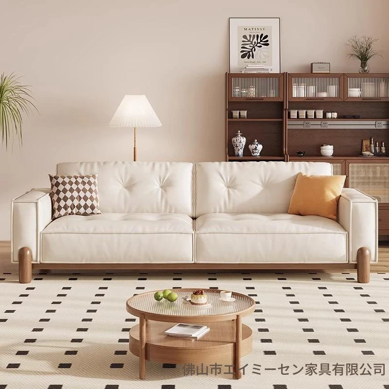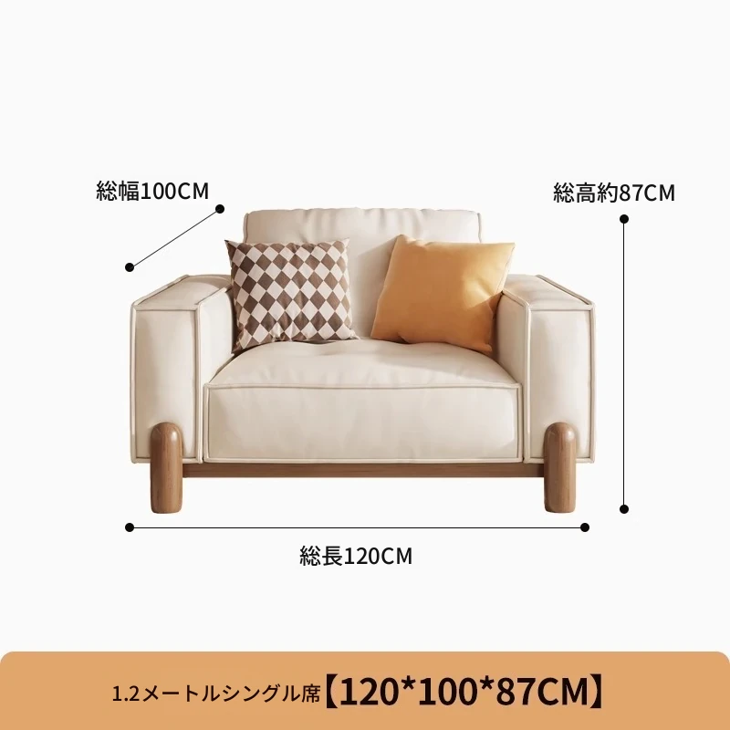 新中式デザインの無垢材ソファ - 小型リビングに最適!クリーム風の豆腐ブロックソファ、北欧スタイルの天然木ファブリックで、居心地抜群の空間を演出します。お部屋を優雅に彩る一品!