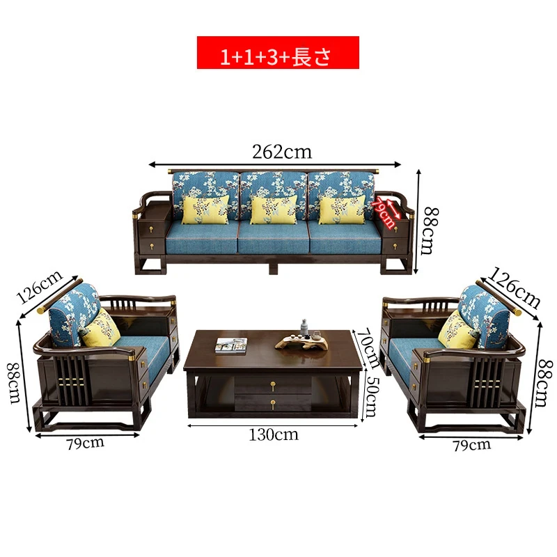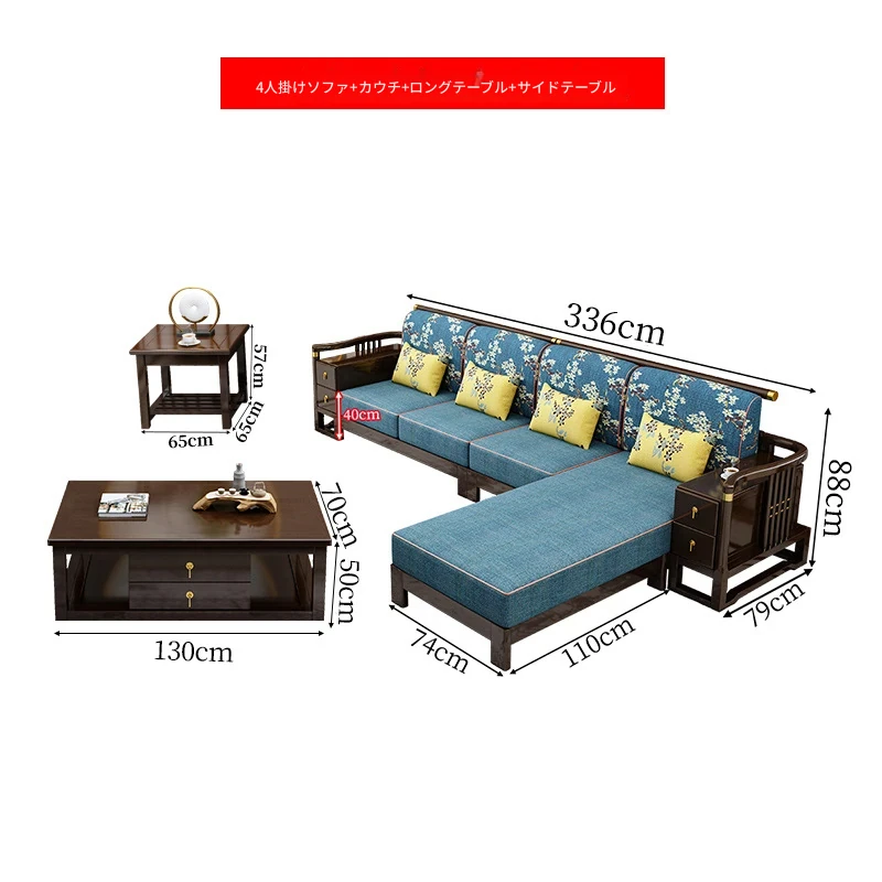 4人掛け+カウチ+ローテーブル+サイドテーブル