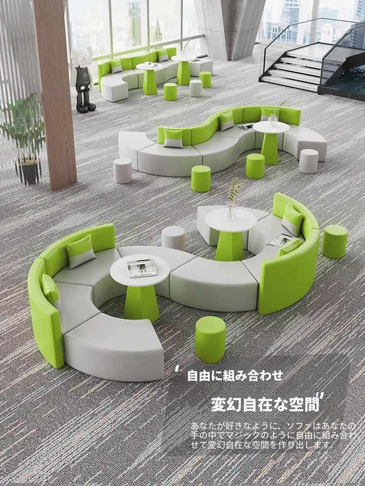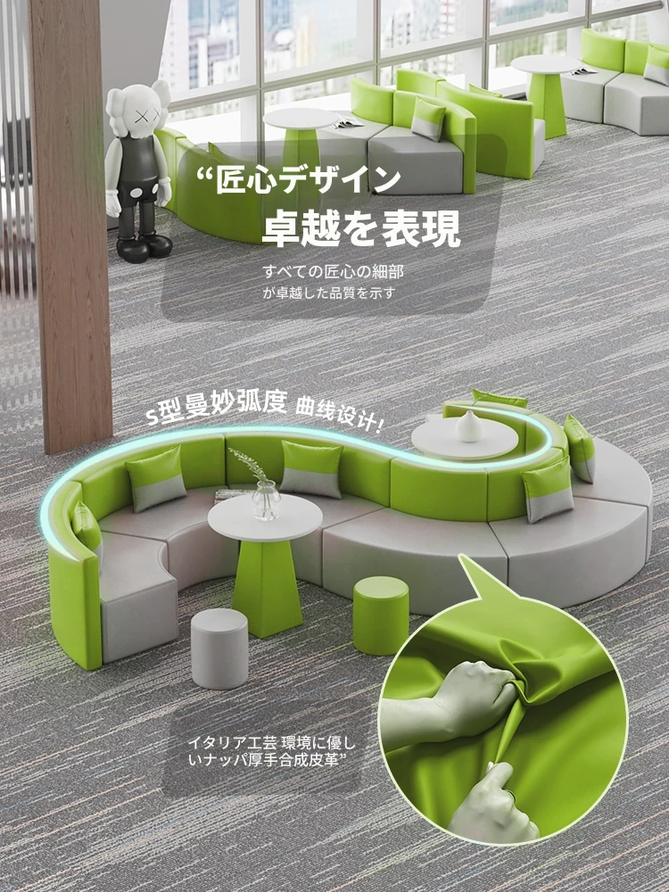 北欧スタイルのS字型クリエイティブソファセット:モダンな接客スペースに最適なリラックスソファとコーヒーテーブルのコンビネーション!オフィスや休憩エリアにぴったりで、洗練されたデザインが魅力です。