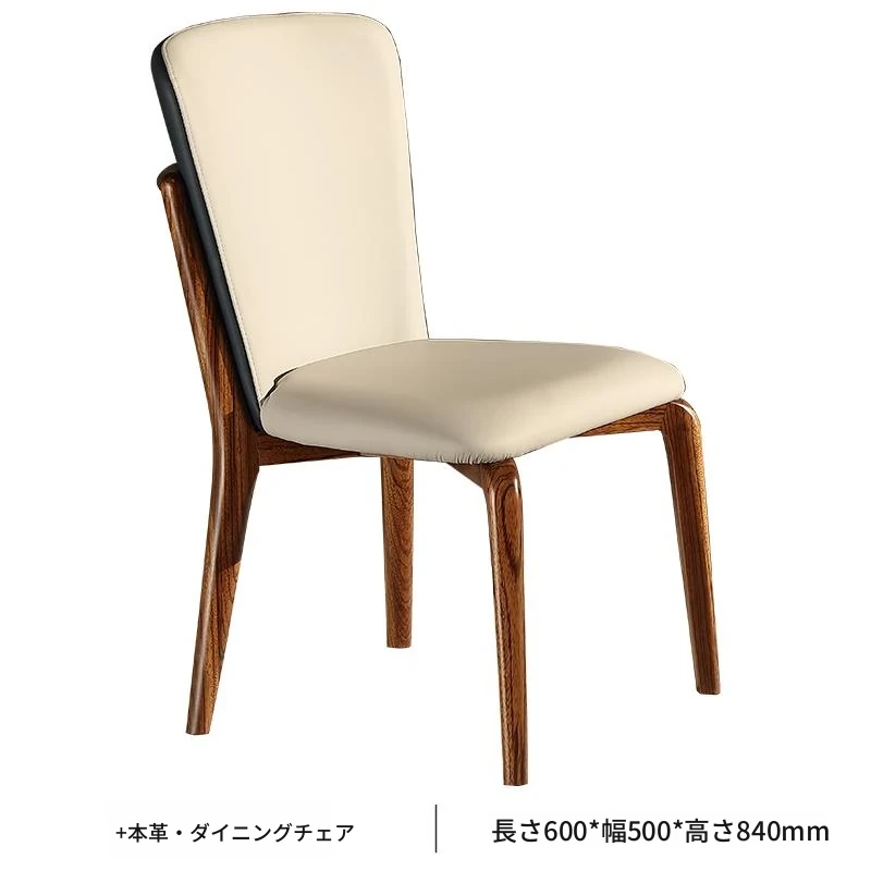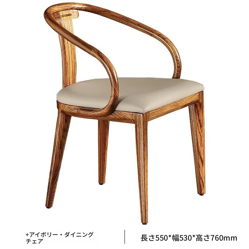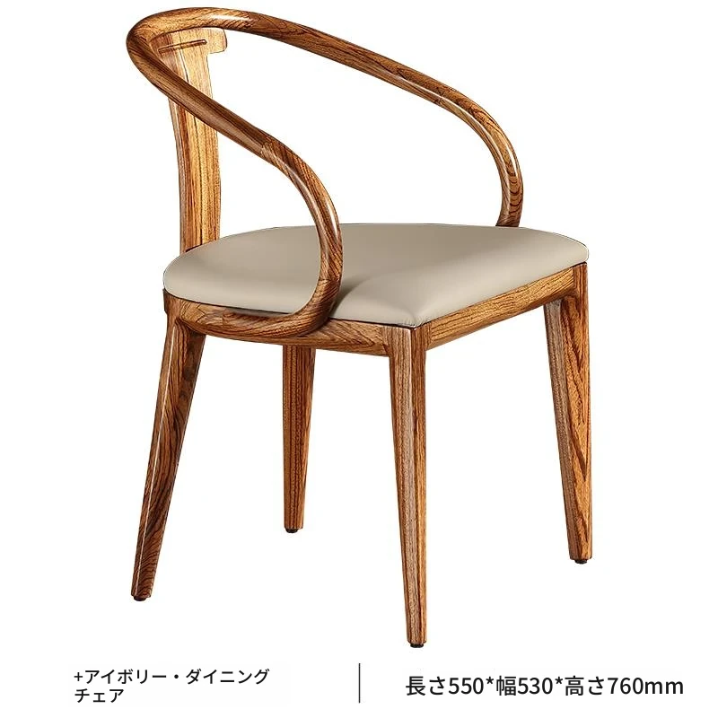 アフリカ・カメルーン・ウキン材クリーム色本革ダイニングチェア
