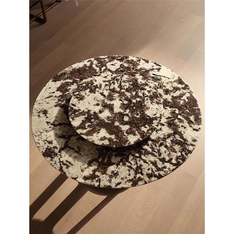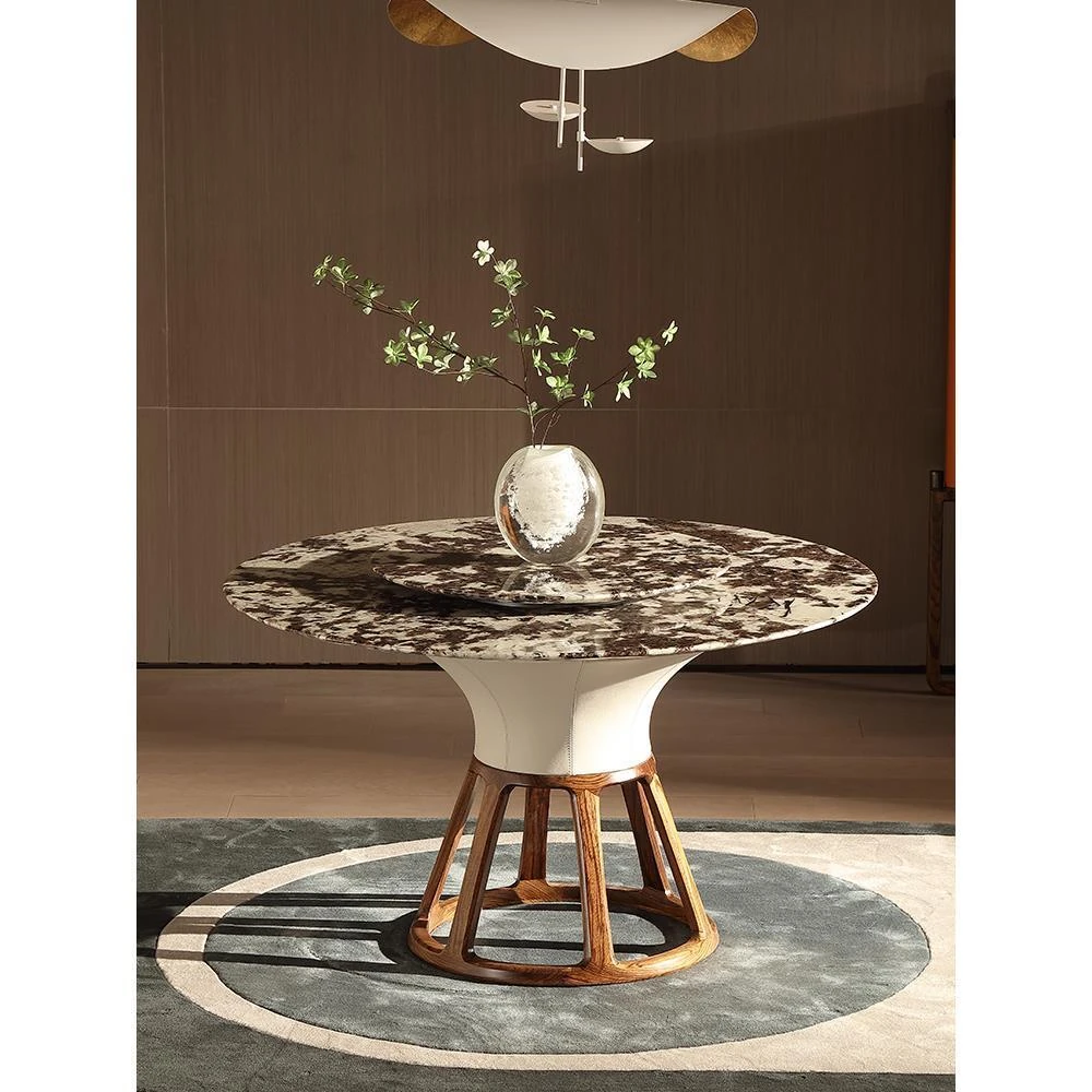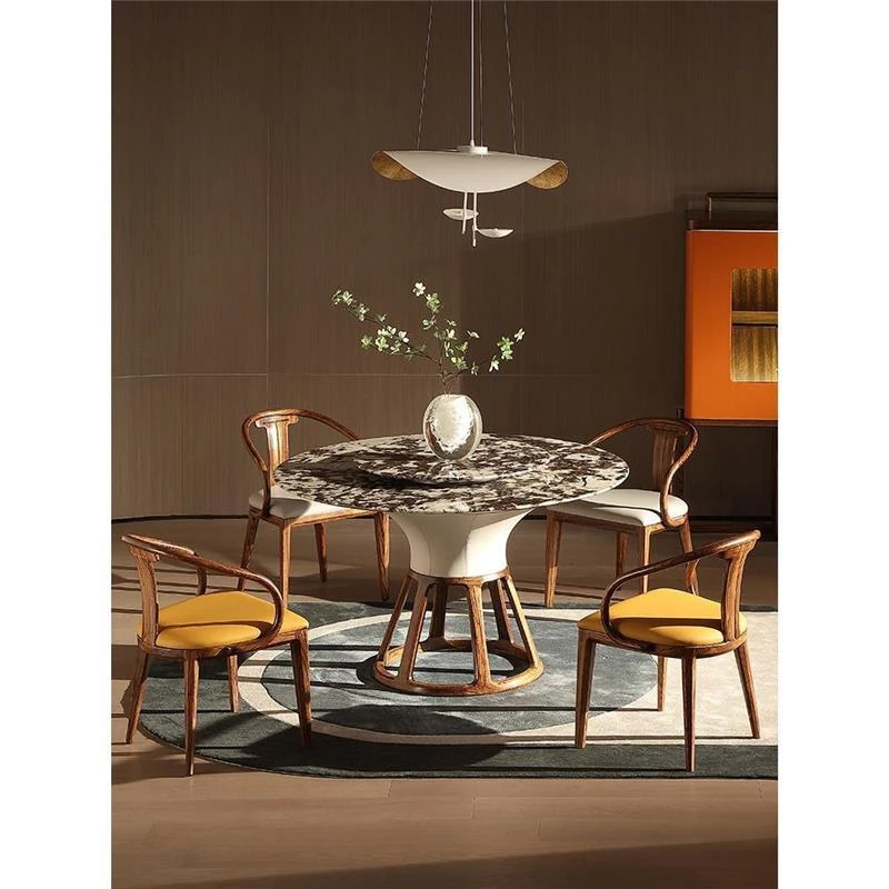 北欧スタイルの天然大理石とウッドのラウンドダイニングテーブルセット - 小スペースにも最適な高級感あふれるデザイン!あなたの家に洗練された雰囲気をプラスします。