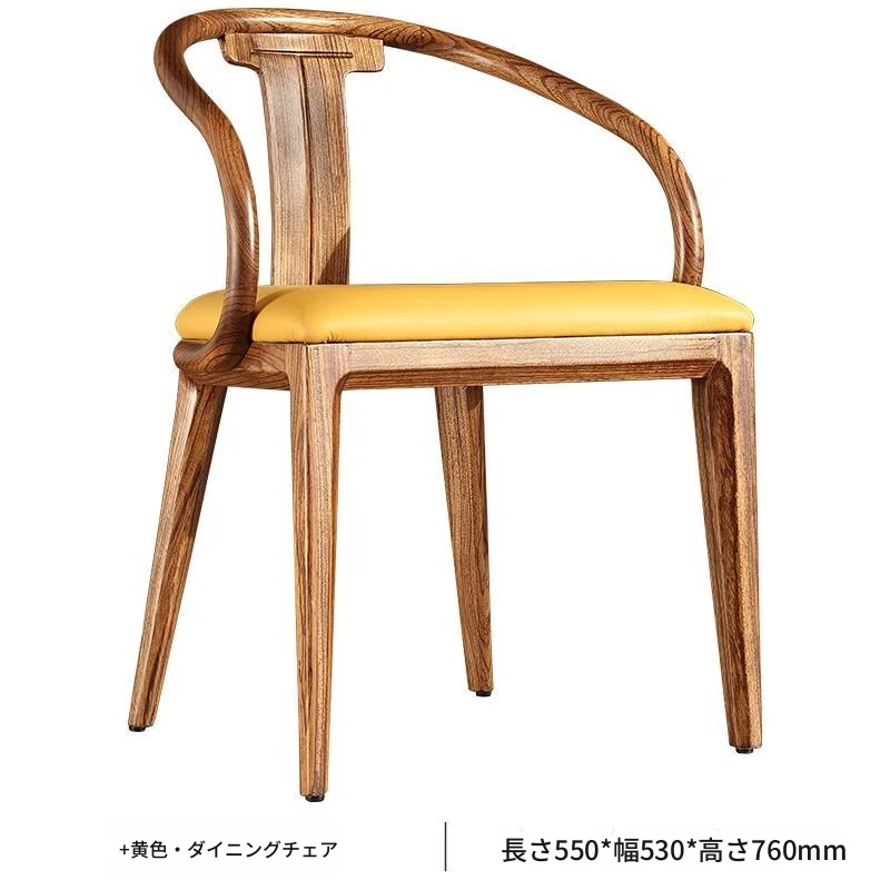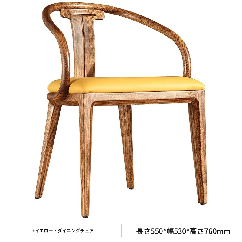 アフリカ・カメルーン・ウキン材黄色本革ダイニングチェア