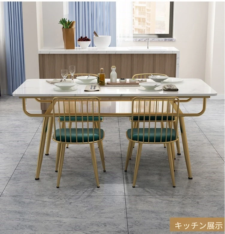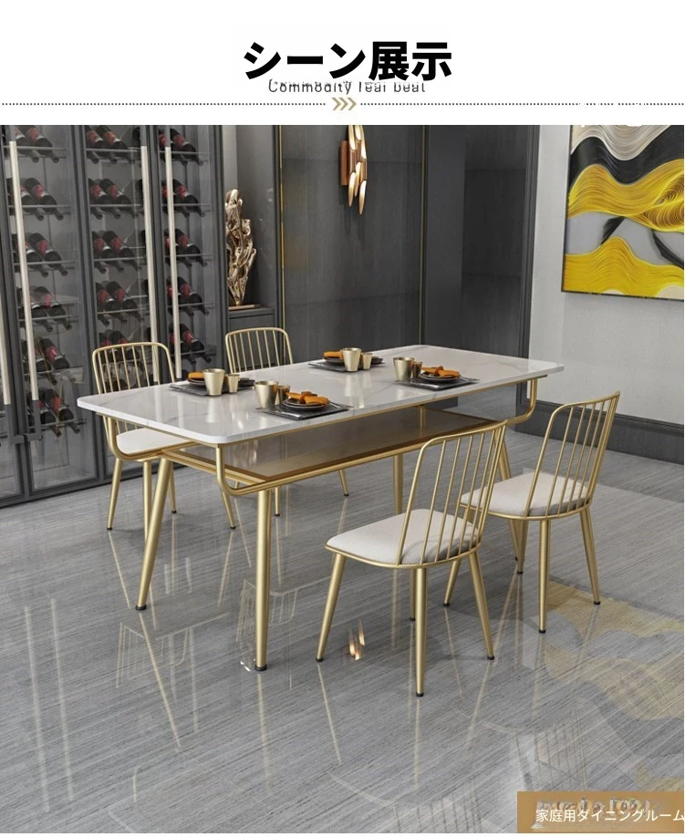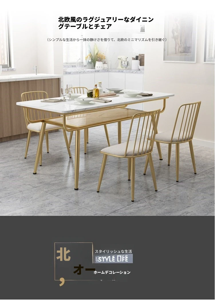 北欧スタイルの2段長方形ダイニングテーブル - スタイリッシュな岩板製、小型住宅に最適!収納付きでおしゃれなゴールドのデザイン、1.2mサイズで食事を楽しむ新しいスタイルを提供します。