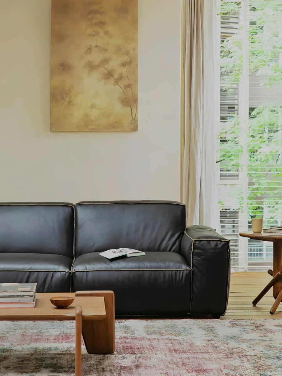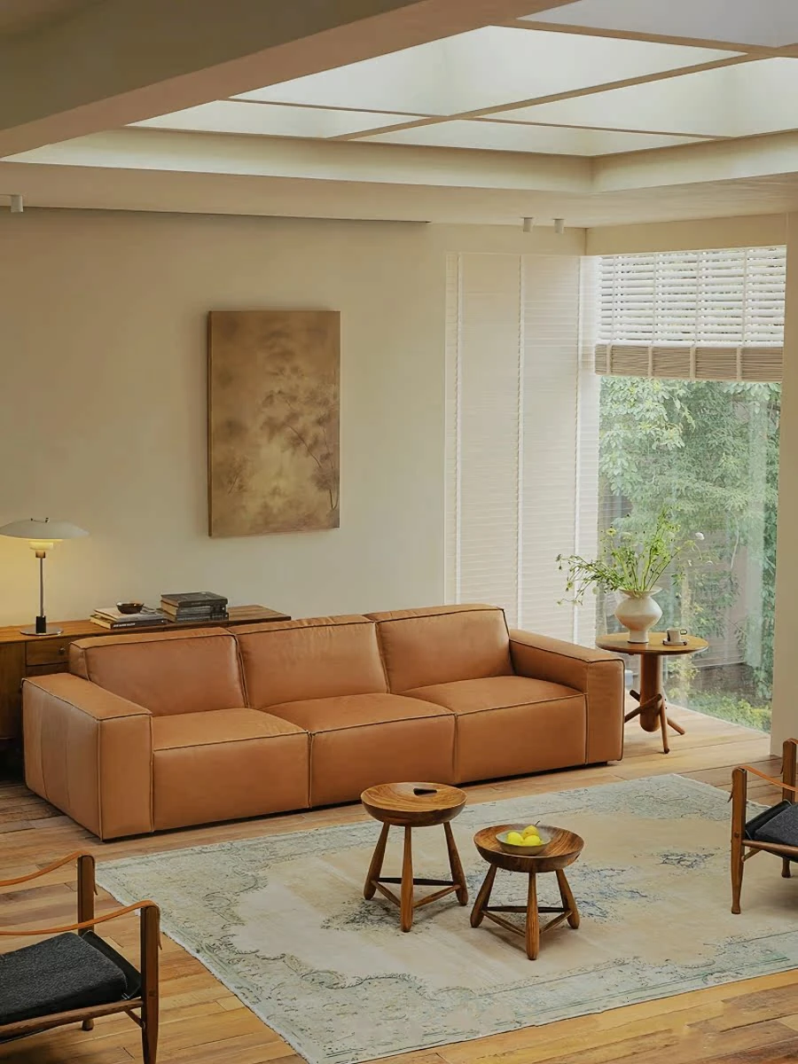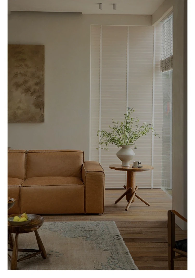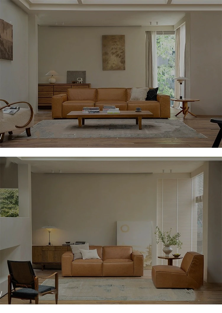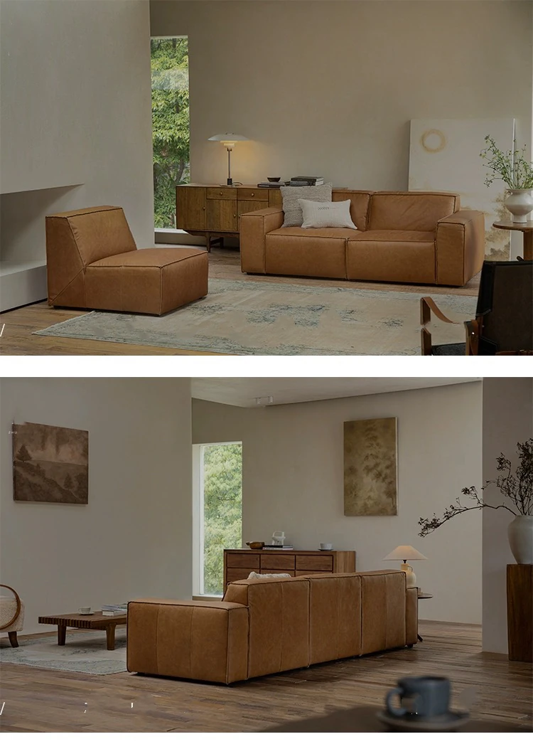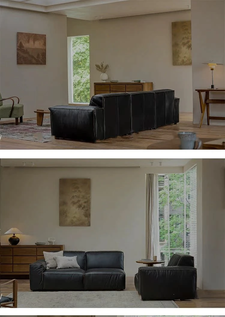北欧モダンシンプル本革トップグレイン牛皮ソファ 小型リビング向けストレートモジュールダウンソファ ヴィンテージスタイル