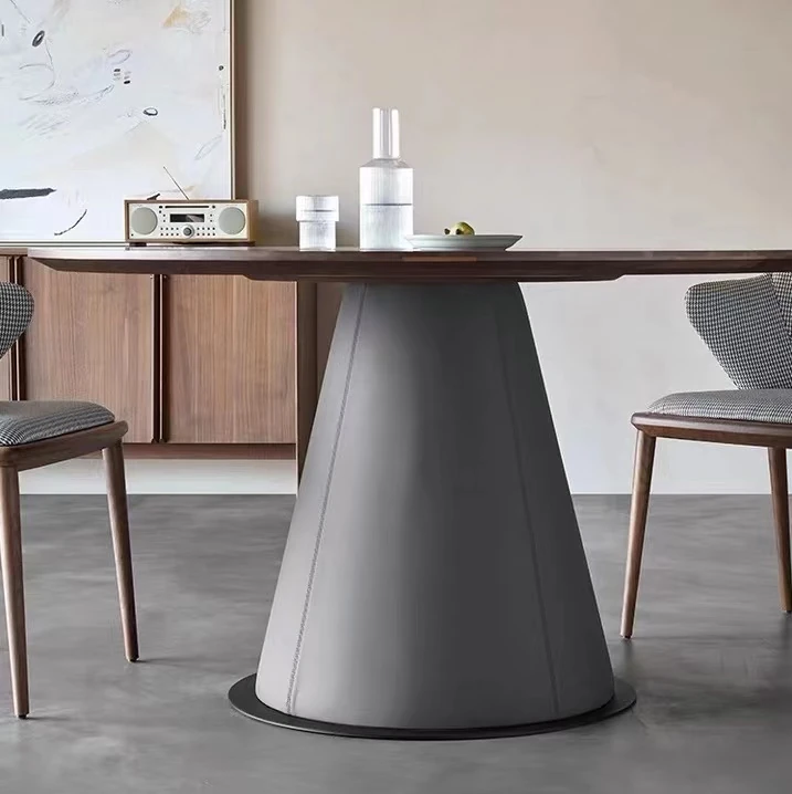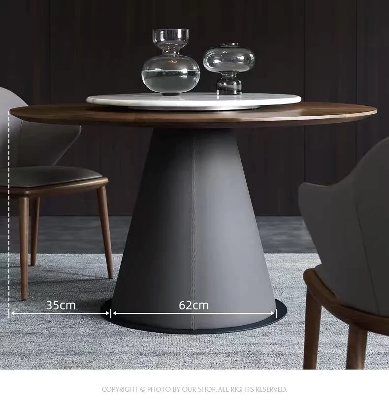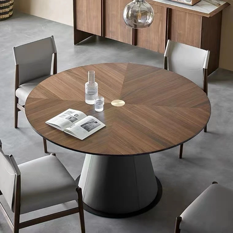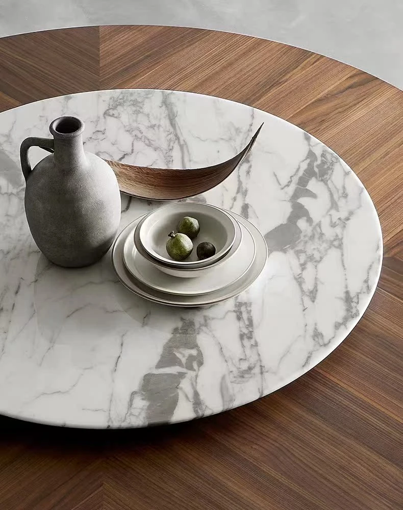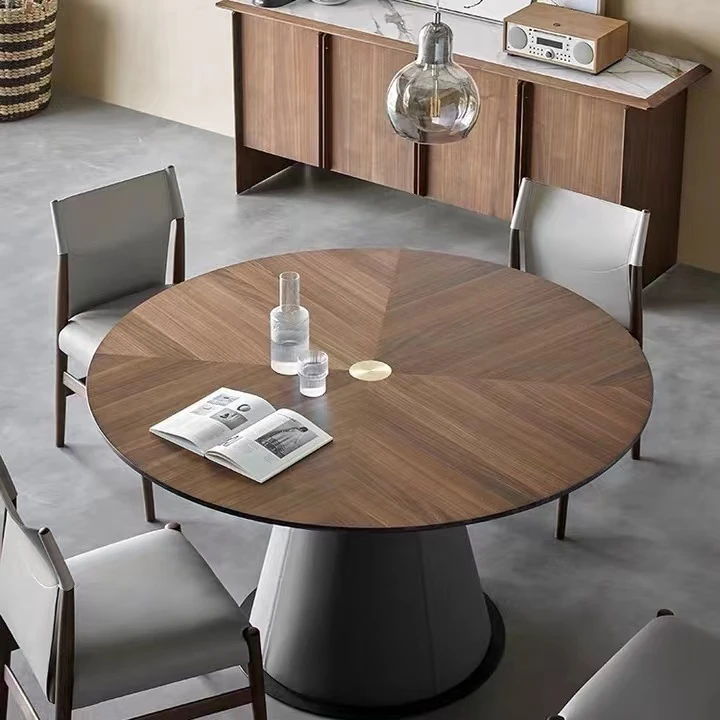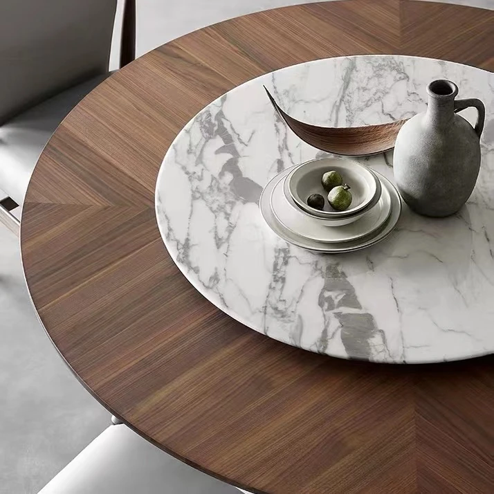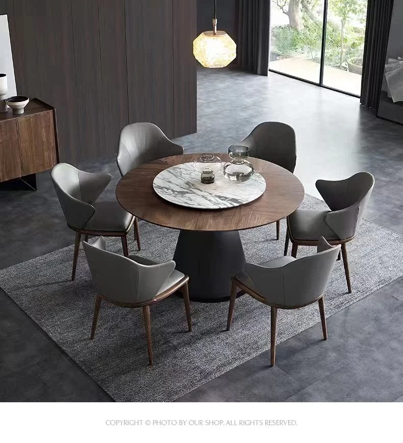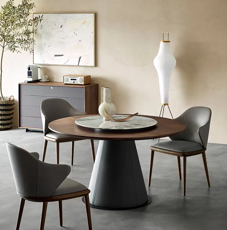 北欧モダン ミニマリスト リビング用 小型黒胡桃色 丸テーブル 大理石 天然木製 家庭用 丸型ダイニングテーブル&チェアセット