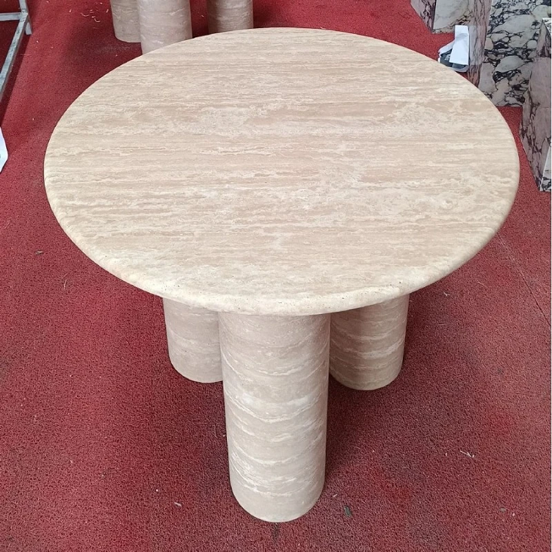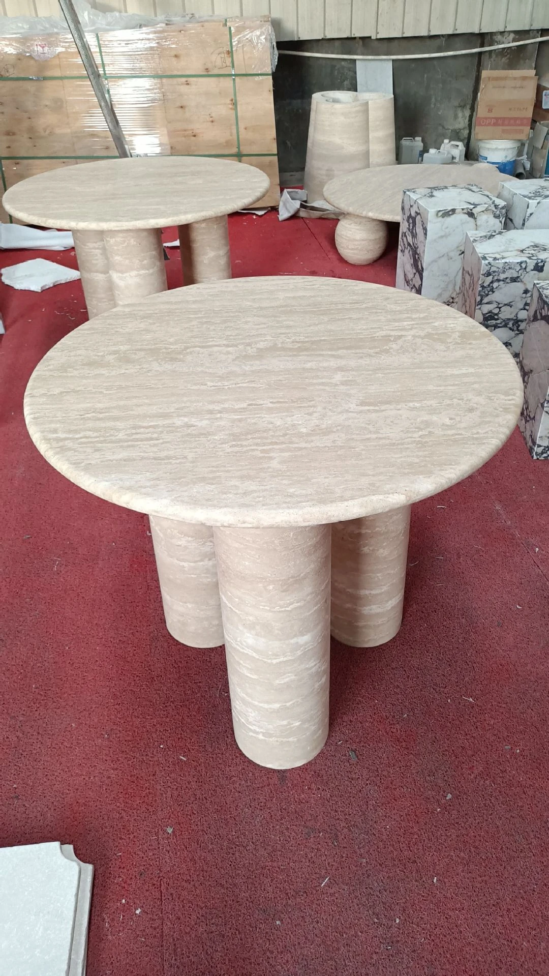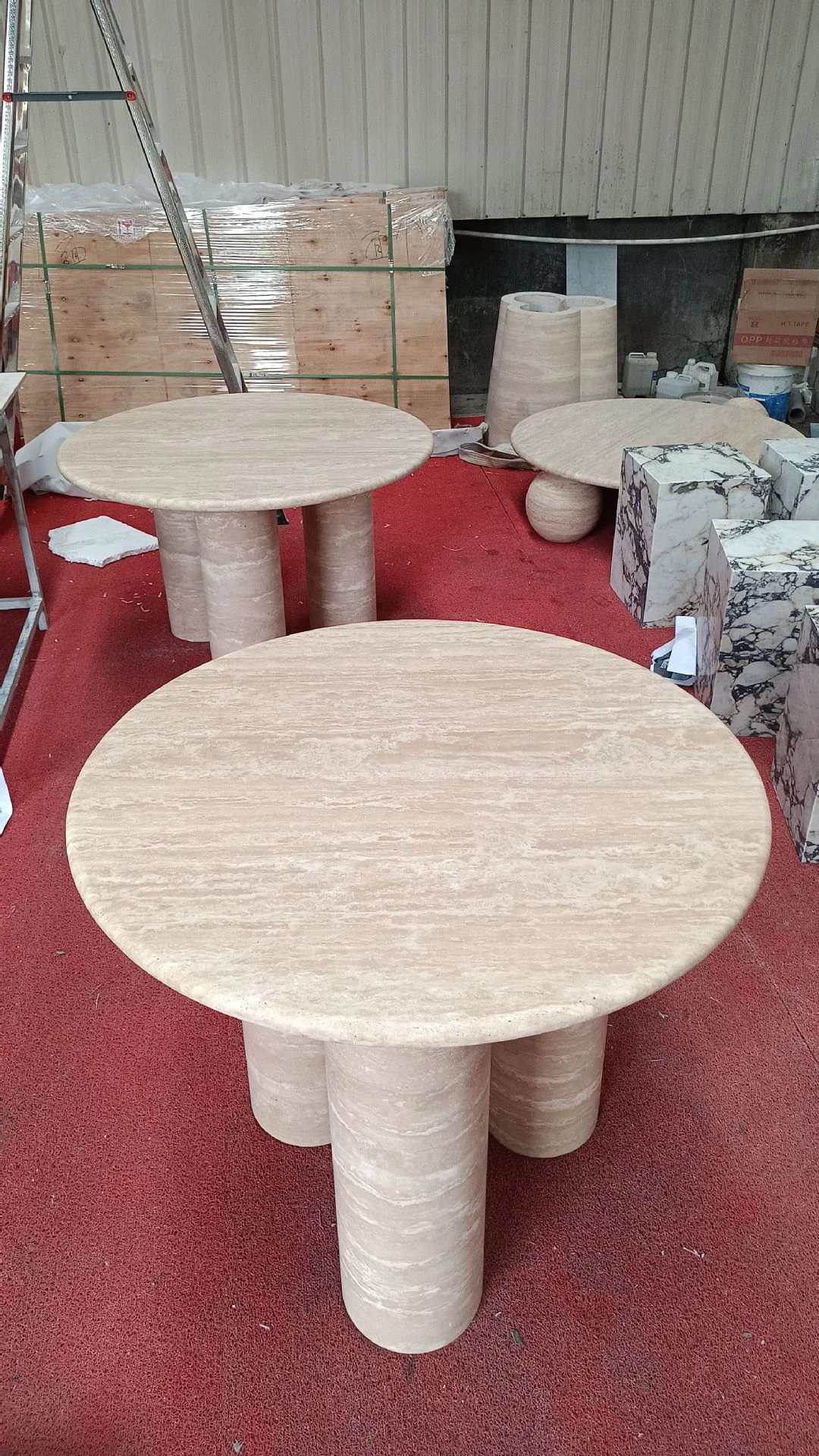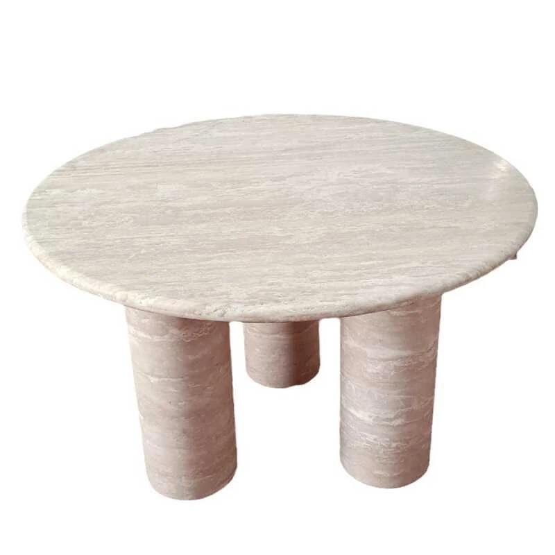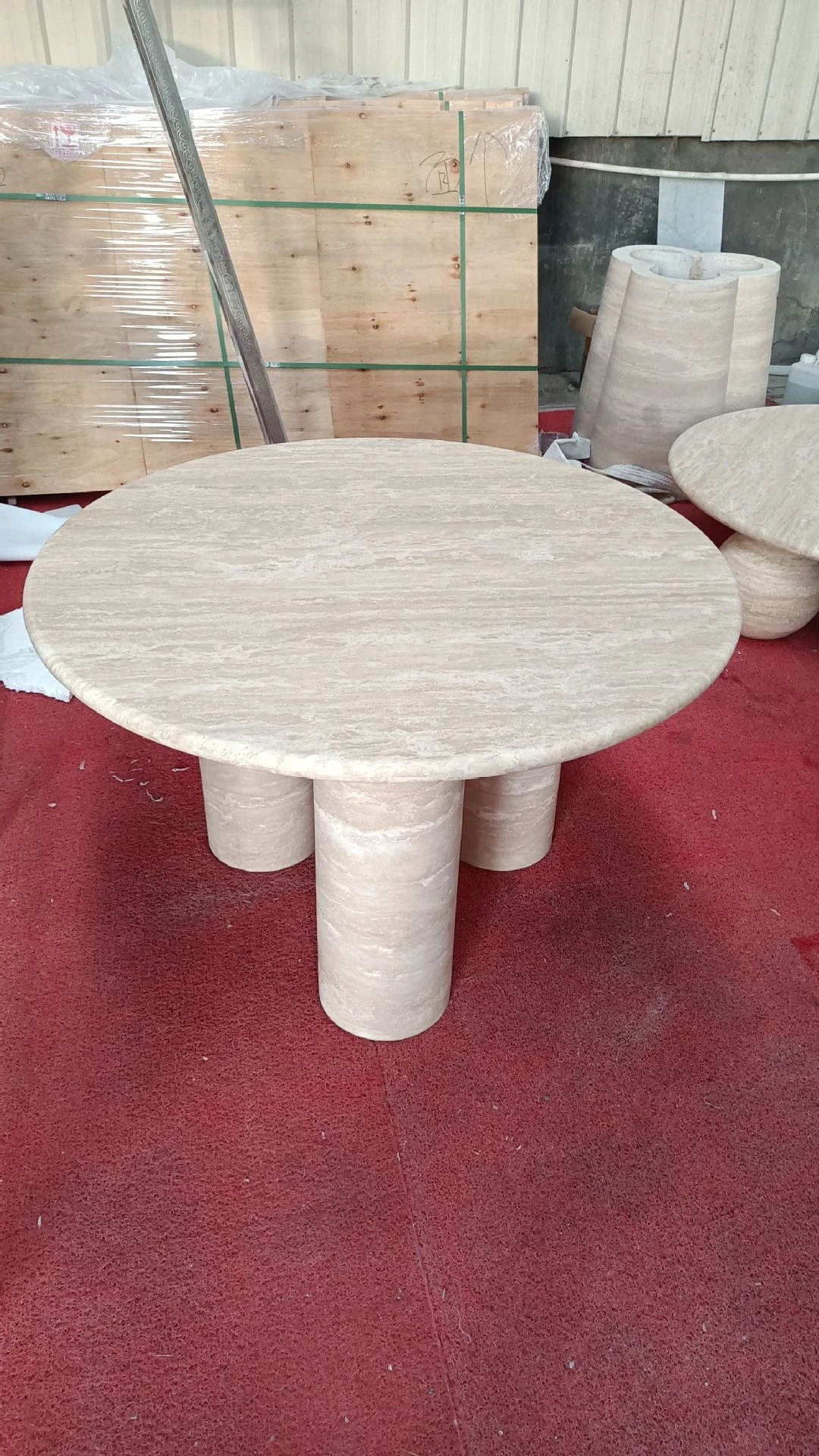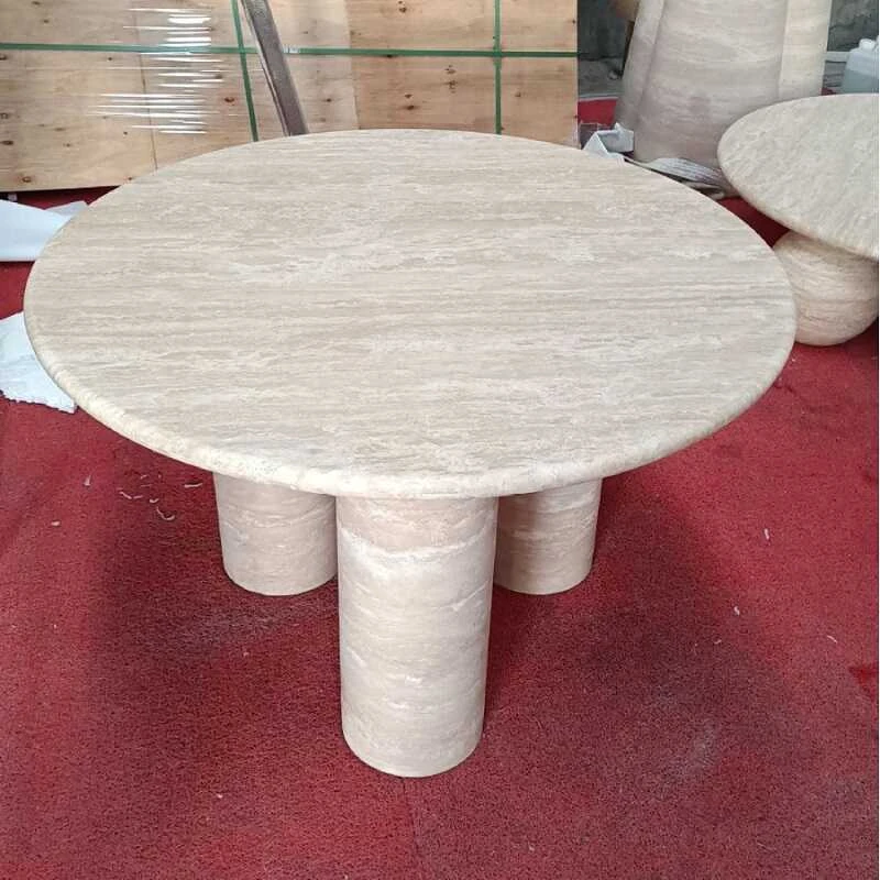 北欧風天然洞石ラウンドダイニングテーブル - 大理石のクリエイティブで軽やかなモダンデザイン!シンプルで洗練されたリビングルームの家具。あなたの空間を特別に演出します!