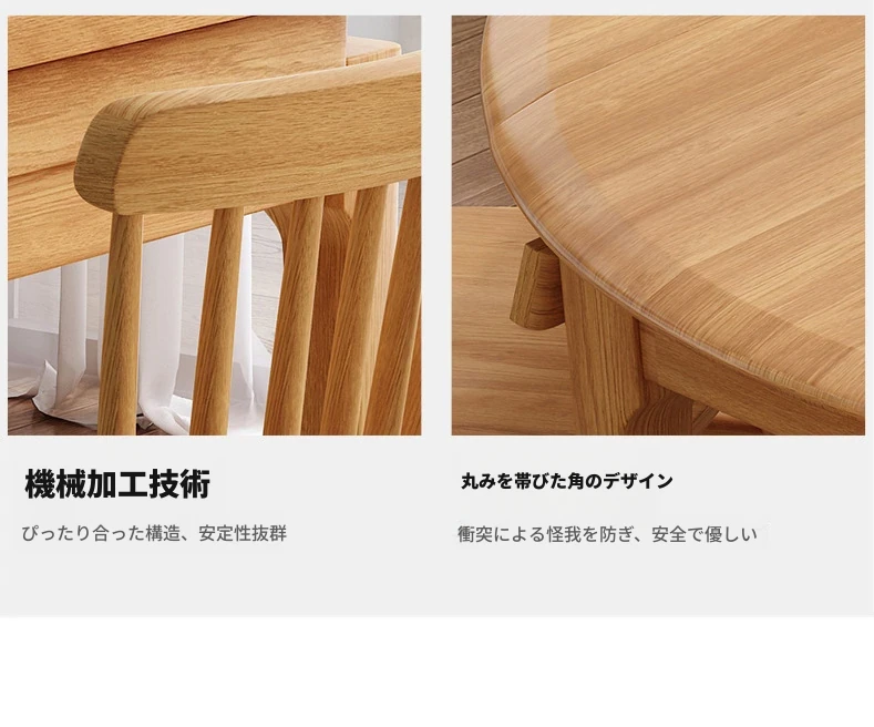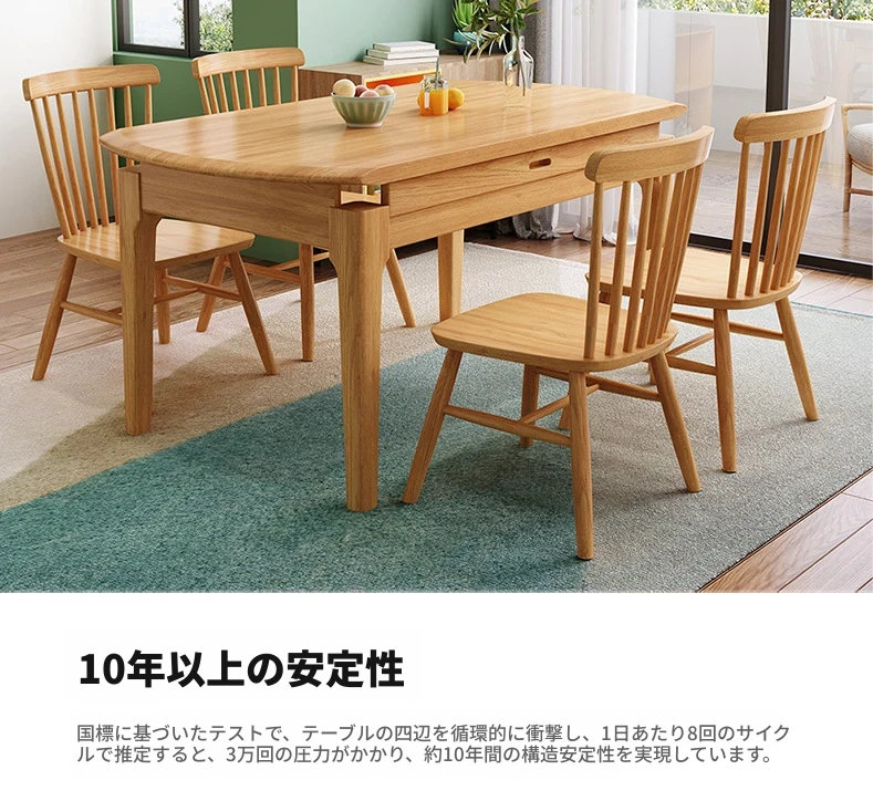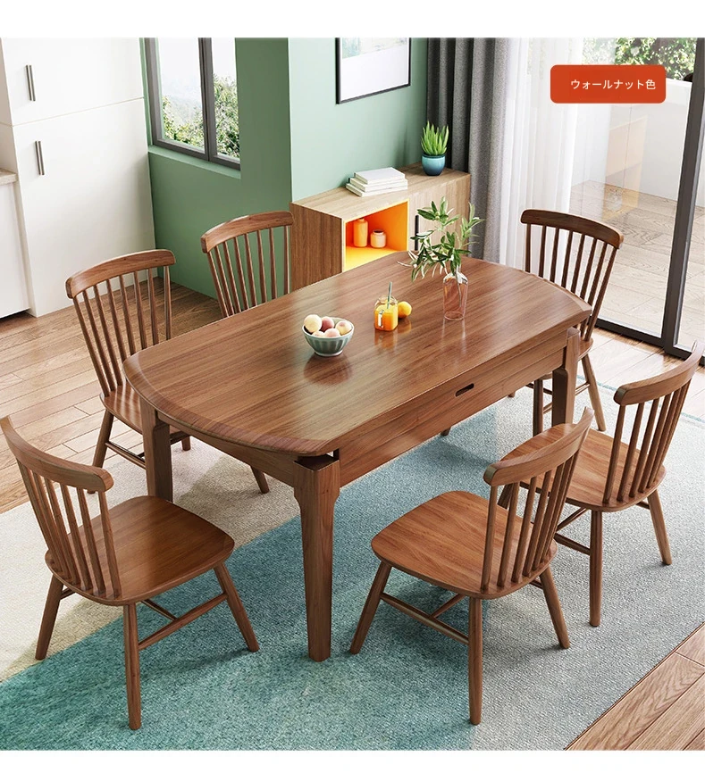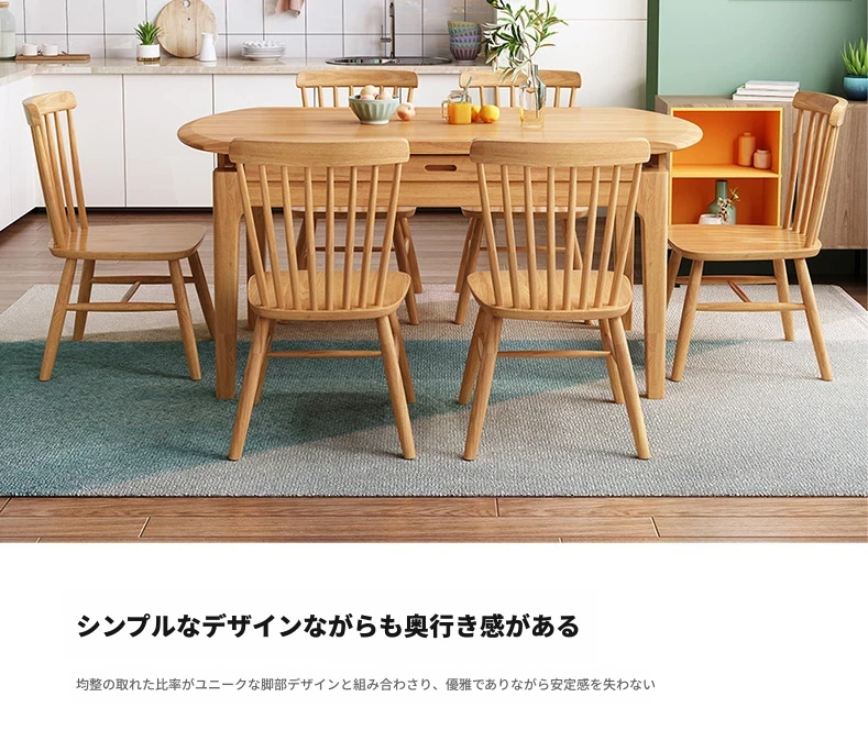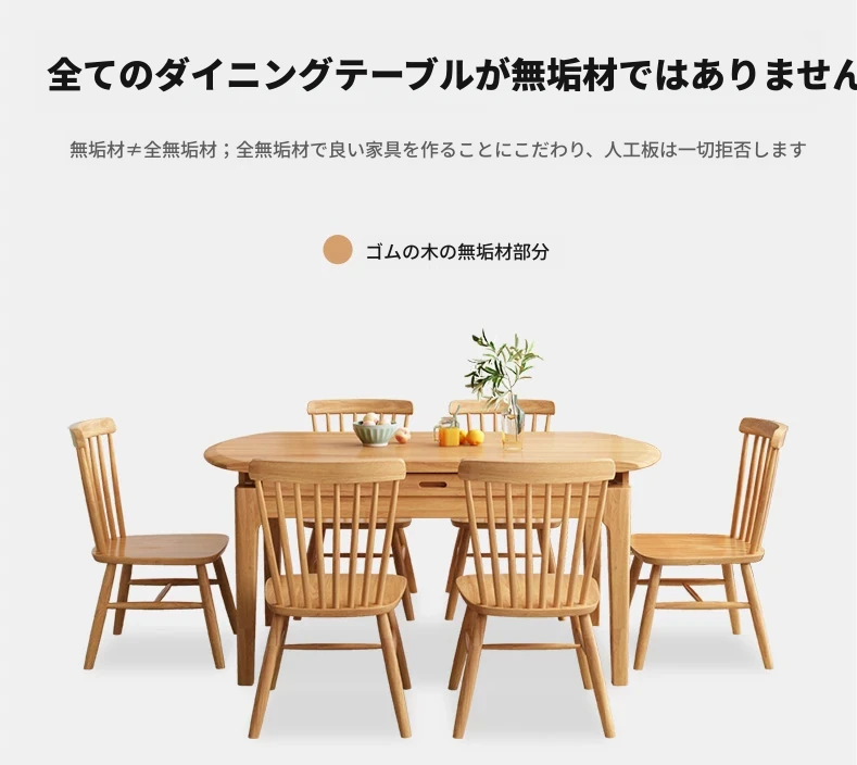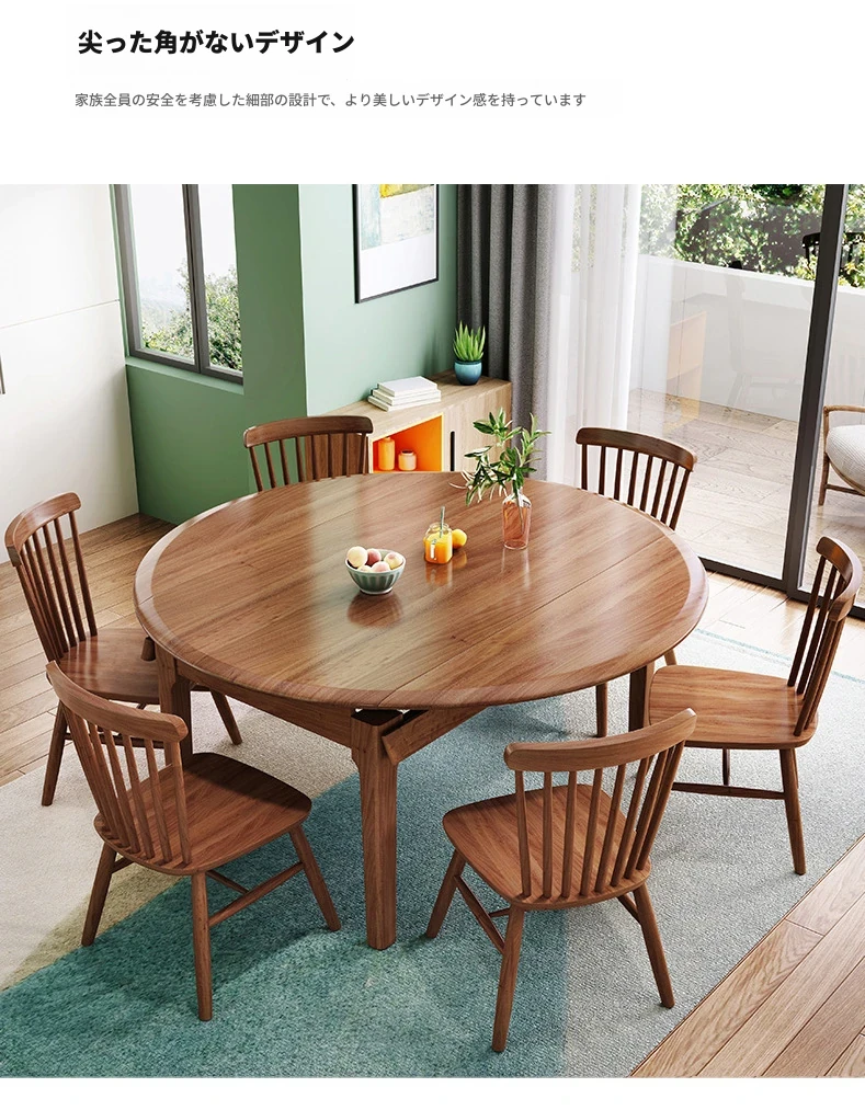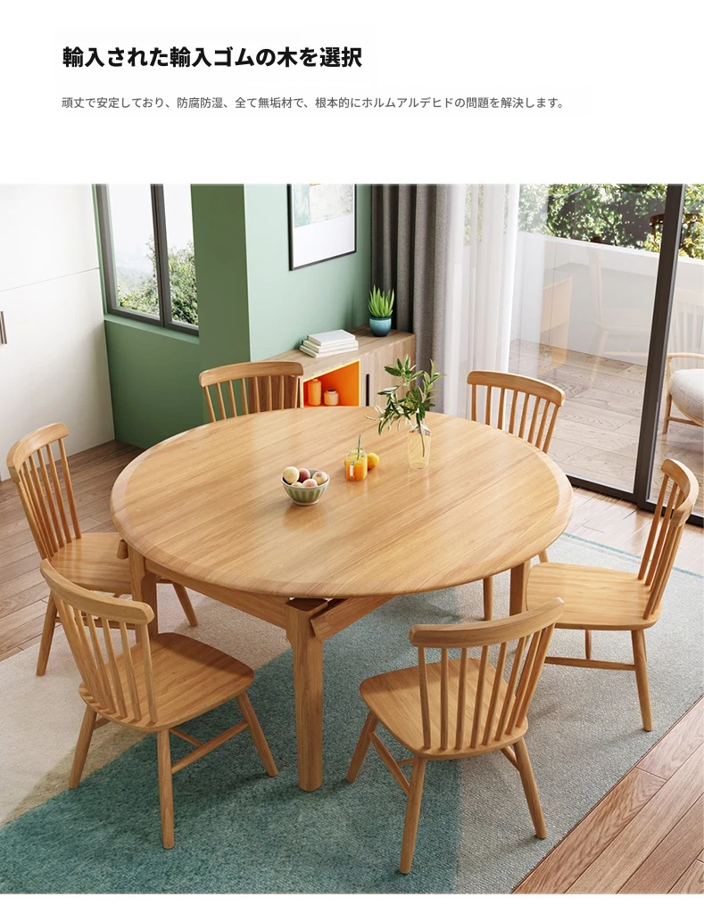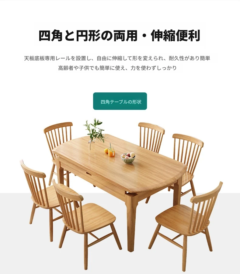 北欧風の天然木製エクステンブルダイニングテーブル&チェアセット - 折りたたみ可能なオーク材の食卓、現代的でシンプルなデザインの家庭用ダイニング家具!
