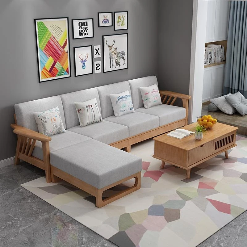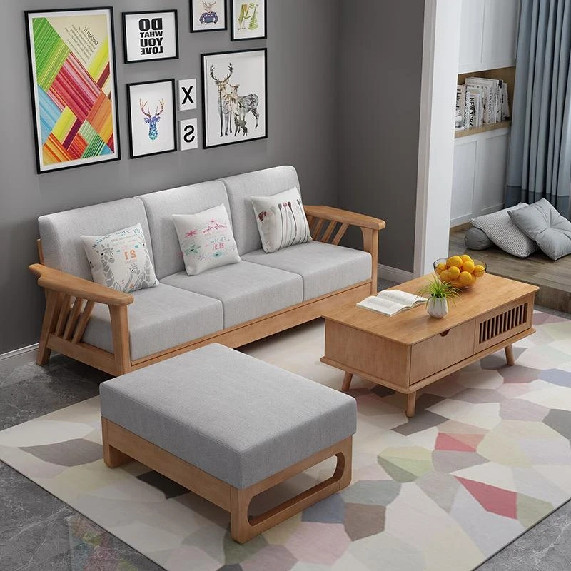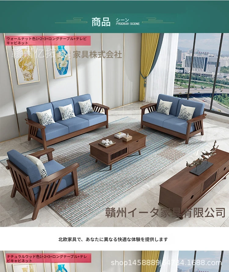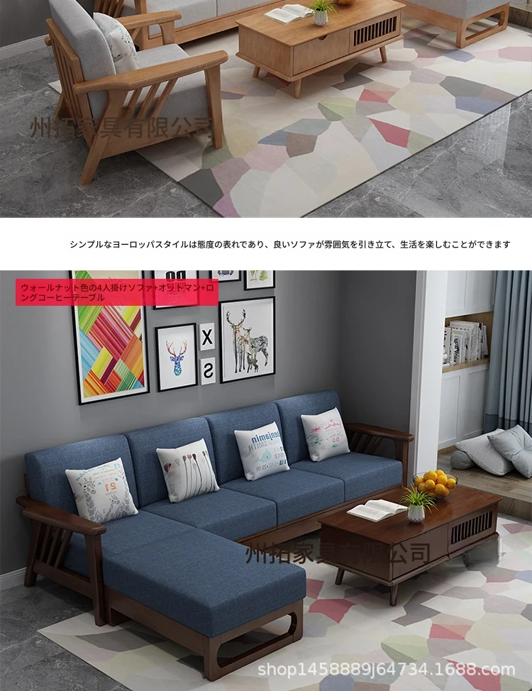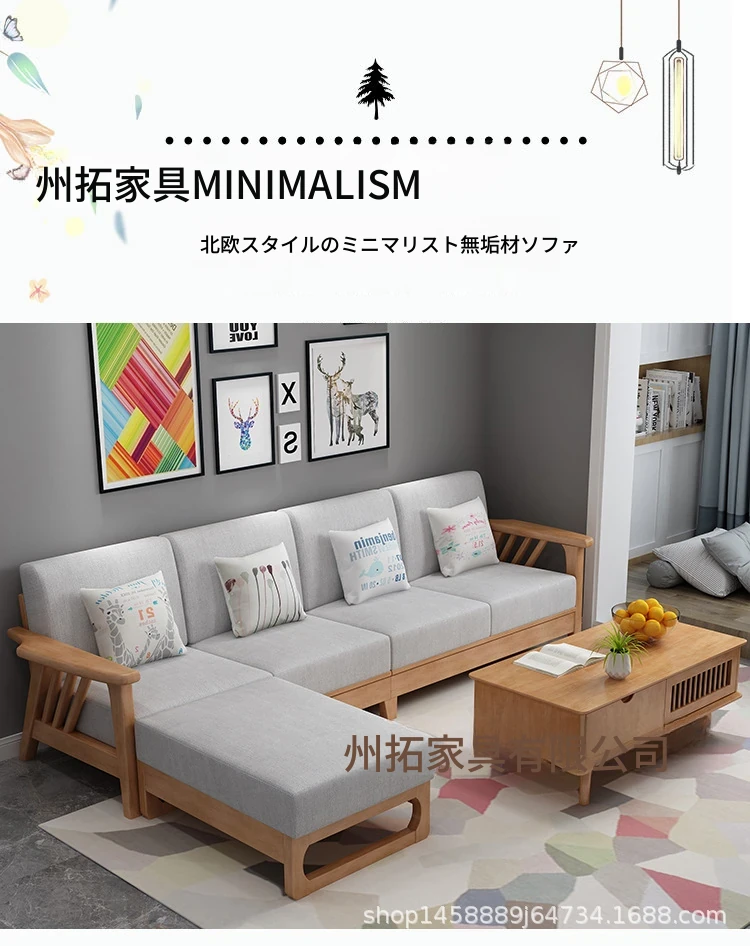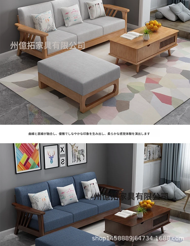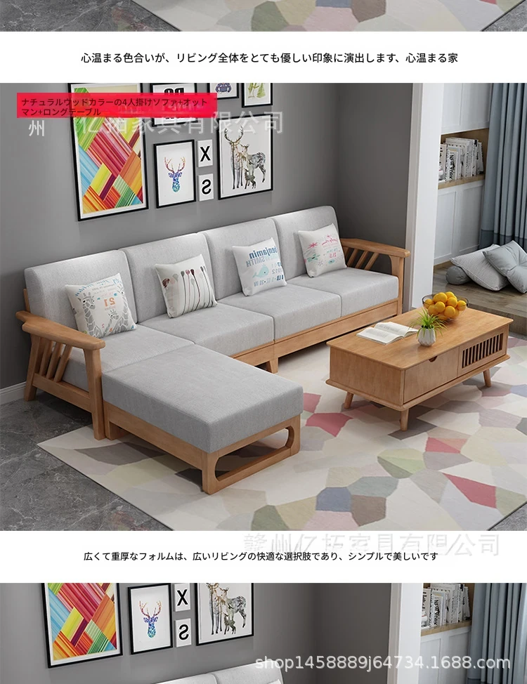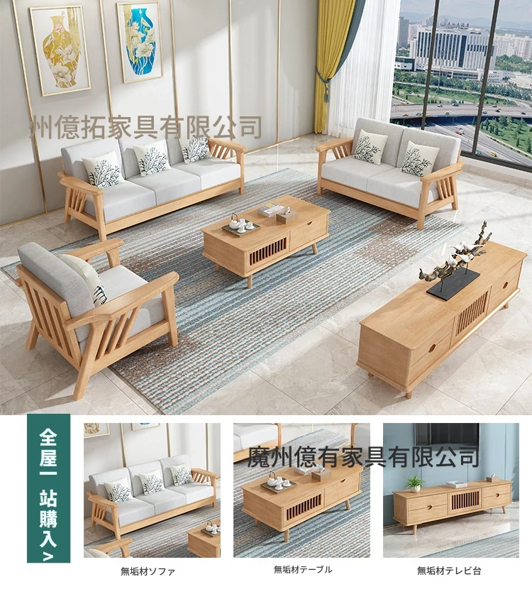 北欧スタイルの全木製ソファセット|シンプルでモダンなデザイン|小さなリビングにぴったり|木とファブリックの絶妙なコンビネーション|和風デザインのデイベッドソファ