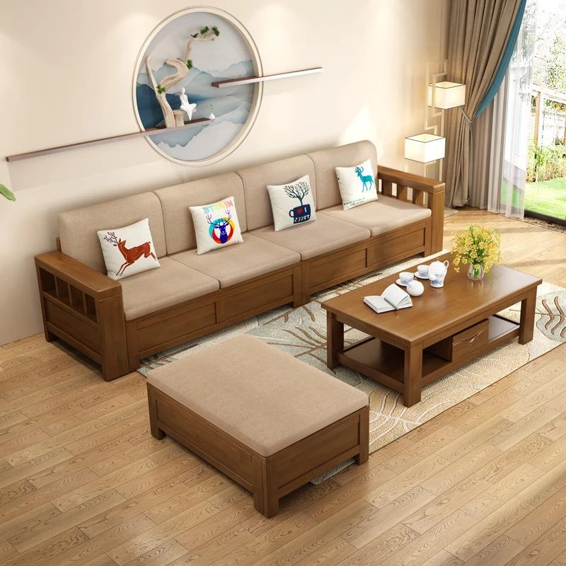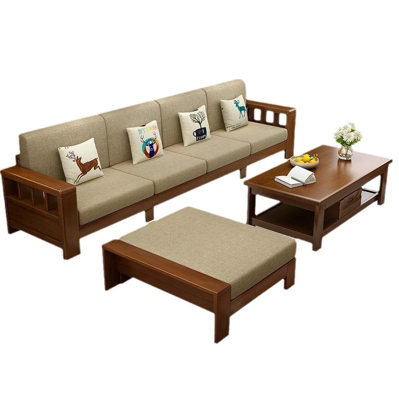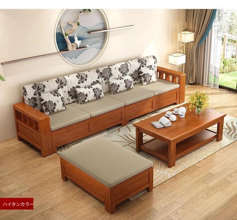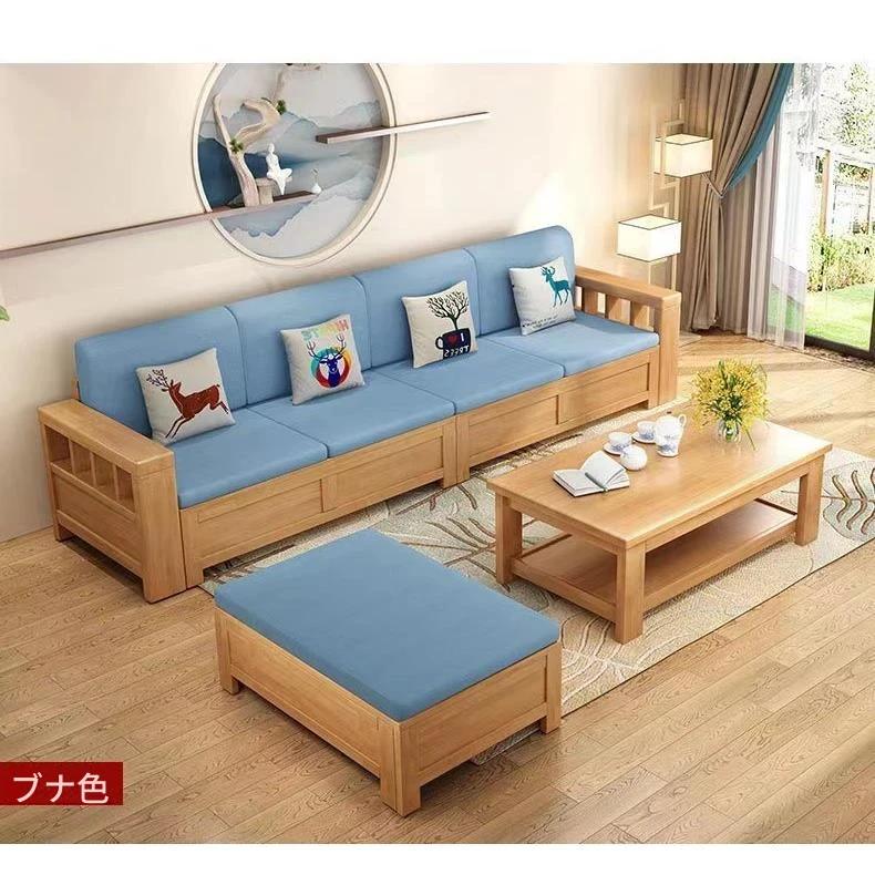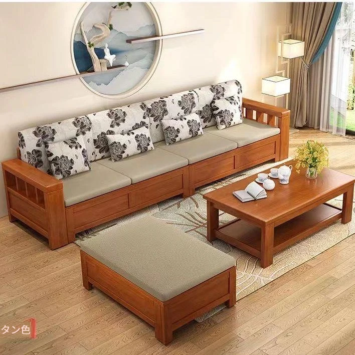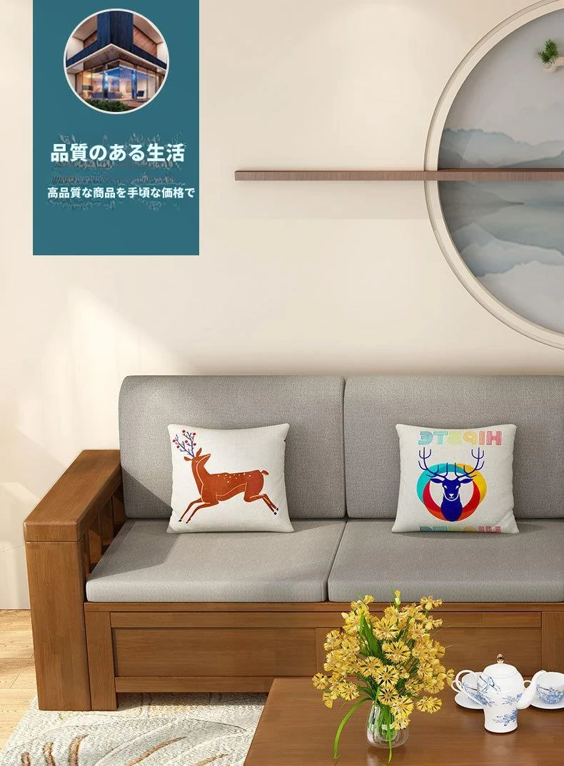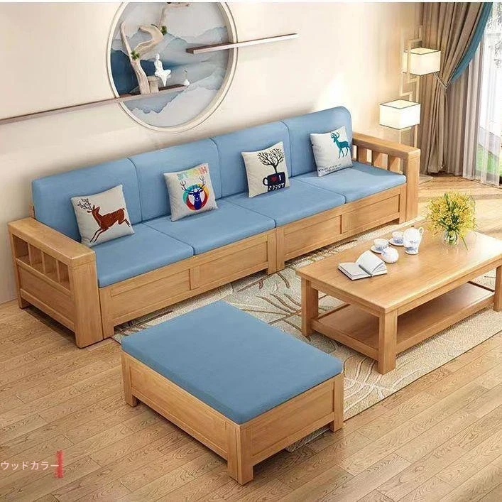 北欧スタイルの天然木製ソファ、クッション付きのファイナルコンビネーション!広々とした収納機能を備えた、現代的でシンプルなデザインの多人数用カウチソファです。どんな大きなリビングにもぴったり!