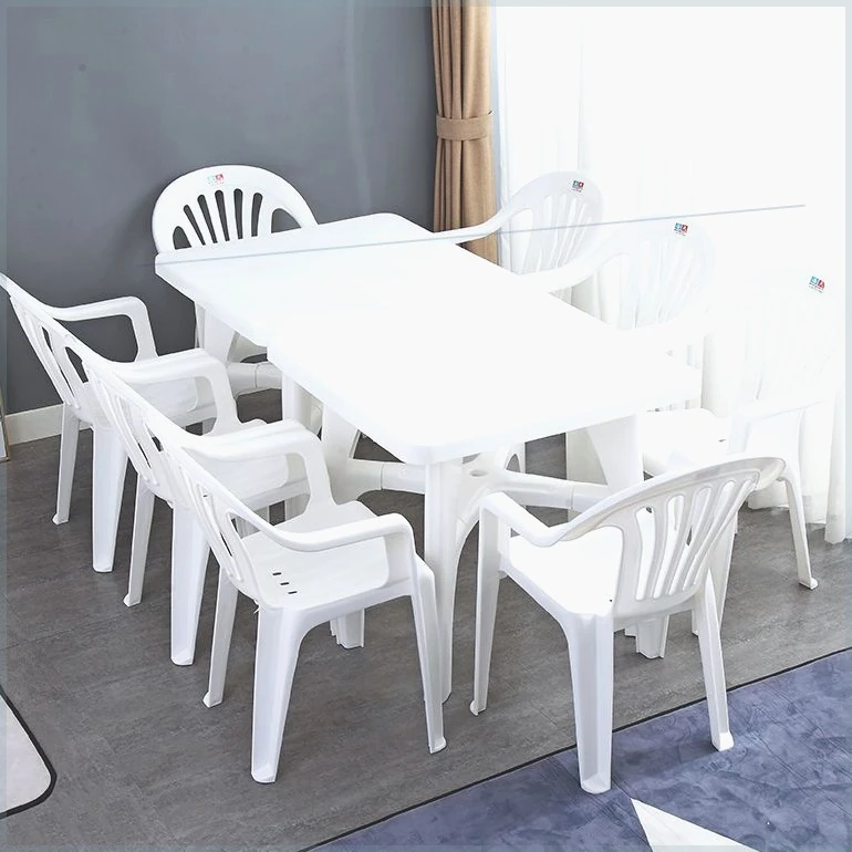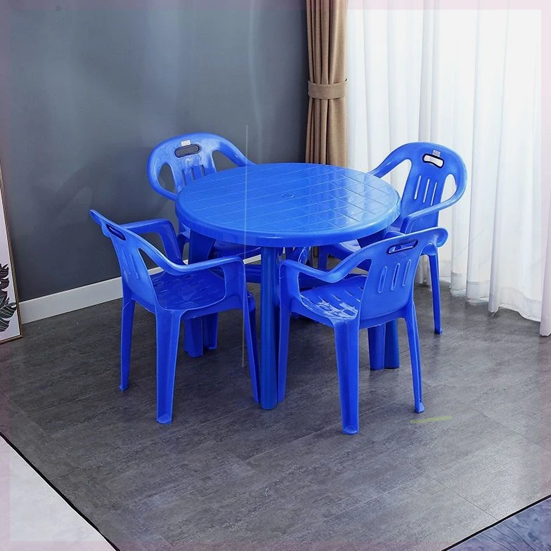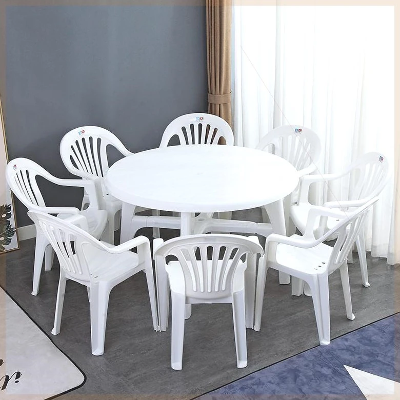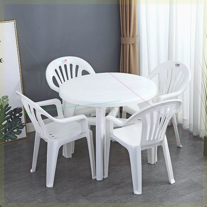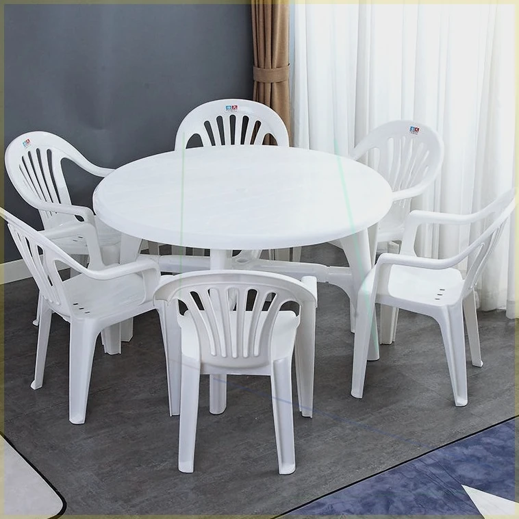アウトドアプラスチックテーブル&チェアセット - ビーチやバーベキューに最適!ナイトマーケットや屋台にもぴったりな円形テーブル。快適な食事体験を提供します!