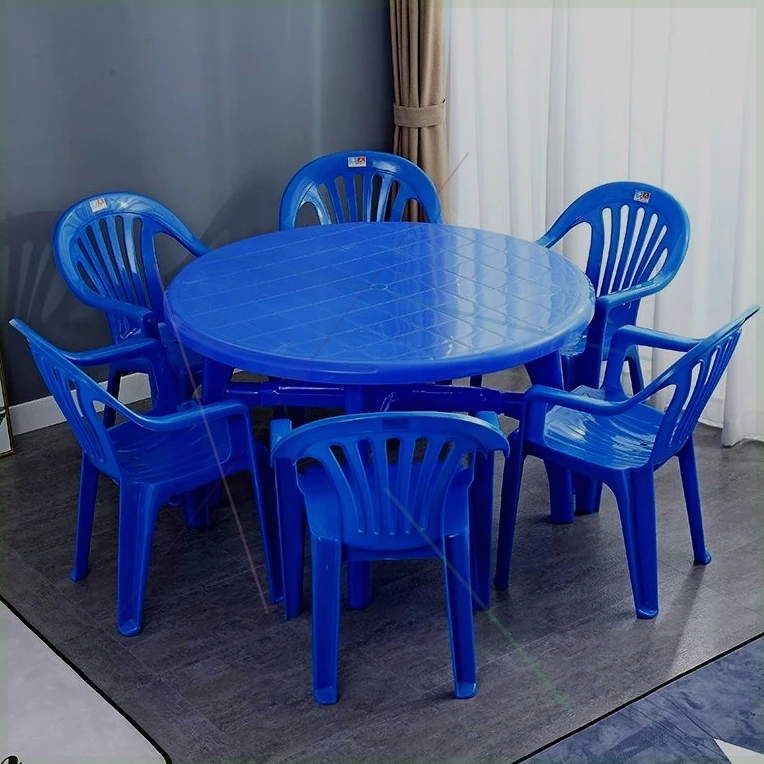 青色:大きな円形テーブル+6台の特厚6斤椅子