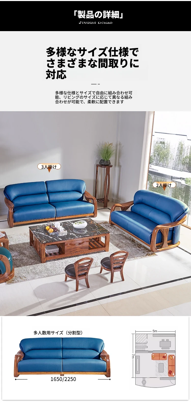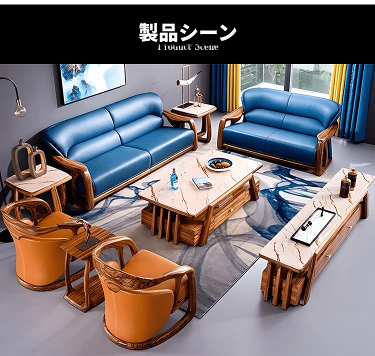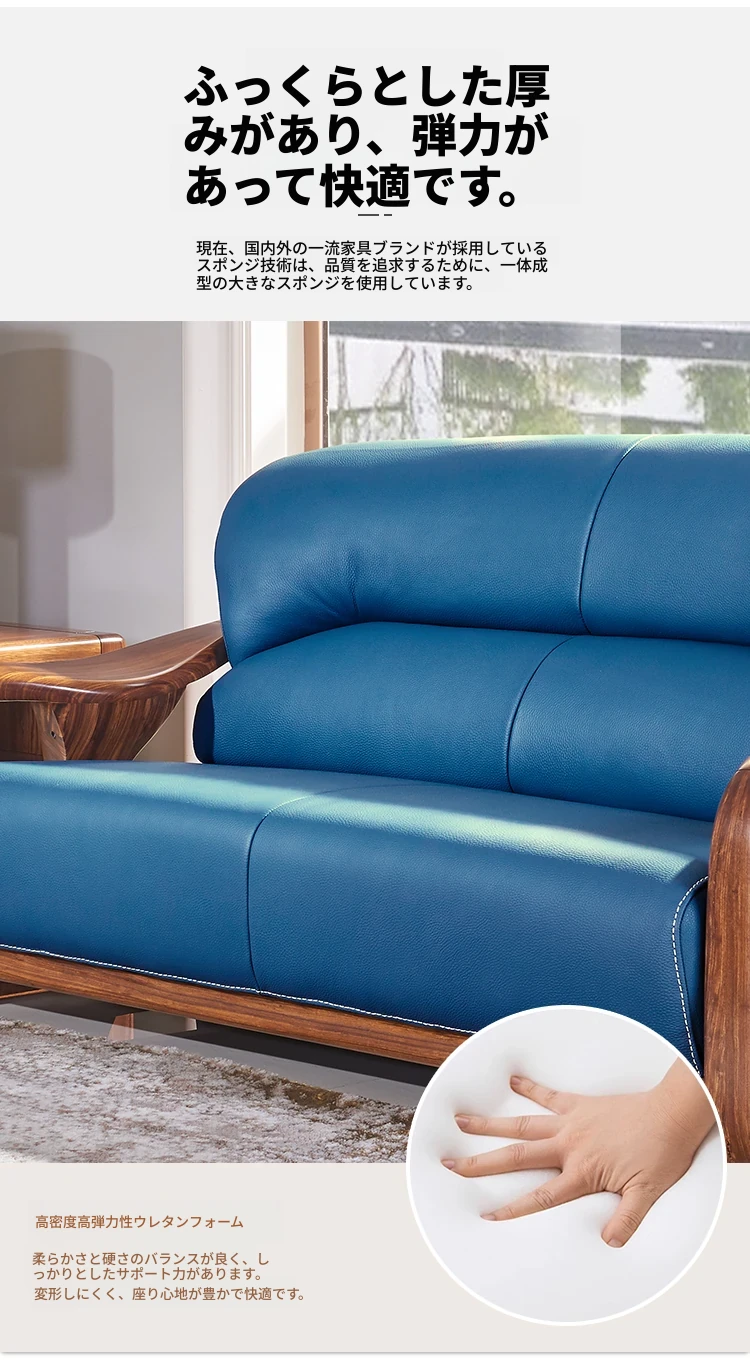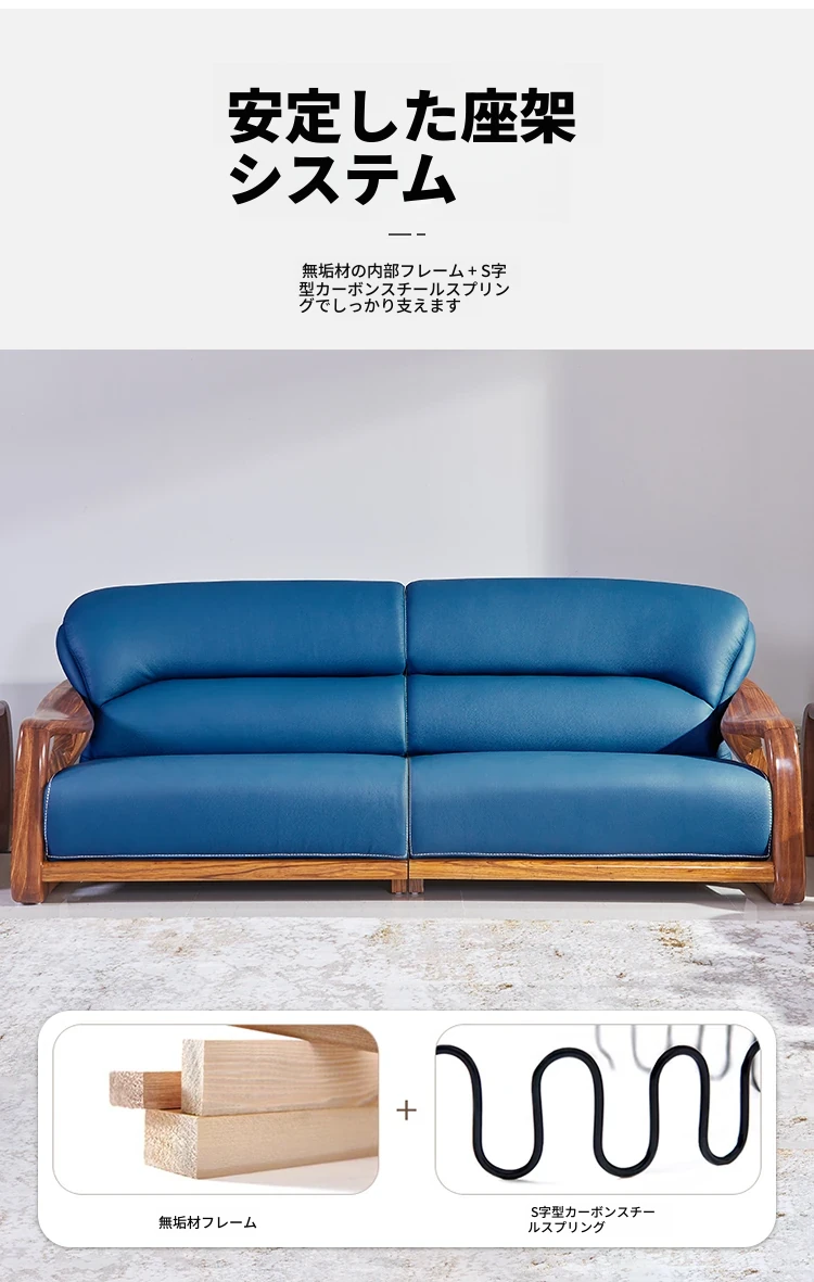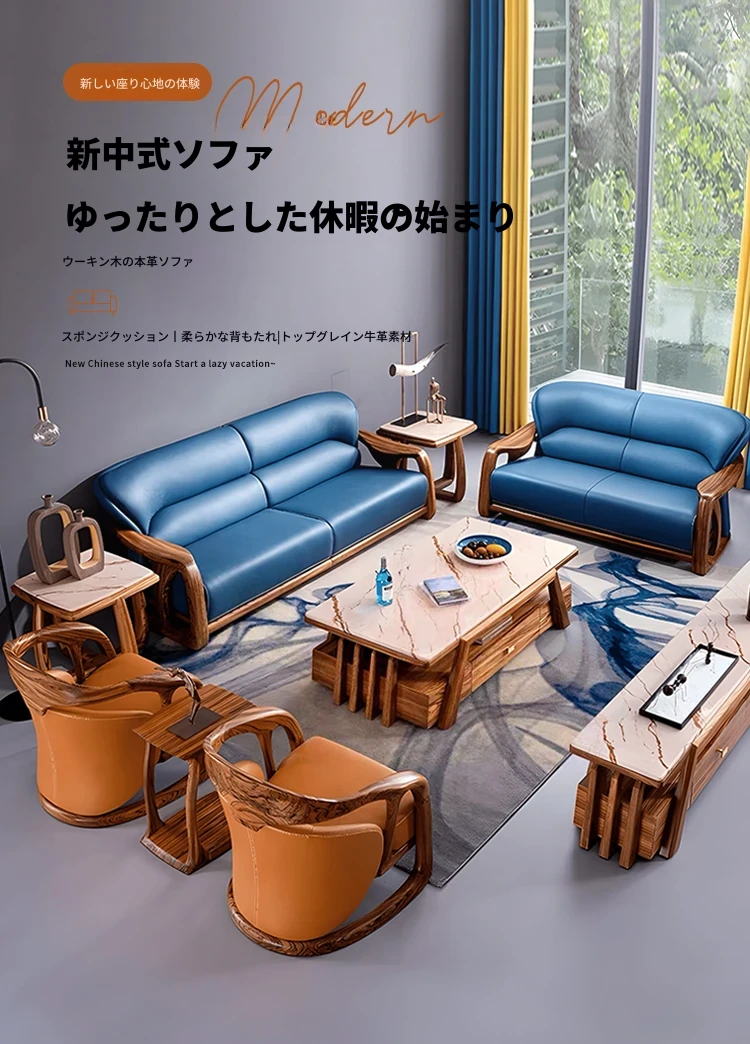 高級ウーキン木製本革ソファー | ラグジュアリーな新中式デザイン | 上質な一級牛革と無垢材を使用したシンプルなリビング家具 | おしゃれで快適な空間を演出!