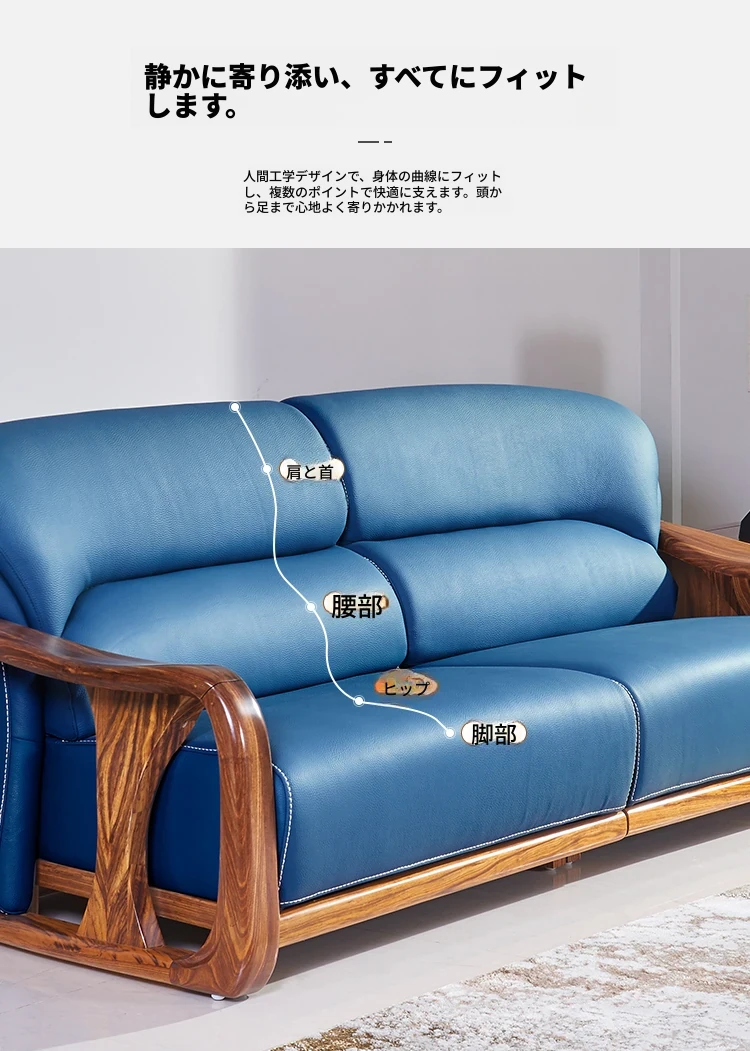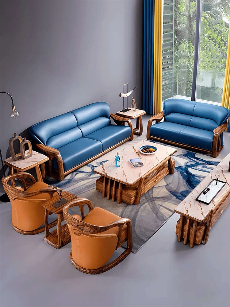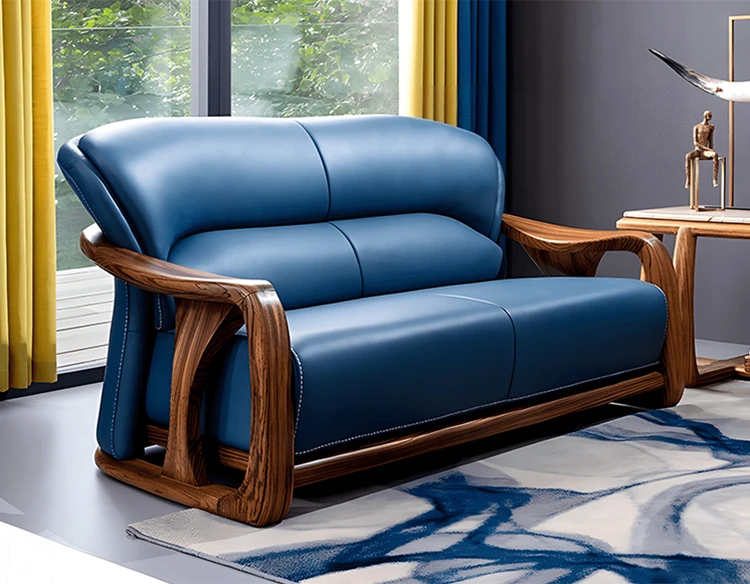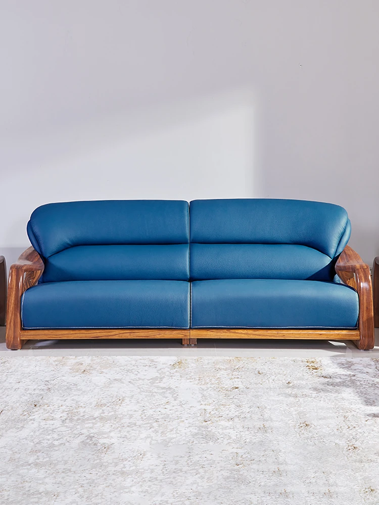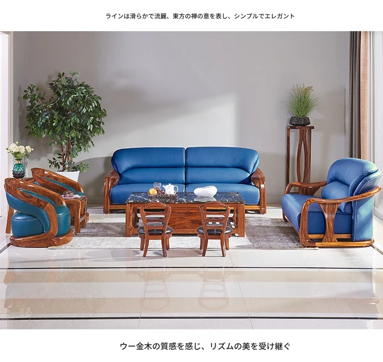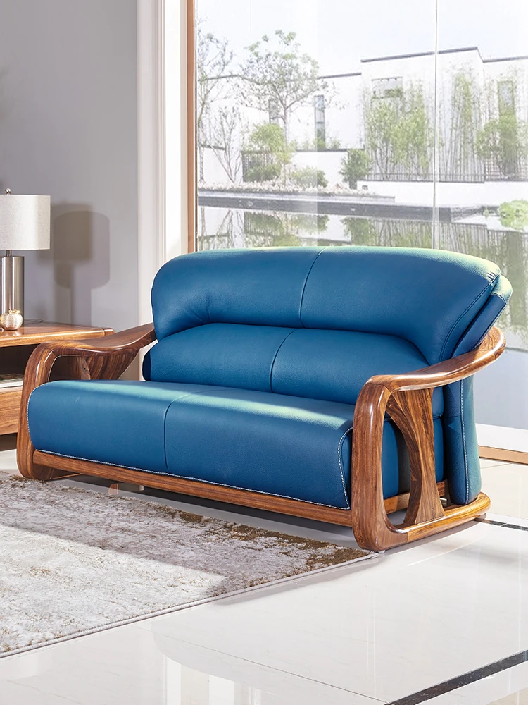高級ウーキン木製本革ソファー | ラグジュアリーな新中式デザイン | 上質な一級牛革と無垢材を使用したシンプルなリビング家具 | おしゃれで快適な空間を演出!