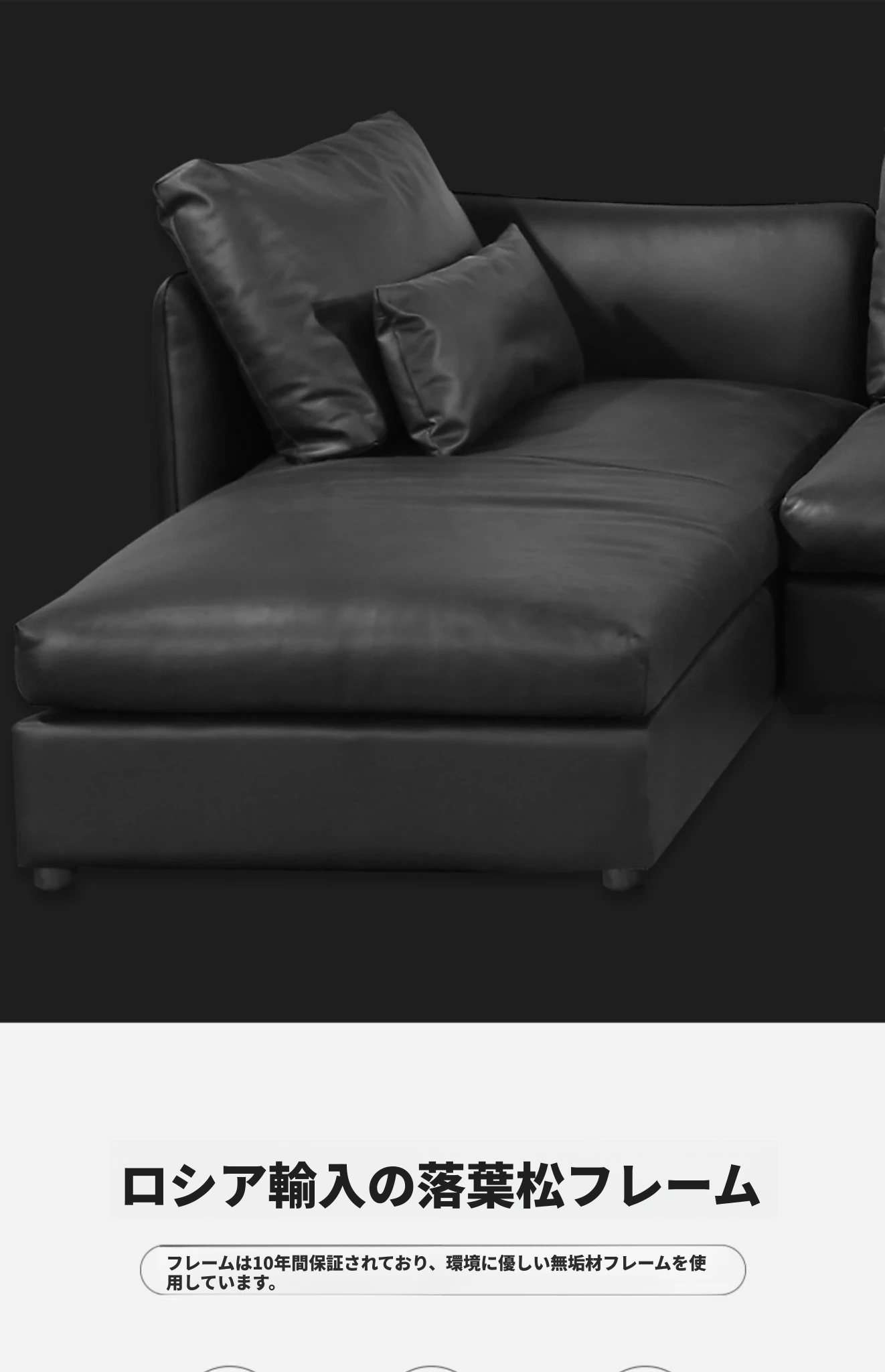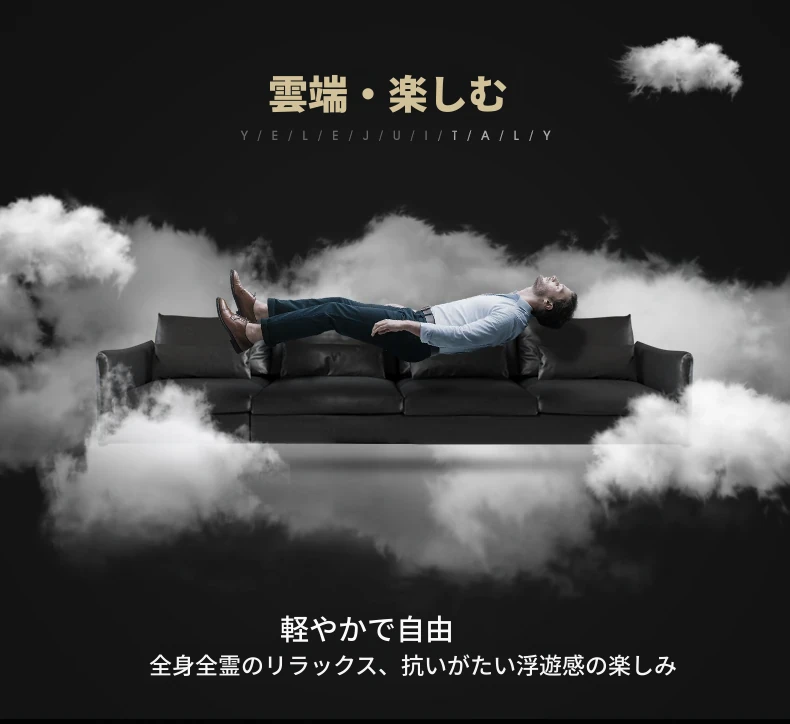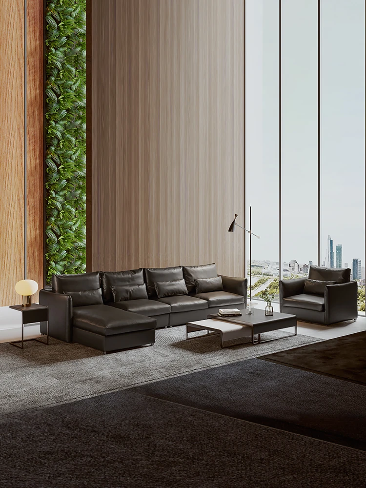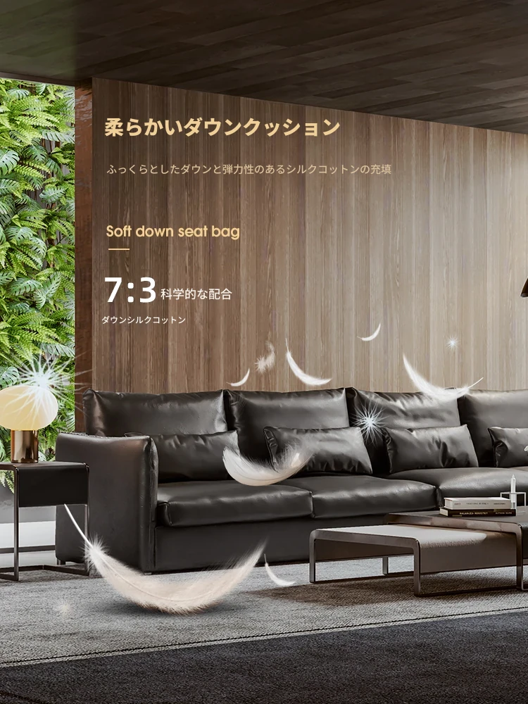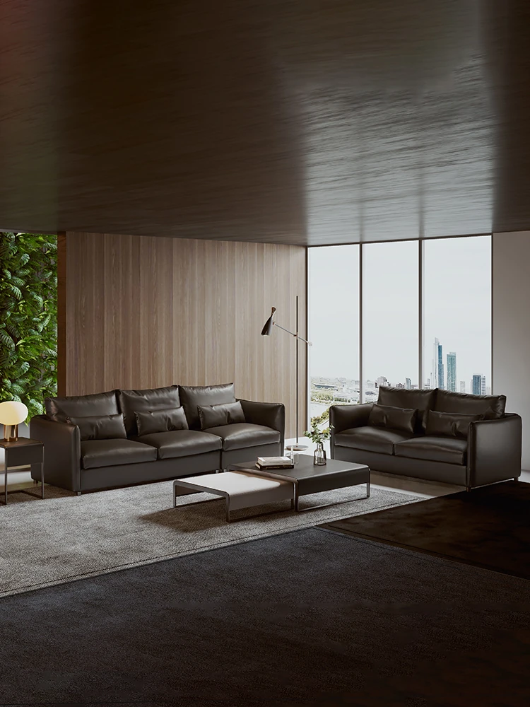 高級本革ソファー|一級牛皮使用のリビングルーム用ブラック直排ソファー|イタリアンミニマリズムの魅力|広東省仏山製|贅沢な空間を演出する最適アイテム!
