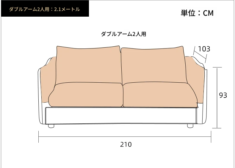 豪華版【接触面真皮】ダブルアーム二人用210CM