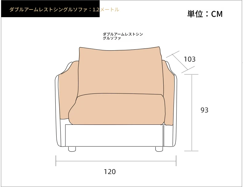 豪華版【接触面真皮】ダブルアーム一人用120CM