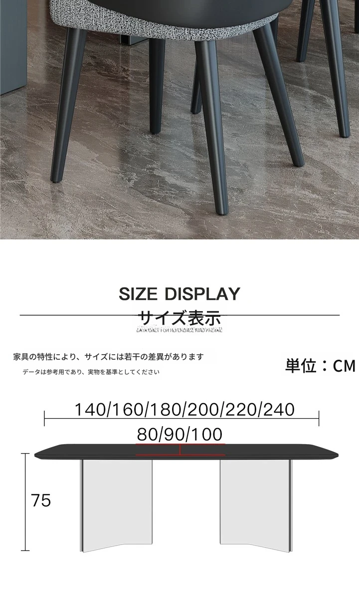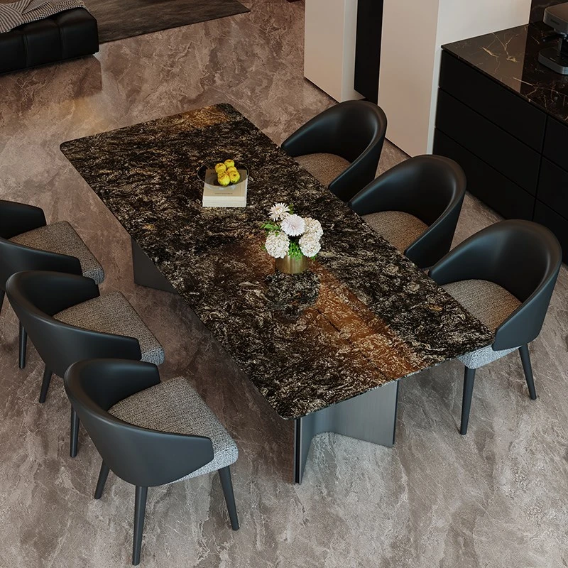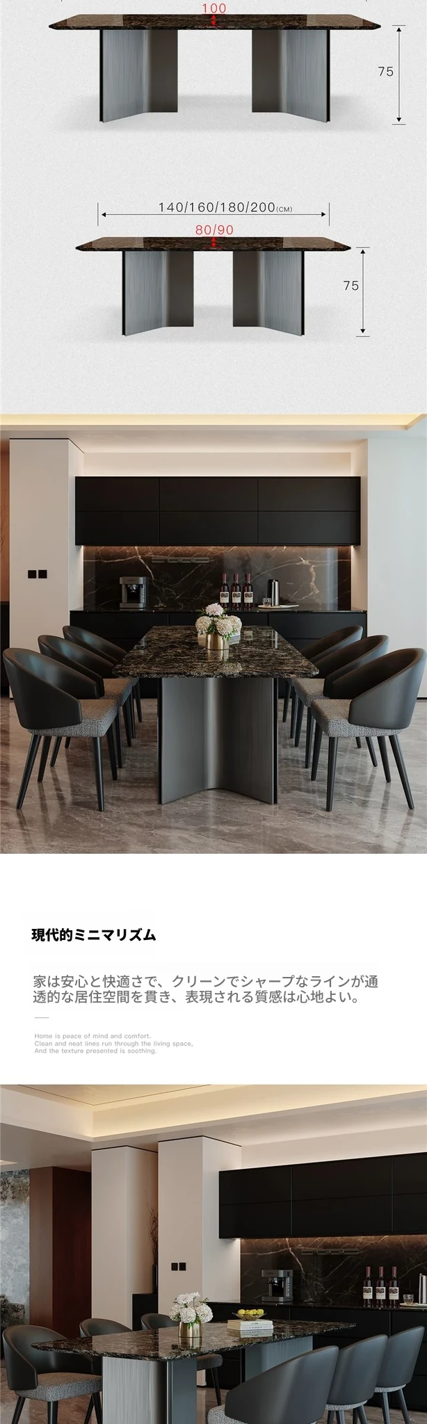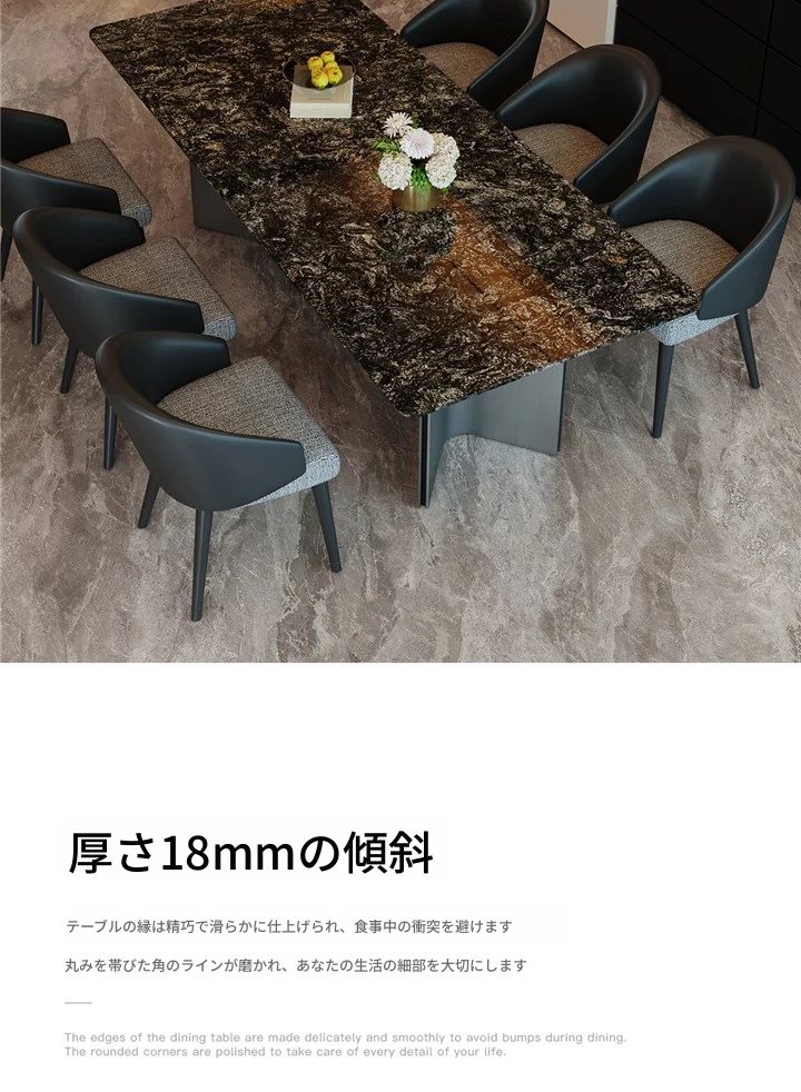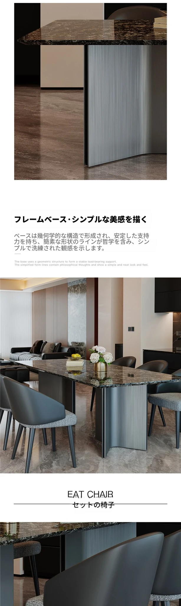 2.2メートル輸入天然プラチナダイヤモンド高級石製ダイニングテーブル+本革ダイニングチェア8脚